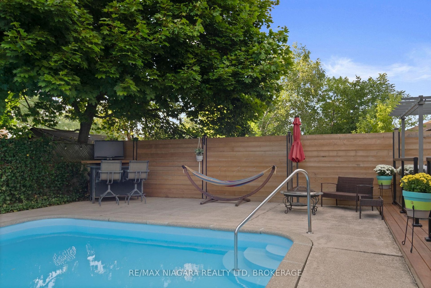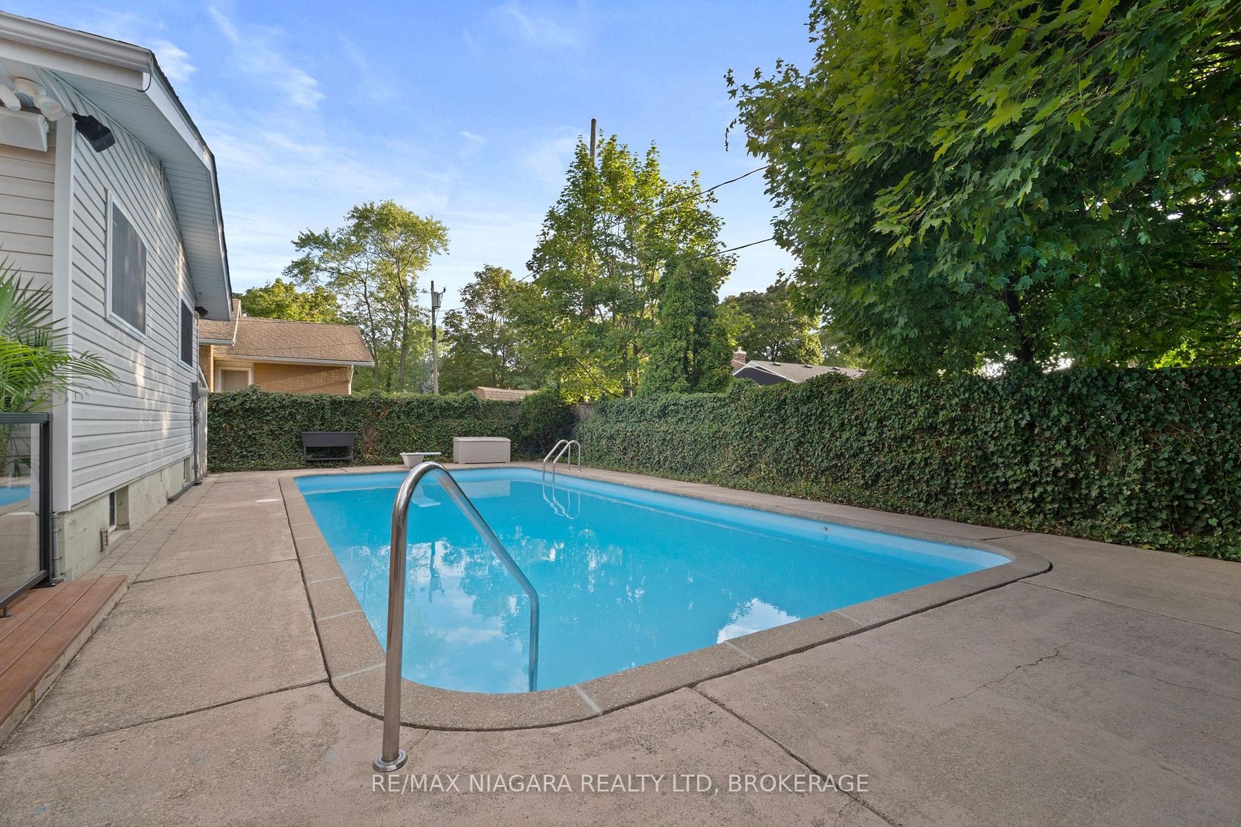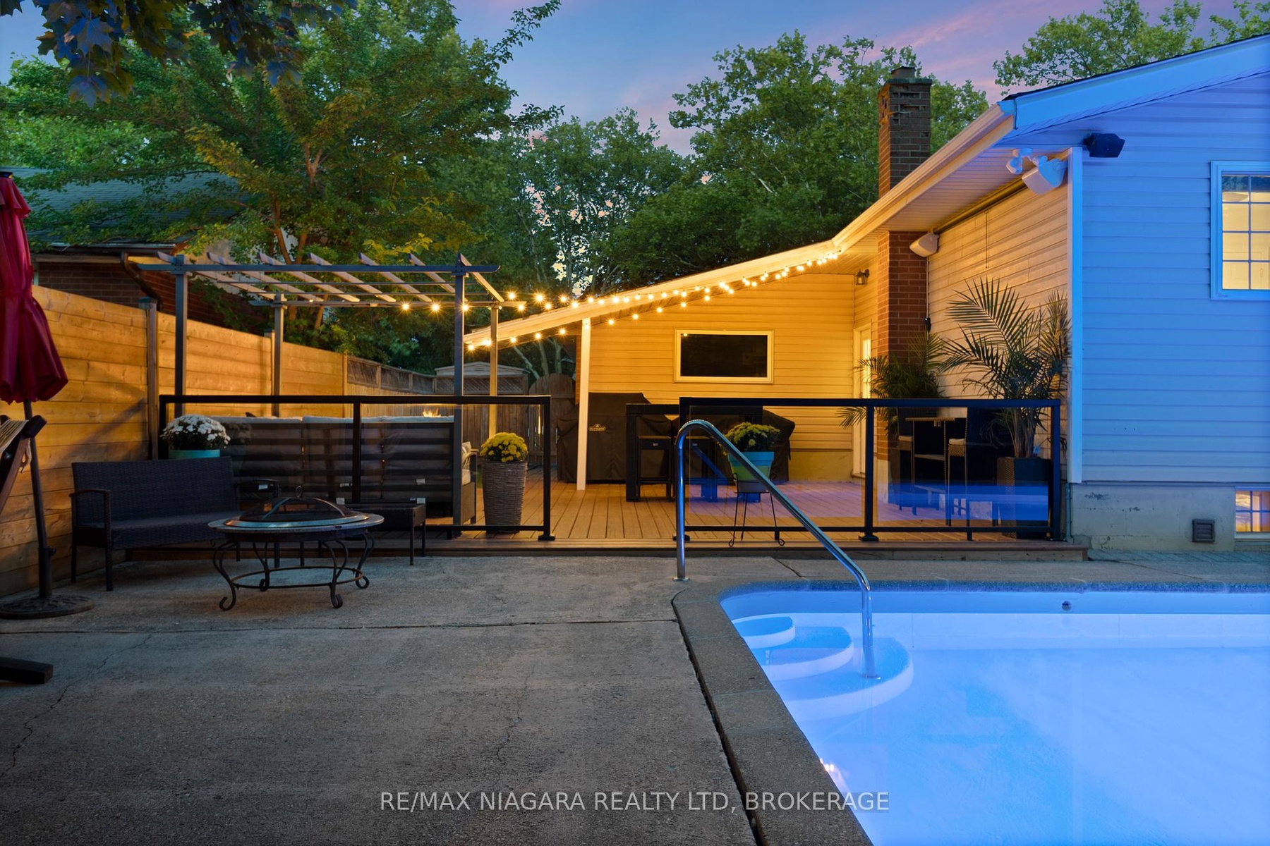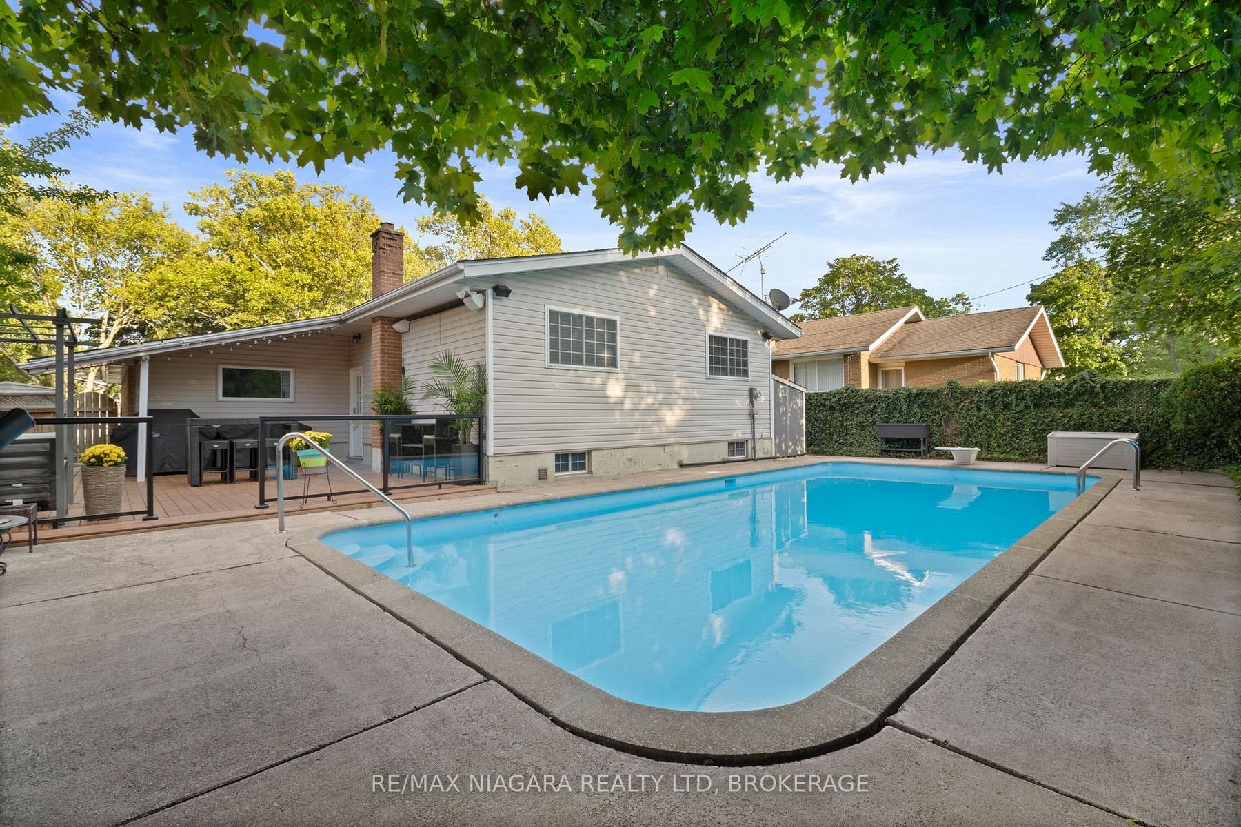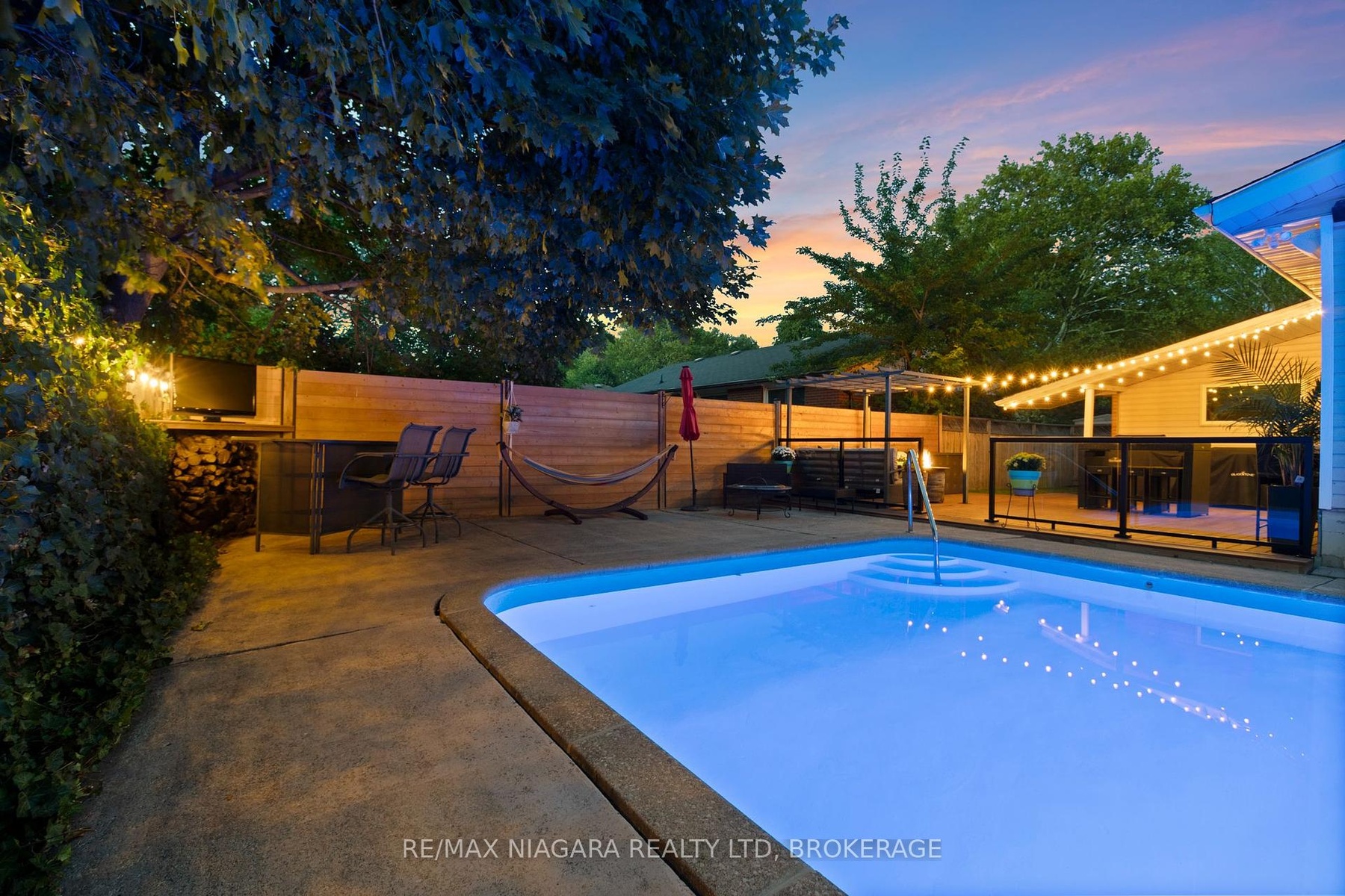 This beautifully appointed 3+1 bedroom, 2 bathroom bungalow offers the perfect blend of modern comfort and family-friendly living. The open concept main floor creates a seamless flow between the large, modern kitchen and the bright, spacious living room, where soaring high ceilings and expansive windows flood the space with natural light. The thoughtfully designed layout includes three cozy bedrooms, ideal for growing families, and a stunning updated bathroom featuring a beautiful dual vanity and sleek glass shower. The open concept design maximizes space while maintaining distinct living areas for both relaxation and entertaining. The finished basement is truly a showstopper, boasting a large recreation room with its own separate entrance, and a versatile flex room that can easily serve as a home office, guest bedroom, or whatever your lifestyle demands. The lower level is completed with a convenient 3-piece bathroom and bar, making it ideal for entertaining or even conversion to an in-law suite. Step outside to discover your private retreat featuring a large, stunning patio with elegant glass railings overlooking a beautiful inground pool. Newer fencing and mature hedges provide exceptional privacy, creating the perfect sanctuary for summer relaxation and year-round enjoyment. Practical features include an attached garage and storage shed, providing ample space for vehicles, tools, and seasonal items. This exceptional property offers the rare combination of move-in ready comfort, entertaining potential, and investment opportunities all in one of Thorold's most desirable locations. Don't miss this opportunity to call Burleigh Hill home!