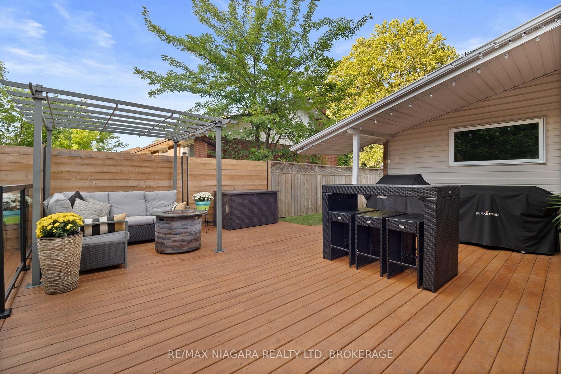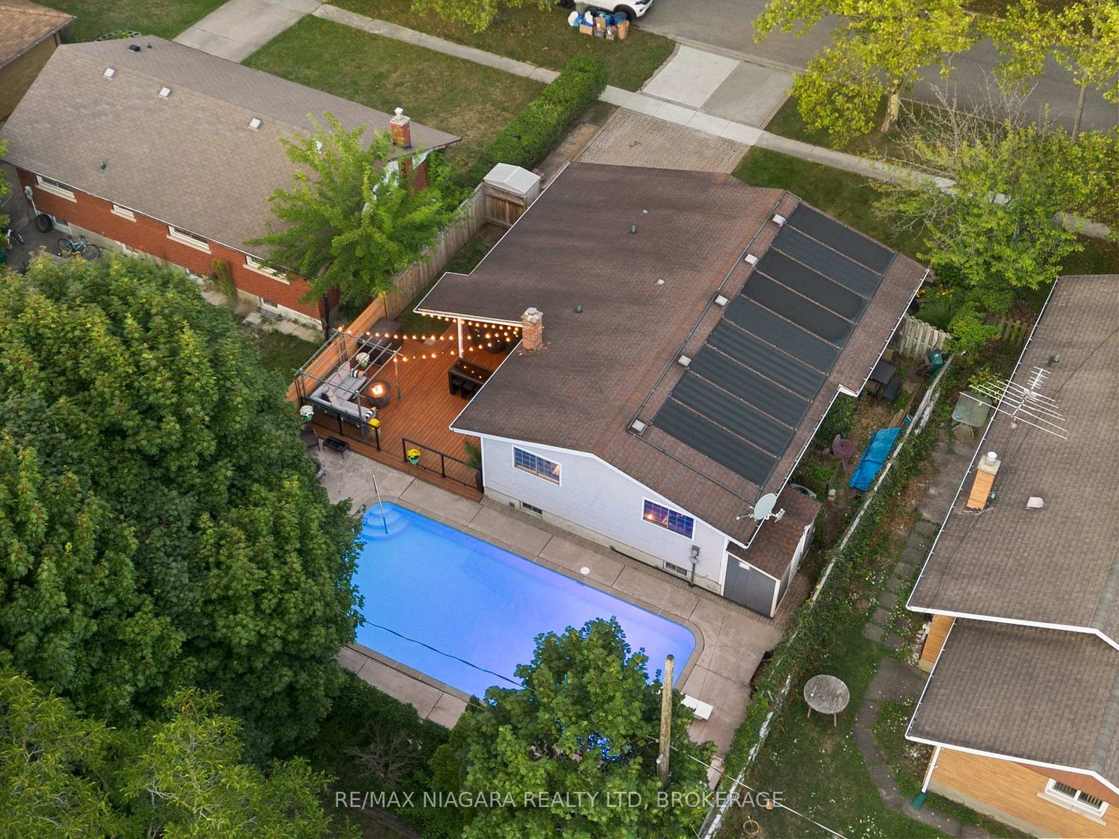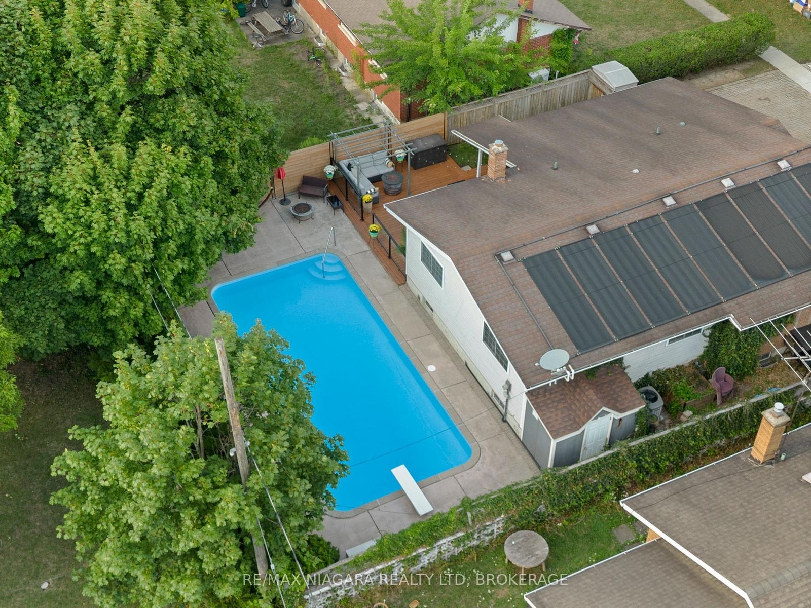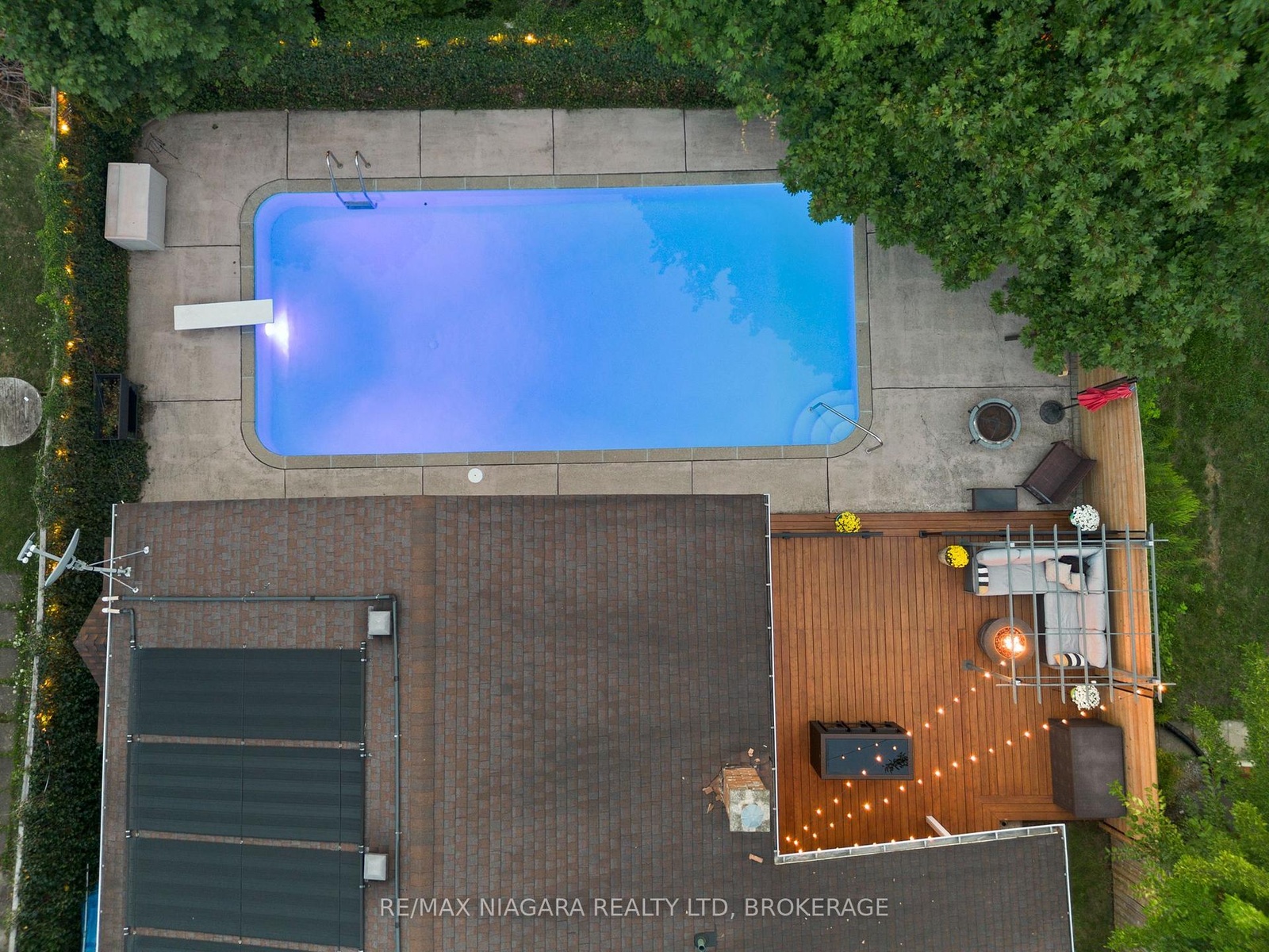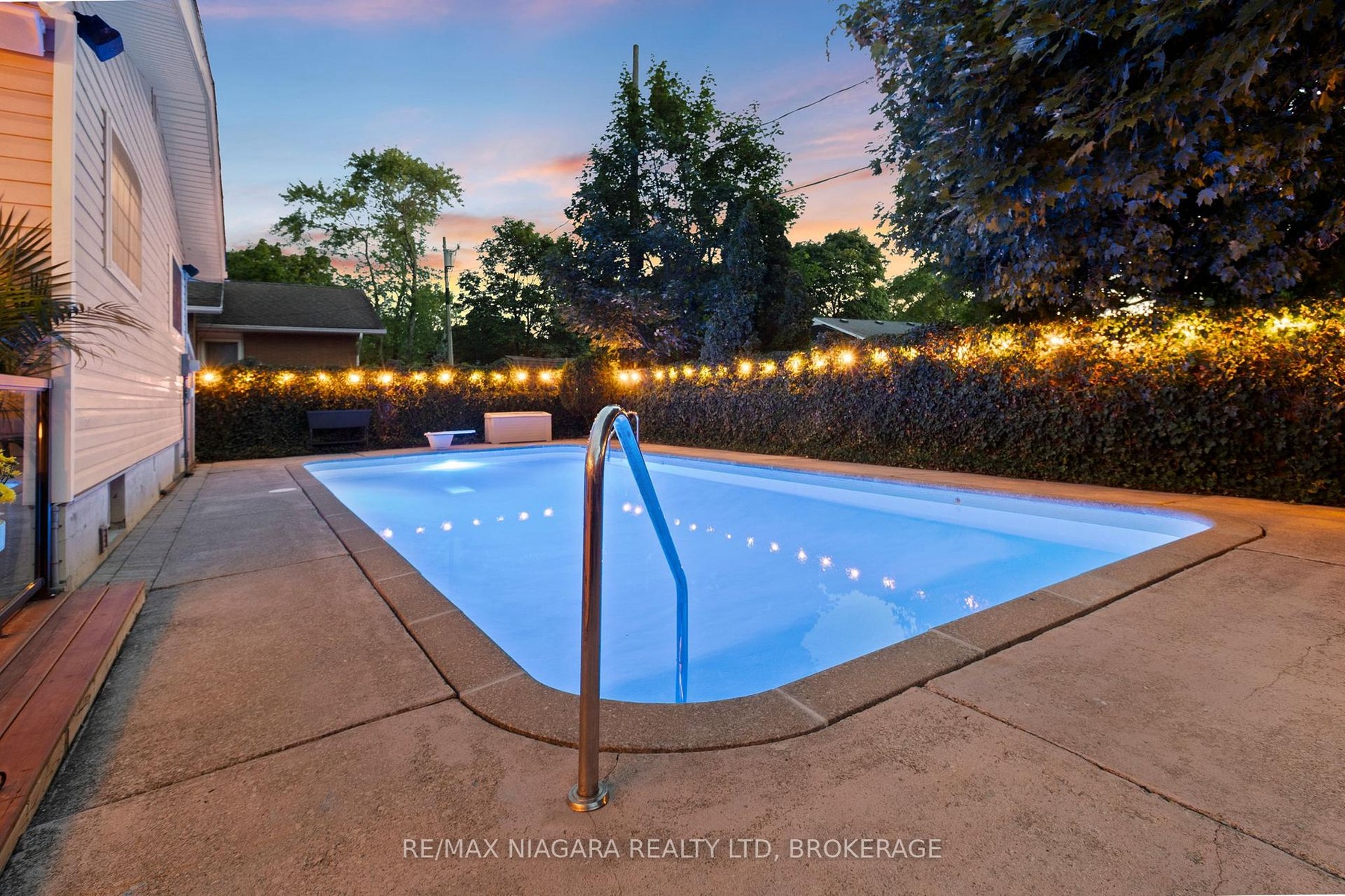 This beautifully appointed 3+1 bedroom, 2 bathroom bungalow offers the perfect blend of modern comfort and family-friendly living. The open concept main floor creates a seamless flow between the large, modern kitchen and the bright, spacious living room, where soaring high ceilings and expansive windows flood the space with natural light. The thoughtfully designed layout includes three cozy bedrooms, ideal for growing families, and a stunning updated bathroom featuring a beautiful dual vanity and sleek glass shower. The open concept design maximizes space while maintaining distinct living areas for both relaxation and entertaining. The finished basement is truly a showstopper, boasting a large recreation room with its own separate entrance, and a versatile flex room that can easily serve as a home office, guest bedroom, or whatever your lifestyle demands. The lower level is completed with a convenient 3-piece bathroom and bar, making it ideal for entertaining or even conversion to an in-law suite. Step outside to discover your private retreat featuring a large, stunning patio with elegant glass railings overlooking a beautiful inground pool. Newer fencing and mature hedges provide exceptional privacy, creating the perfect sanctuary for summer relaxation and year-round enjoyment. Practical features include an attached garage and storage shed, providing ample space for vehicles, tools, and seasonal items. This exceptional property offers the rare combination of move-in ready comfort, entertaining potential, and investment opportunities all in one of Thorold's most desirable locations. Don't miss this opportunity to call Burleigh Hill home!