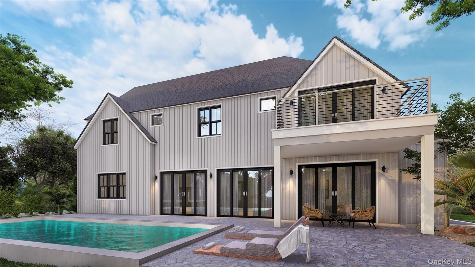 - Back of property with a patio area, an outdoor pool, french doors, and a balcony (FOR MARKETING PURPOSES)