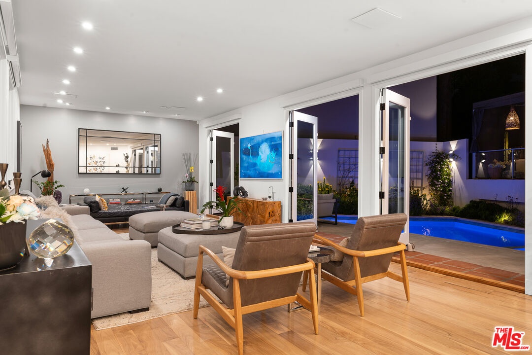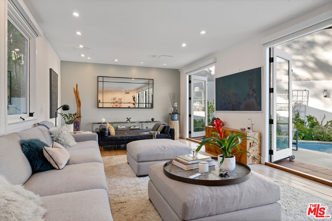 Modern luxury meets bohemian spirit... Nestled in the vibrant heart of Laurel Canyon, just minutes from the legendary Sunset Strip, this newly renovated ~3300sqft Spanish contemporary smart home embodies the essence of Hollywood Hills living. Located in the coveted Wonderland School District and eligible for Mulholland Tennis Club membership, this residence blends modern luxury with true bohemian spirit. The four bedroom and four bathroom main house features a spacious open-concept living and dining area, bathed in natural light, flowing seamlessly to an indoor-outdoor backyard oasis. Entertain effortlessly with a fire pit, pool & spa, and a rooftop BBQ & cabana lounge. The chef's kitchen boasts top-tier appliances, two luxurious primary suites offer spa-inspired ensuite bathrooms with steam showers, while a generous guest bedroom (with ensuite) and additional full bathroom on the main floor provide ample space for family or visitors. The detached two-car garage and extra private parking for two more vehicles, four spots in total, add convenience and functionality. The upstairs primary suite opens to a sun-soaked rooftop deck with treetop canyon views, perfect for sunset sound baths, morning yoga, or al fresco dining. The backyard boasts a separate ~600 sq. ft. guest house, complete with its own entrance, bedroom, bathroom, kitchen, and private outdoor space. Live the California dream in the canyon, where timeless charm meets contemporary elegance. Also available furnished - please inquire.