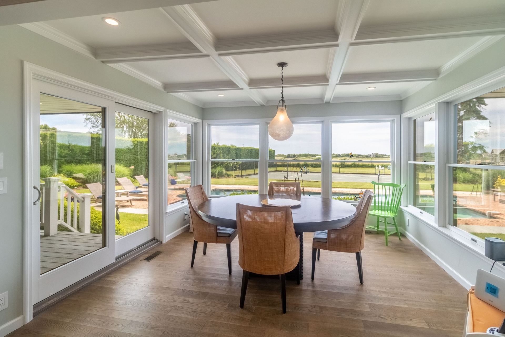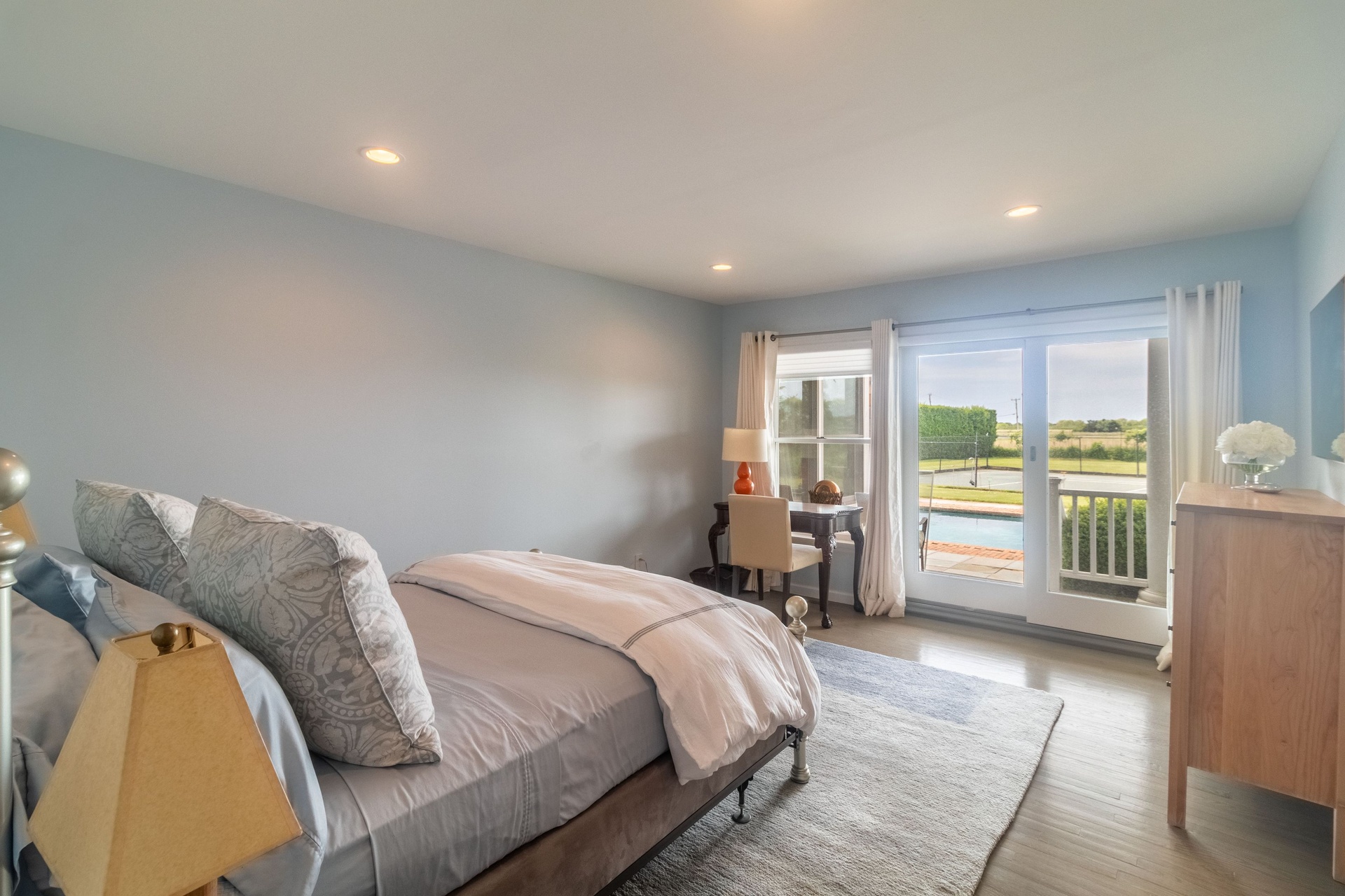 Pristine, elegant and comfortable first time rental. Freshly renovated and beautifully furnished 4 bedroom home on Erica's Lane, a quiet street one block off ocean beach. Hard to find a more perfect spot. After a relaxing day at the beach/pool, enjoy the sybaritic atmosphere of the wraparound porch overlooking a 100-acre field that offers dramatic sunsets and ocean breezes. Har-tru tennis, heated gunite pool, fire pit surrounded by Adirondack chairs, well-appointed pool area with grill. Large playset for the younger ones or the young at heart. This home offers 4 well-appointed bedrooms, 3 1/2 all new sparkling bathrooms, gourmet chef's kitchen with breakfast area, separate DR, 2-story LR with fireplace, central A/C, Sonos, cable, Wifi, HDTVs, 3 sets of W/D, 2 additional full-size refrigerators and wine fridge. Equidistant from East Hampton, Southampton and Sag Harbor, every amenity that the Hamptons has to offer is within a 5-10 minute drive: exercise, restaurants, entertainment, nature or relax at home with your family and guests. Truly a fabulous place to spend time this summer. Extended season possible.