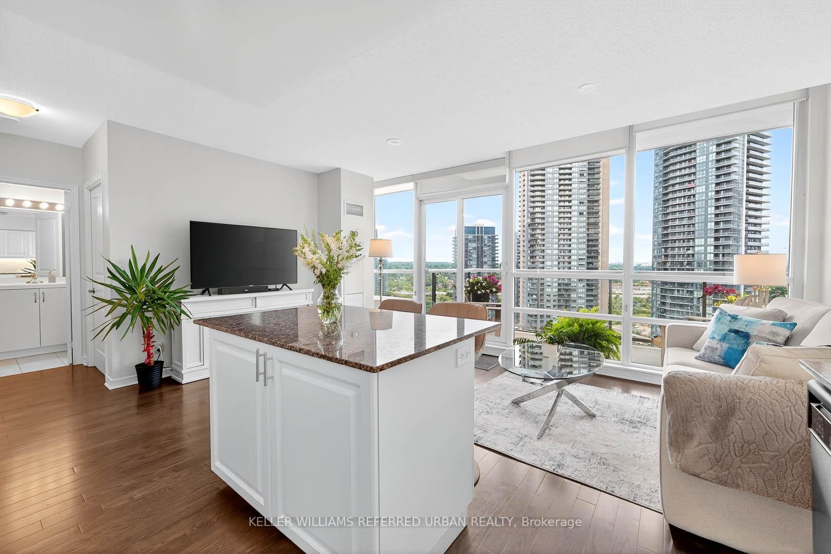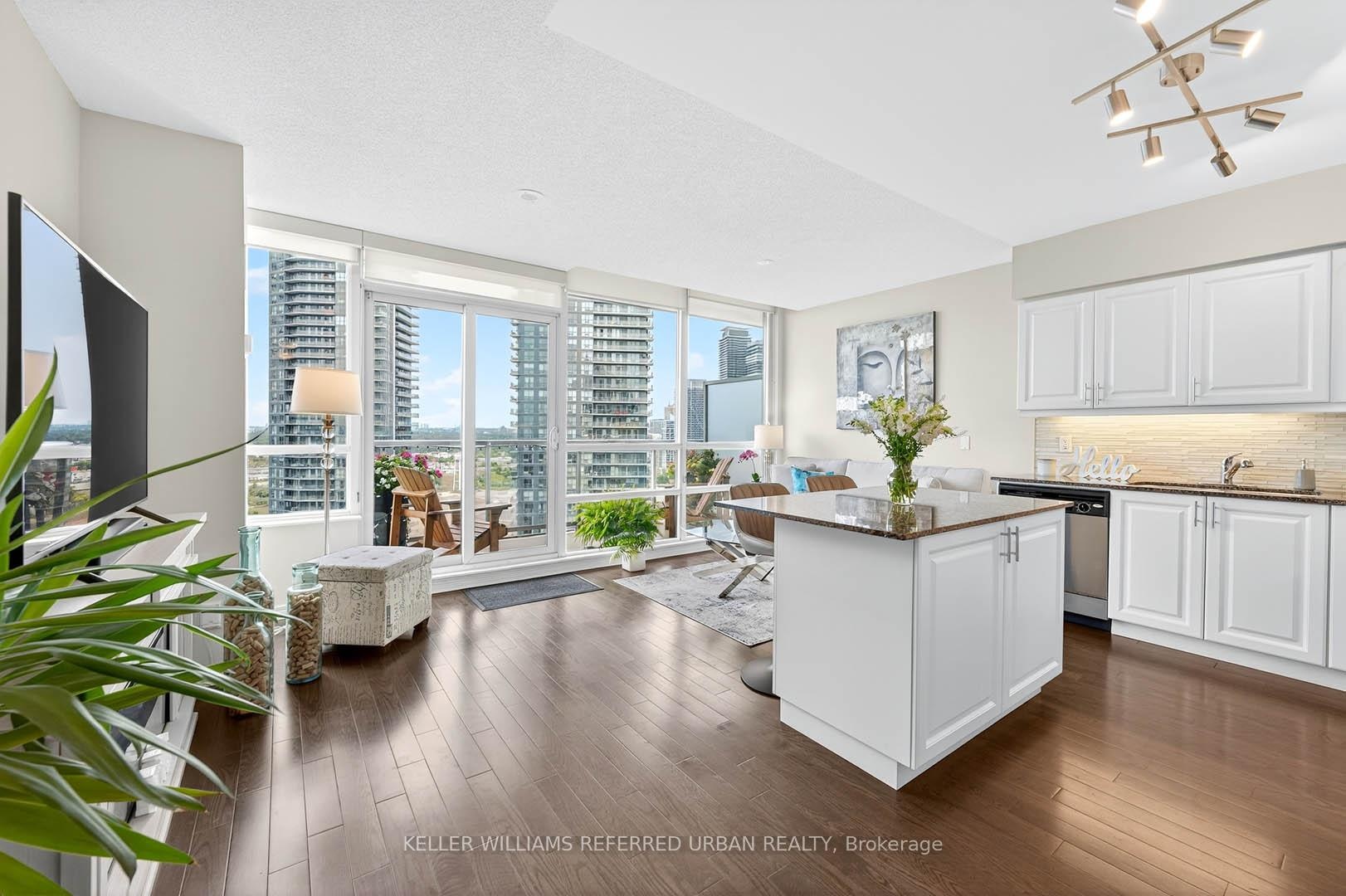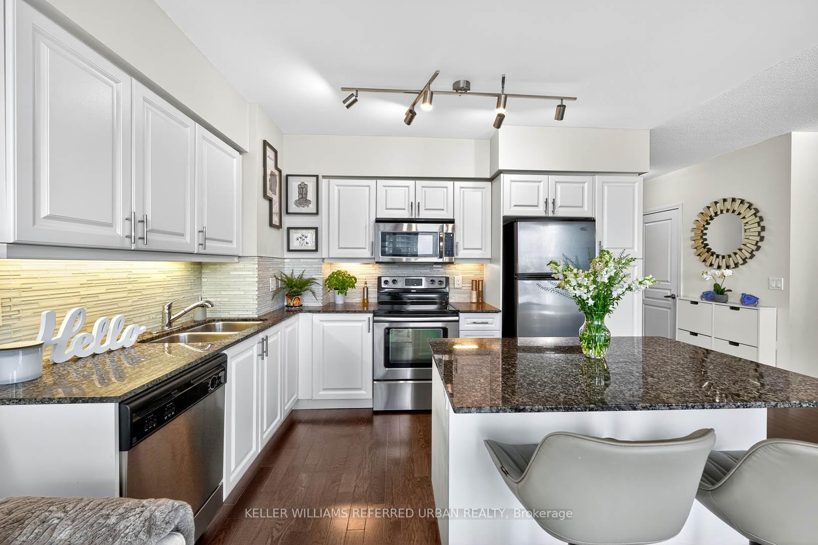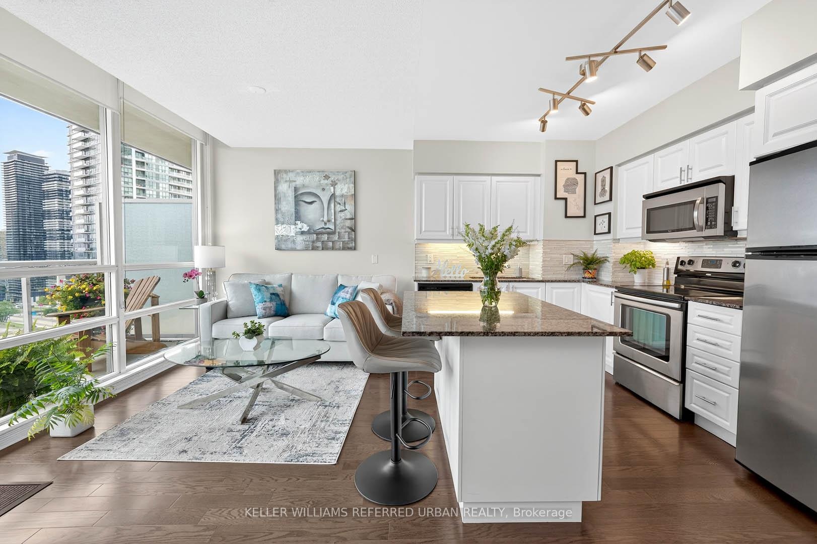 Welcome to this bright and well-maintained 1 Bedroom + Den condo with parking and locker at 15 Legion Rd, Suite 2305, featuring a coveted ravine view and spectacular Toronto skyline backdrop. Perched on the 23rd floor with only 8 suites per level , this residence offers rare privacy and comfort. The open-concept layout is enhanced by wall-to-wall windows that flood the space with natural light and showcase the breathtaking views. The modern kitchen is equipped with stainless steel appliances, granite counters, valance lighting, and a stylish backsplash. The den provides flexible use as a home office or guest area. Resort-style amenities include an indoor pool, hot tub, sauna, fitness and yoga studios, theatre, wine lounge, party rooms, childrens playroom, and outdoor BBQ cabanas. Ideally located steps to waterfront trails, parks, shops, restaurants, cafes, and transit, with easy access to highways.