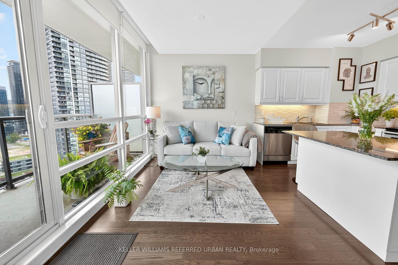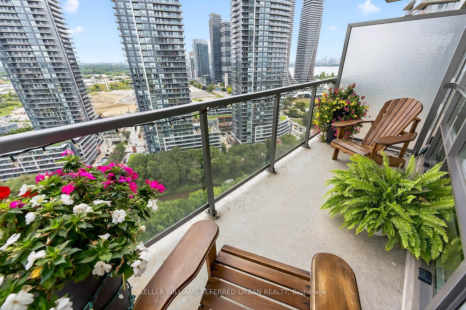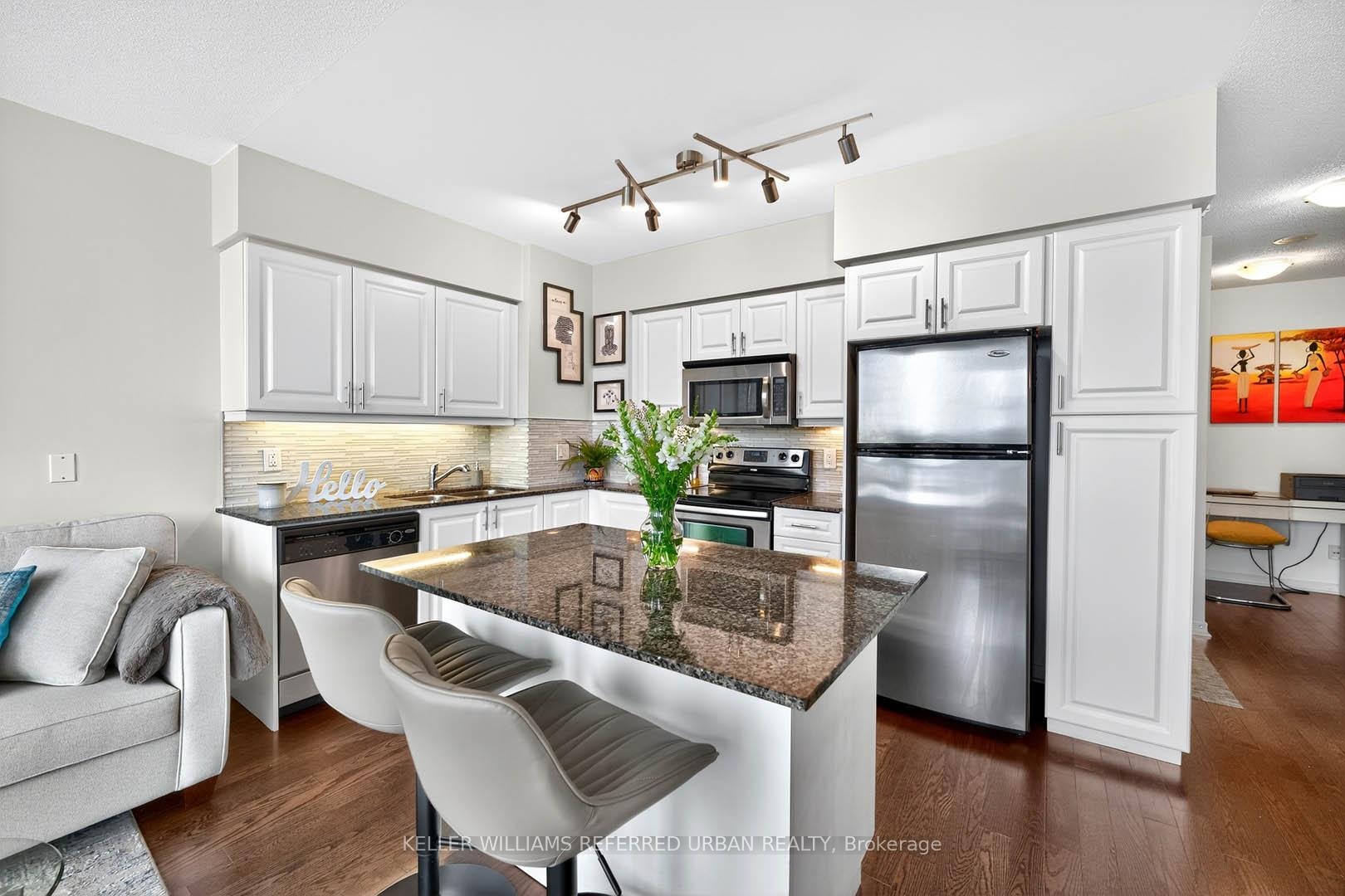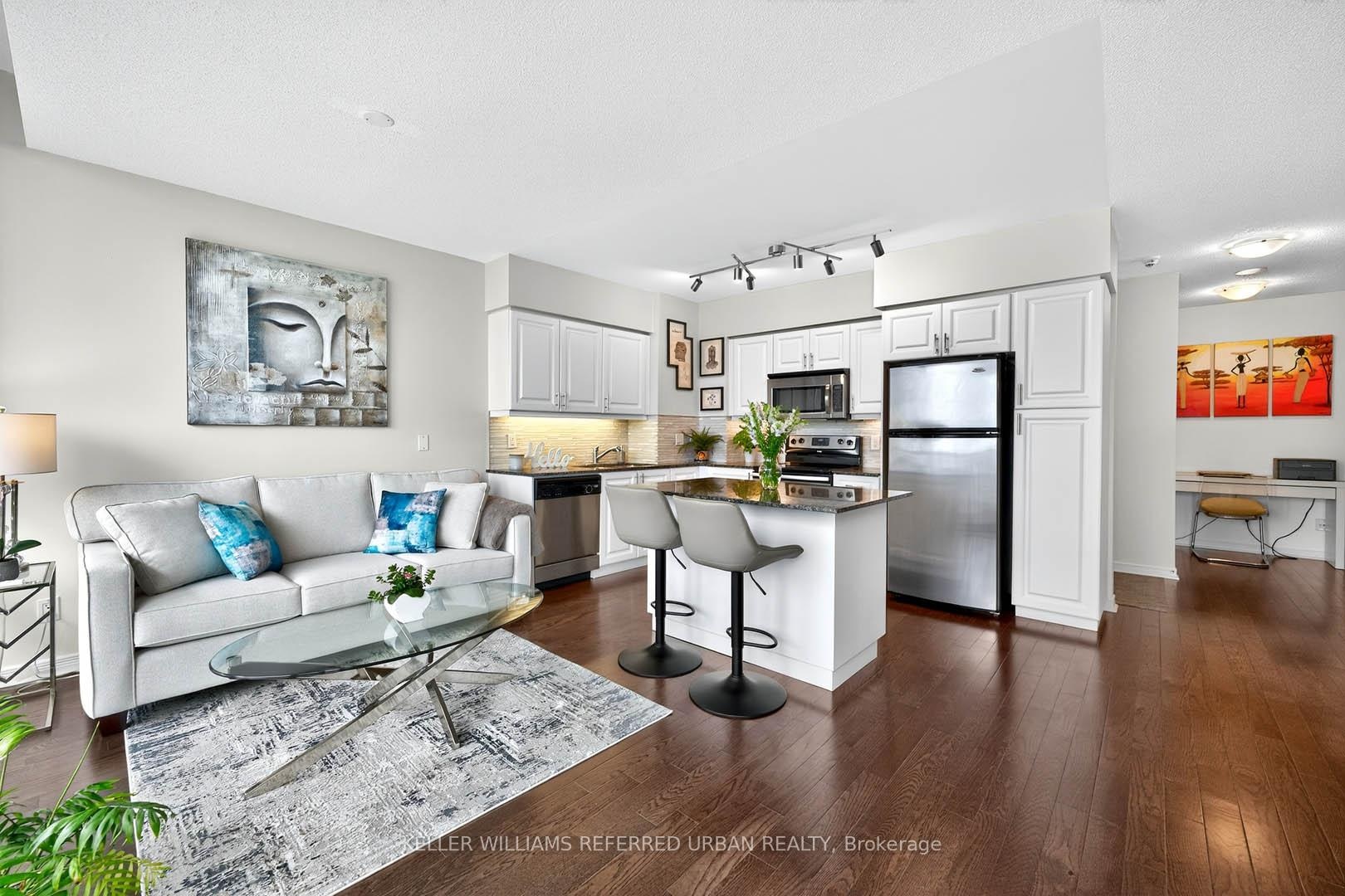 DescriptionWelcome to this bright and well-maintained 1 Bedroom + Den condo with parking and locker at 15 Legion Rd, Suite 2305, featuring a coveted ravine view and spectacular Toronto skyline backdrop. Perched on the 23rd floor with only 8 suites per level , this residence offers rare privacy and comfort. The open-concept layout is enhanced by wall-to-wall windows that flood the space with natural light and showcase the breathtaking views. The modern kitchen is equipped with stainless steel appliances, granite counters, valance lighting, and a stylish backsplash. The den provides flexible use as a home office or guest area. Resort-style amenities include an indoor pool, hot tub, sauna, fitness and yoga studios, theatre, wine lounge, party rooms, childrens playroom, and outdoor BBQ cabanas. Ideally located steps to waterfront trails, parks, shops, restaurants, cafes, and transit, with easy access to highways.Virtual Tour: https://westbluemedia.com/0825/15legion2305_.htmlAmenities- Accessible Public Transit Nearby