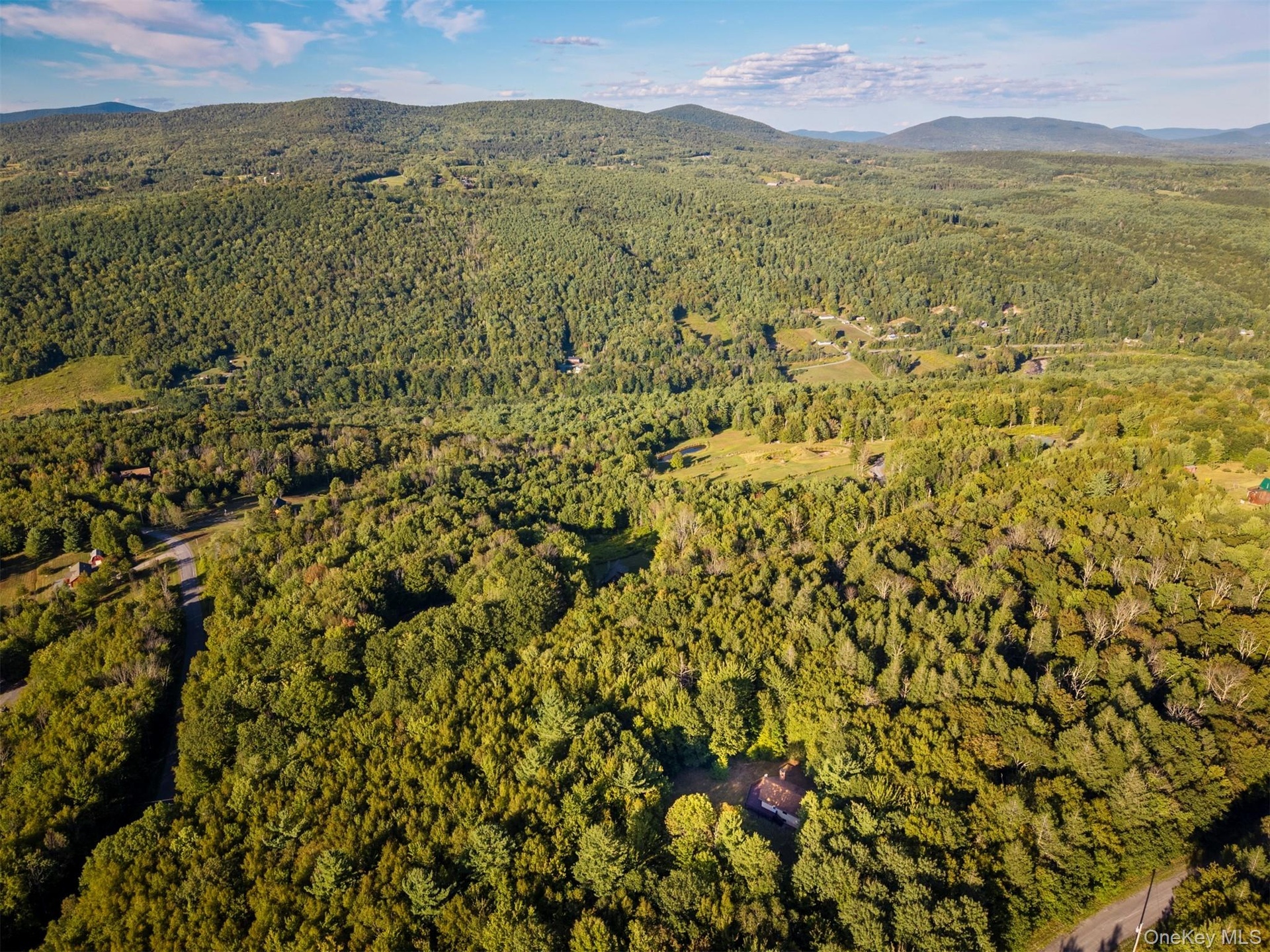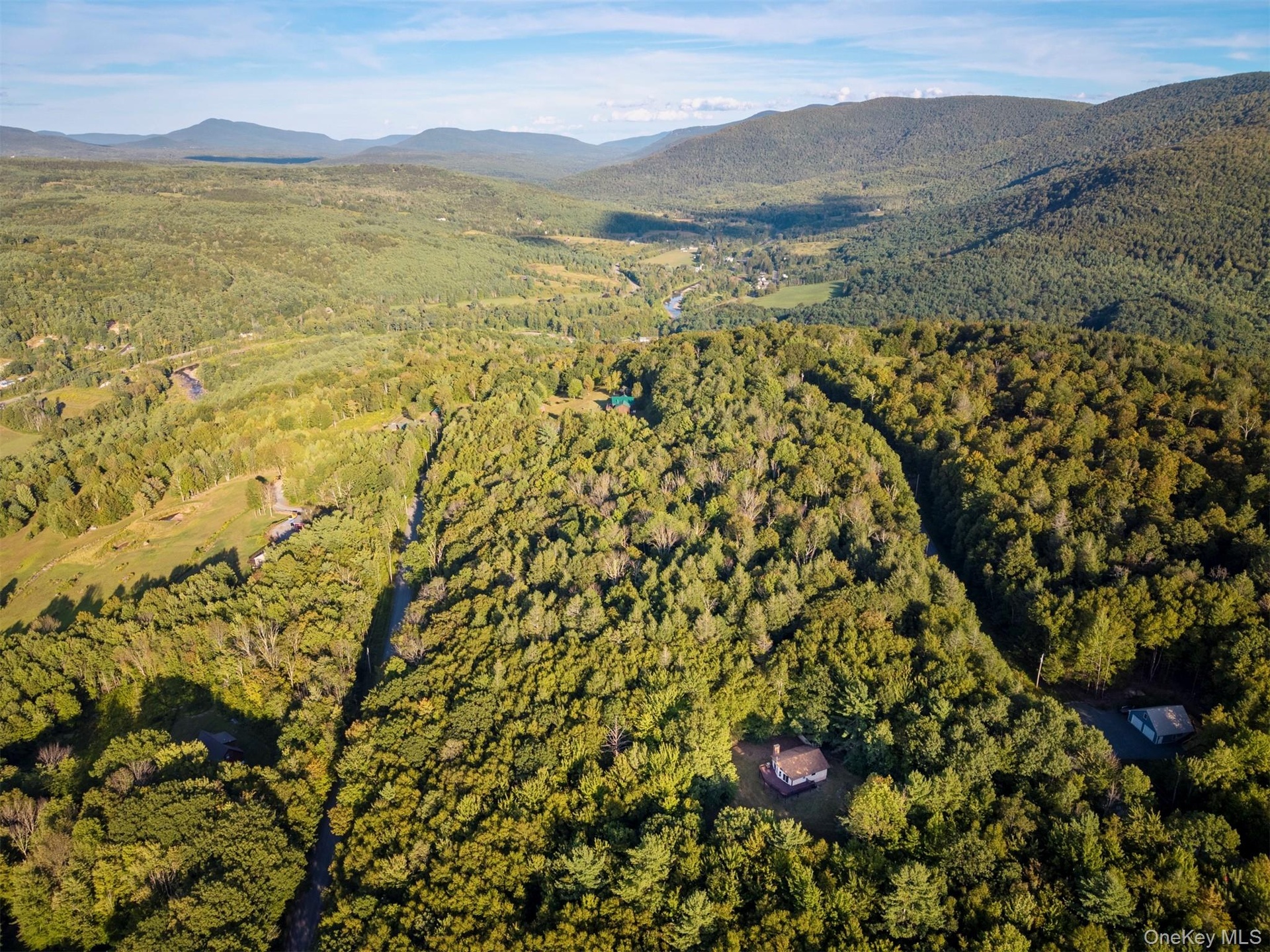- Aerial view of property and surrounding area with a heavily wooded area and a mountainous background