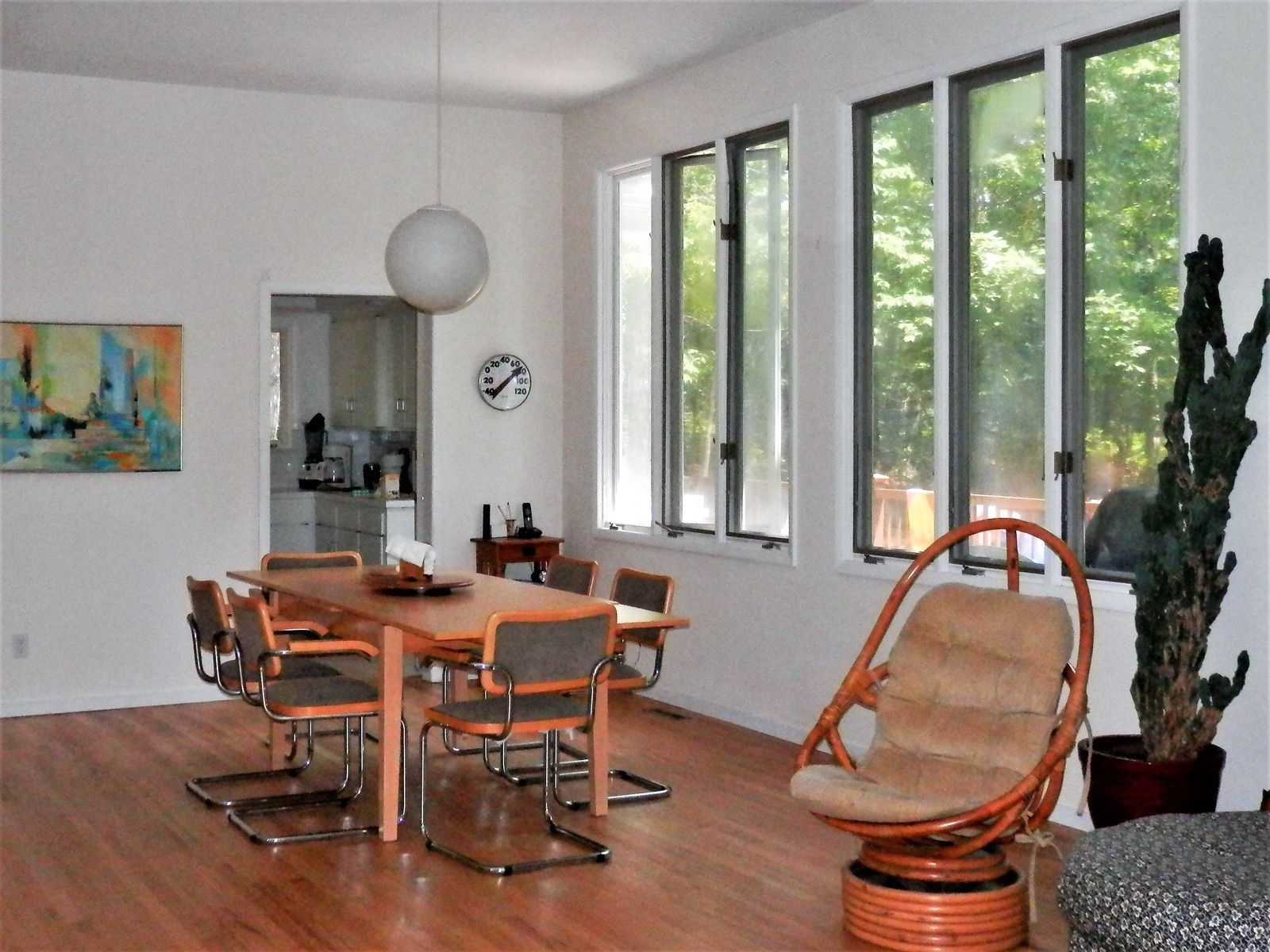Private and secluded retreat close to Amagansett Village and Ocean Beaches. Spacious open living/dining area, beautiful hardwood floors, custom marble bathroom, and windows surrounding the living/dining room that let the outside in and provide you with a beautiful view of the 46 ' heated pool, that is surrounded by two over-sized wrap around