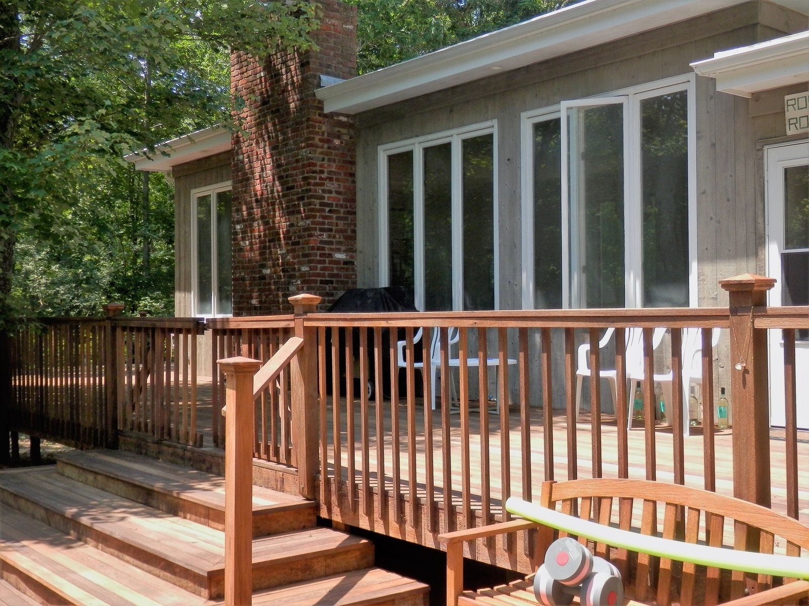 mahogany decks and lush landscaping. There is a master suite with a Bain Ultra jacuzzi , plus two additional bedrooms and a bath. Additional amenities include a fireplace, a full basement, outdoor shower, a two car garage, all sited on 2 acres.