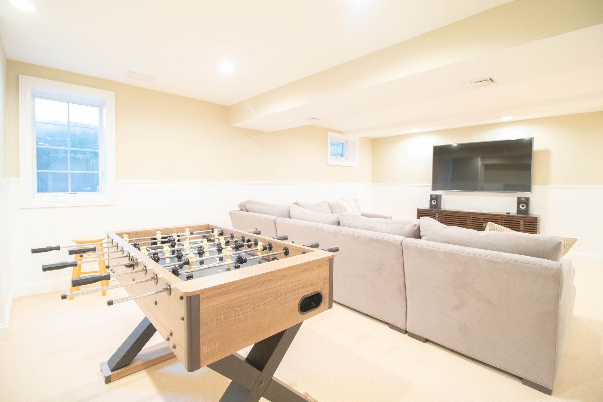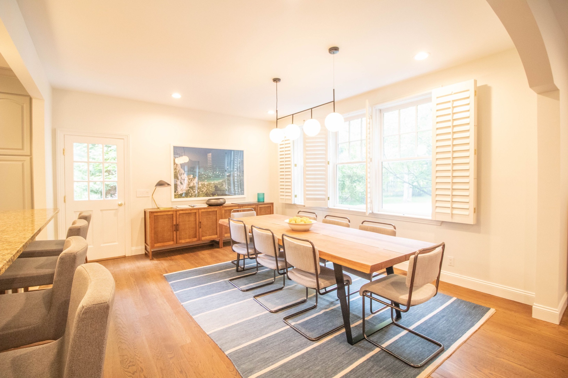 This quintessential Hamptons home is located on a quiet cul-de-sac in the desirable Hansom Hills neighborhood, just minutes from East Hampton Village and ocean beaches. The 4 bedroom and 3.5 bath house with den and finished basement has been newly updated for your summer enjoyment. As well as being recently refreshed, the house has a stylish, Hamptons design by a local interior design firm and boasts all new furniture, and updated lighting design. The vaulted entry foyer leads to a light-filled great room with a fireplace and seating for 12. Professional grade appliances anchor the large kitchen fit for a chef, with generous space for cooking and entertaining. The kitchen adjoins a spacious dining room with backyard views. A cozy, separate den with built-ins offers a private space to entertain and relax. The en-suite primary bedroom boasts two walk-in closets and a large wood burning fireplace. Two additional bedrooms also feature walk-in closets with enough space to make you feel at home. An additional bedroom, media center, game space, additional seating for lounging, full bathroom and spacious laundry area complete the finished lower level. Enjoy the best of outdoor living on the large brick patio which leads to a 20x46 heated pool. Beyond the pool is a deep backyard with plenty of space for lawn games and a great view of a neighboring nature preserve. This is the perfect retreat for enjoying summer in the Hamptons.