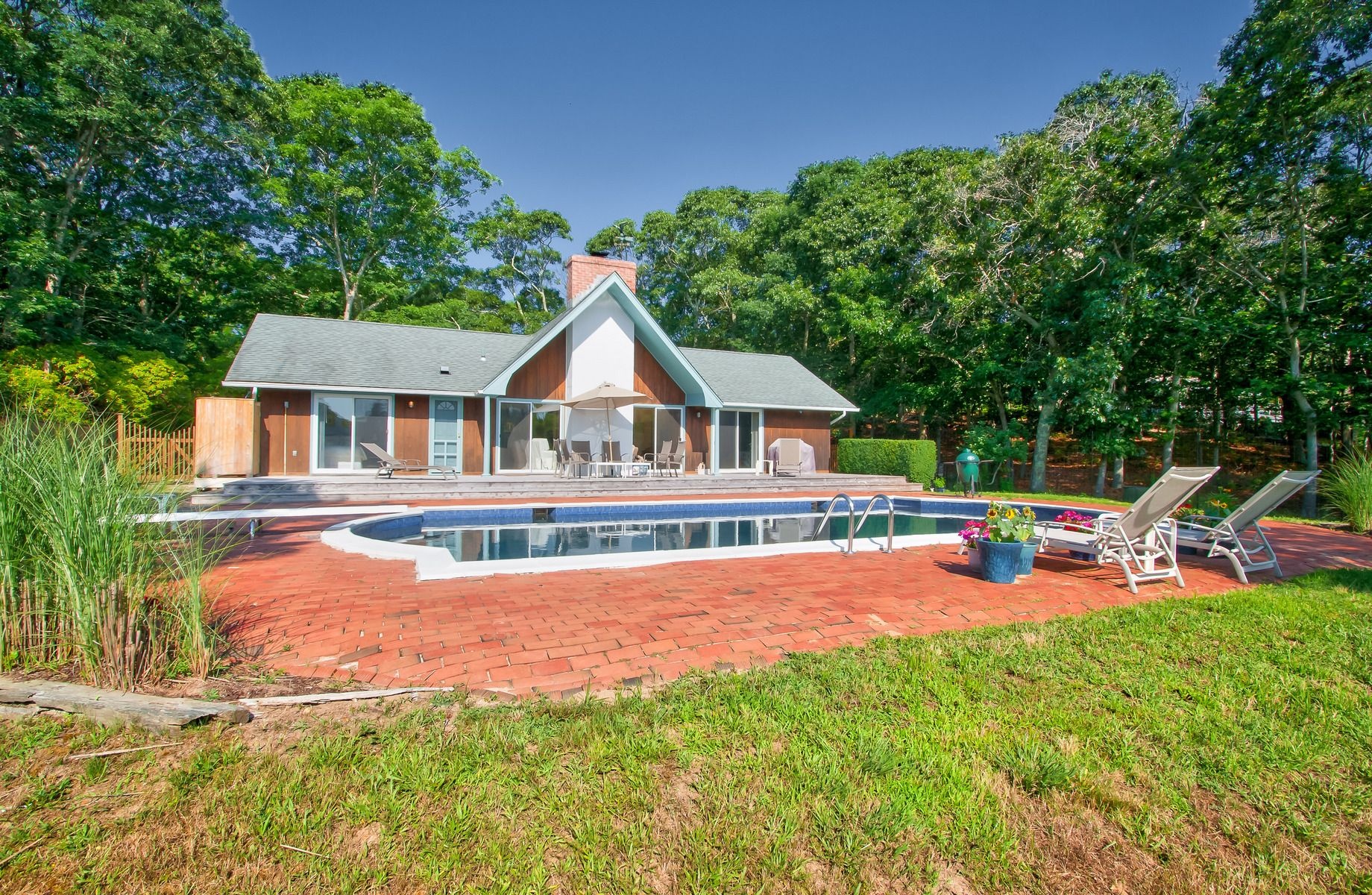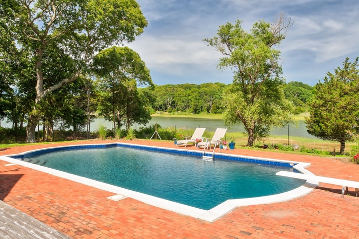 Rental Registration #: 20-1,175 1 Spend you August in this charming 3-bedroom house is situated on Hog Creek with views out to Gardiner's Bay with access for Kayaking. Open concept living area opens out to patio and 20 x 40 heated gunite waterside pool. The ultimate summer getaway..