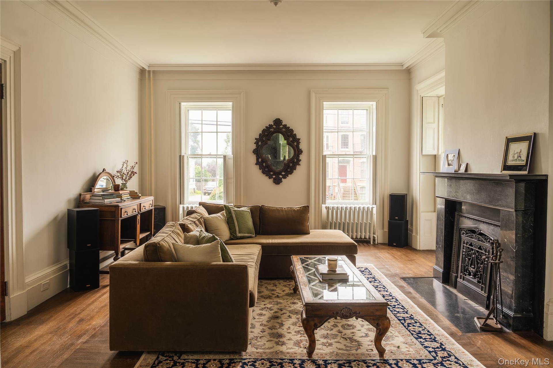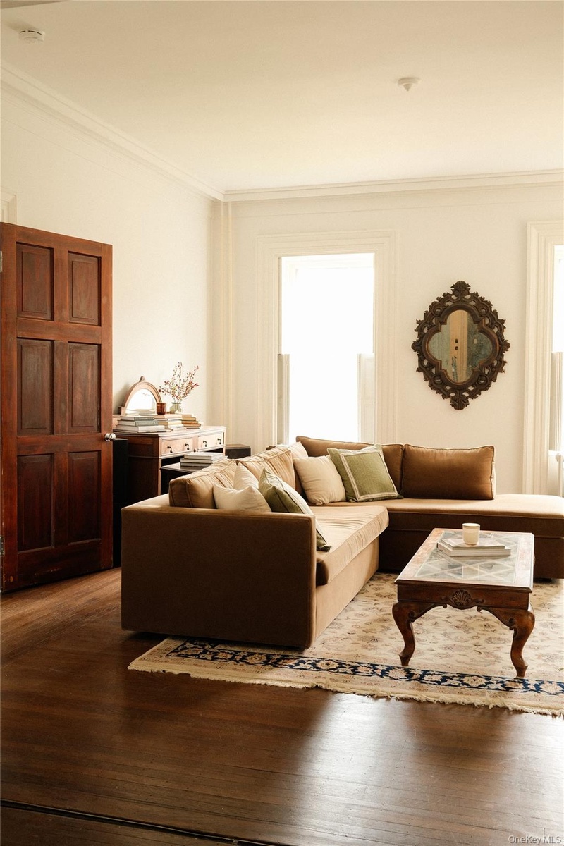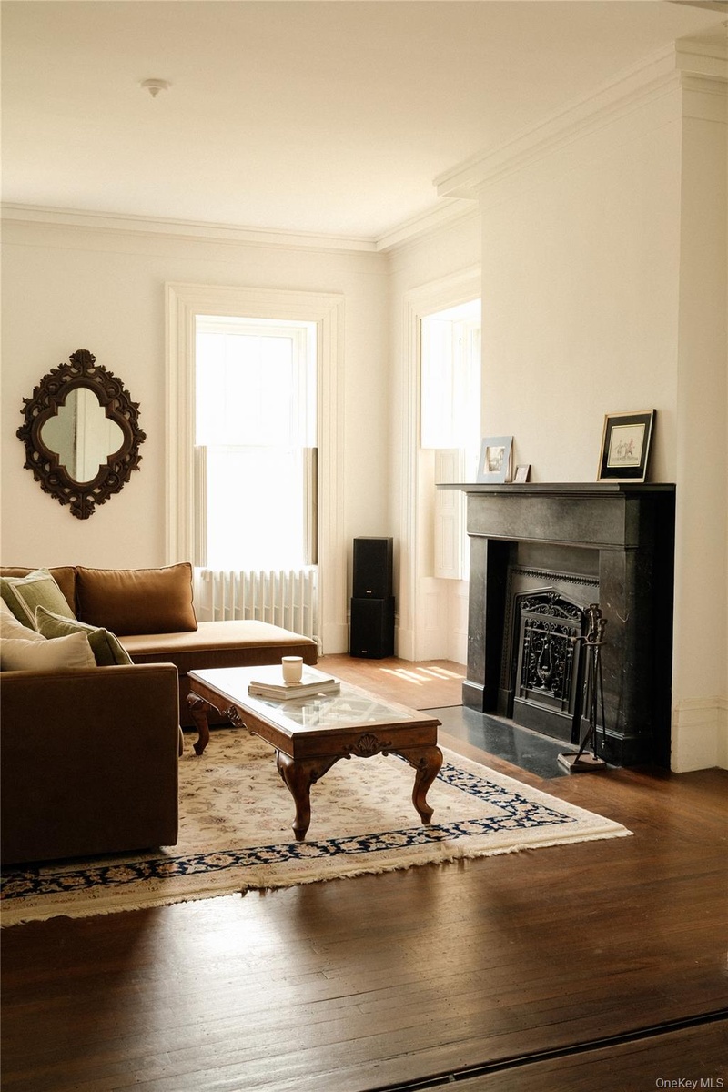 Step into the grandeur of this 1840s masterpiece, situated on an expansive half-acre lot. Boasting a magnificent 5 bedroom triplex on top of a charming 1 bedroom garden-level apartment, this multi-family home perfectly balances historic elegance and modern updates. Original details abound, including soaring ceilings, intricate plaster moldings, hardwood floors, pocket window shutters, and massive pocket doors that seamlessly connect the living spaces. With 5 fireplaces present, 4 are original marble. The home’s sunroom and covered back porch overlook the sprawling yard, offering a serene oasis rarely found in the city. Newly updated kitchens and bathrooms with brand-new appliances offer modern functionality. Located near the Hudson River waterfront, shops, and dining, this home is a rare opportunity to own a piece of Newburgh’s architectural history, and perfect for anyone looking to live in a beautiful historic home on the best block in the City of Newburgh.