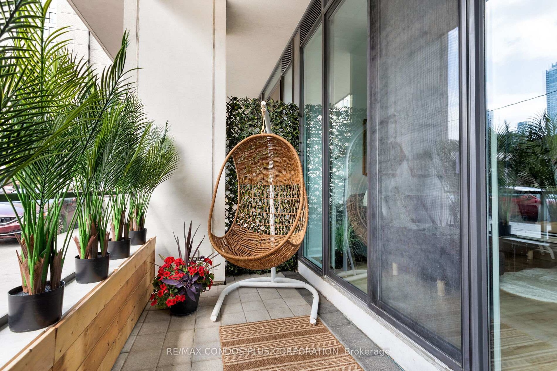 DescriptionWelcome To The Queen Of The Bay St. Corridor! Rarely Offered & Immaculate 1 Bedroom Unit With Main Floor Access - No Elevators Needed! Clear South Exposure Overlooking A Quiet Side Street (With CN Tower Views!). This Functional Suite Has Everything You Need - Separate Living & Dining Areas, A Work Space, Enclosed Bedroom & A Roomy Private Terrace To Enjoy Morning Coffee or Happy Hour. The Crown Jewel? 10 Foot Ceilings That Enhance Space and Light. A Consummate Home Or Pied-A-Terre For Health Care Workers, Financial District Employees & Academics. Smack Dab In The Heart Of The City - Walk Or Transit (Streetcar At Your Door, Subway Stop A Block Away!), To Financial District, University Campuses, Hospital Row, Eaton Centre, ROM, City Hall, Yonge+Dundas Square, Or Wherever Your Day Takes You. Elite Building Amenities Include: Gym, Pool, Steam Room/Sauna, Rooftop Terrace, 4 Guest Suites, Visitor Parking + More! Longos Grocery Store Right Downstairs - And A Plethora Of Delicious Local Food & Drink Spots To Discover. Must Be Seen! Fresh Paint, New Floors, Updated Kitchen & Bathroom, Newer Washer/Dryer. Coat Closet. 1 Locker Included. 100 Transit Score + 98 Walk Score (NO car needed! but Parking easily rented in the building). Main floor access great for pet owners!Virtual Tour: https://tours.bhtours.ca/cp/101-111-elizabeth-street/Amenities- City