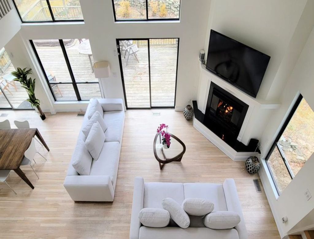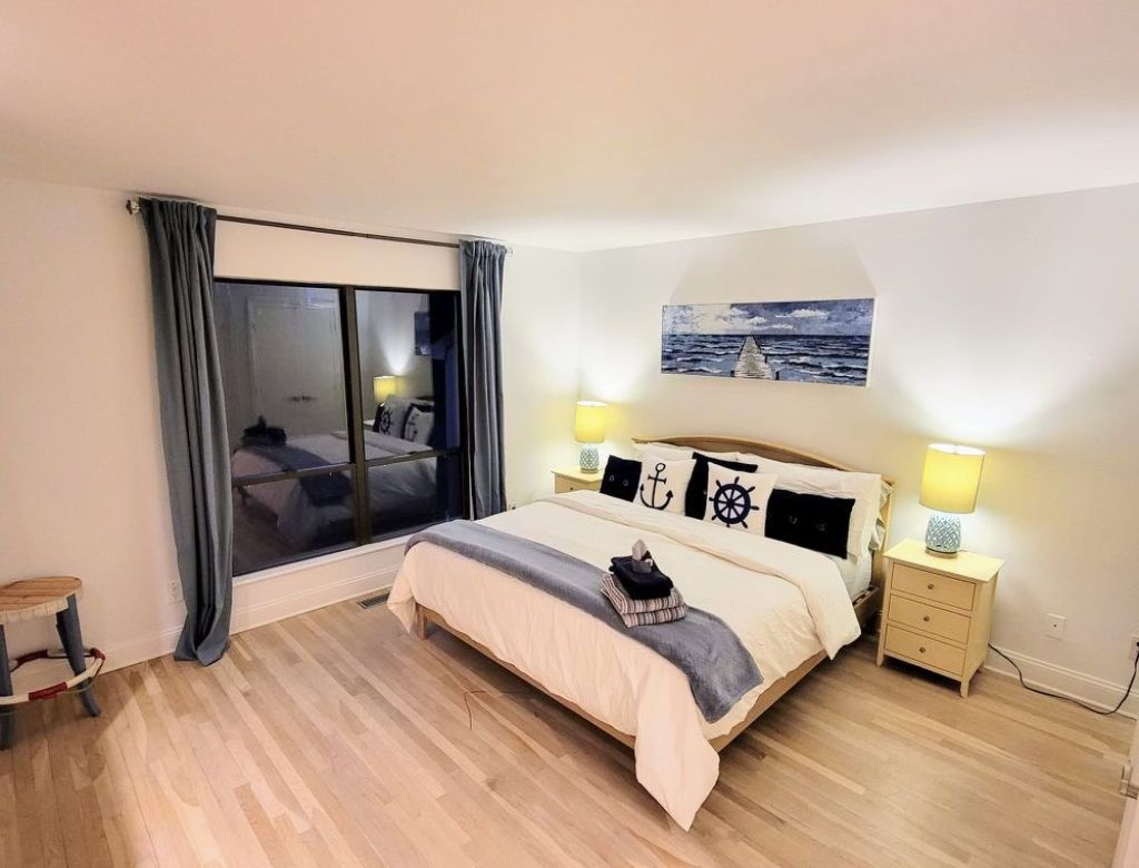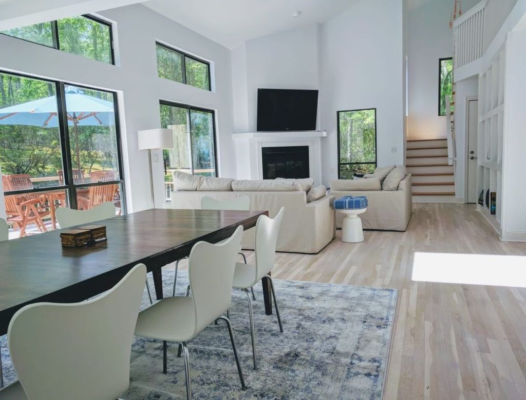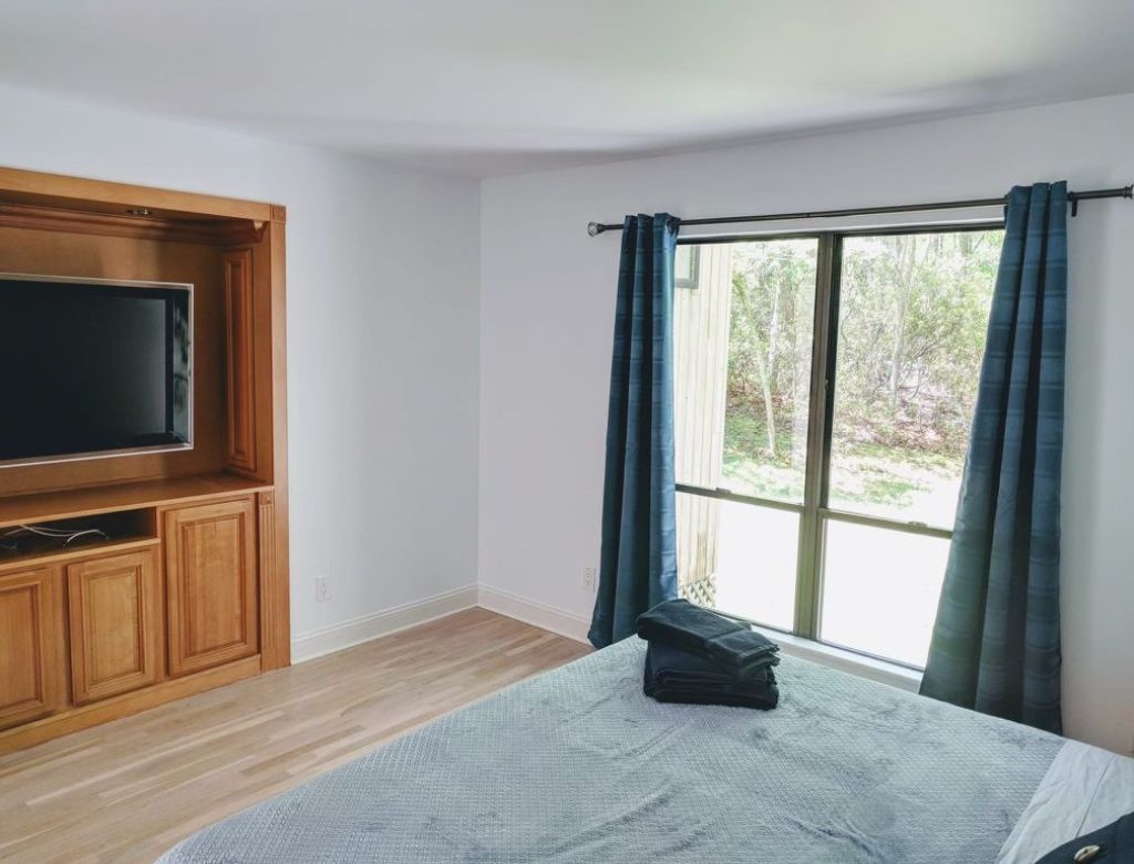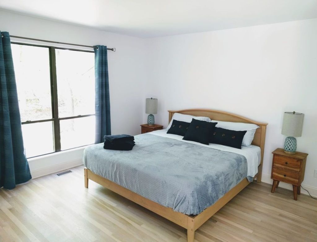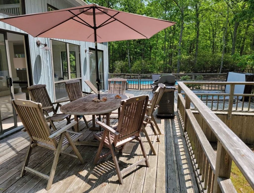 This inviting property features a spacious deck with a BBQ grill, a luxurious gunite pool (20x40) heated by an energy-efficient heat pump, and a soothing hot tub. Enjoy evenings by the firepit in the yard. Inside, discover three bedrooms, including two king-sized beds and one queen, with additional sleeping space on an open gallery with a queen-sized futon. The interior is bright and airy, boasting two sets of washer-dryers, a cozy propane fireplace, and pet-friendly accommodations (with protection for brand new sofas). Please note that the garage is not included in the rental agreement.