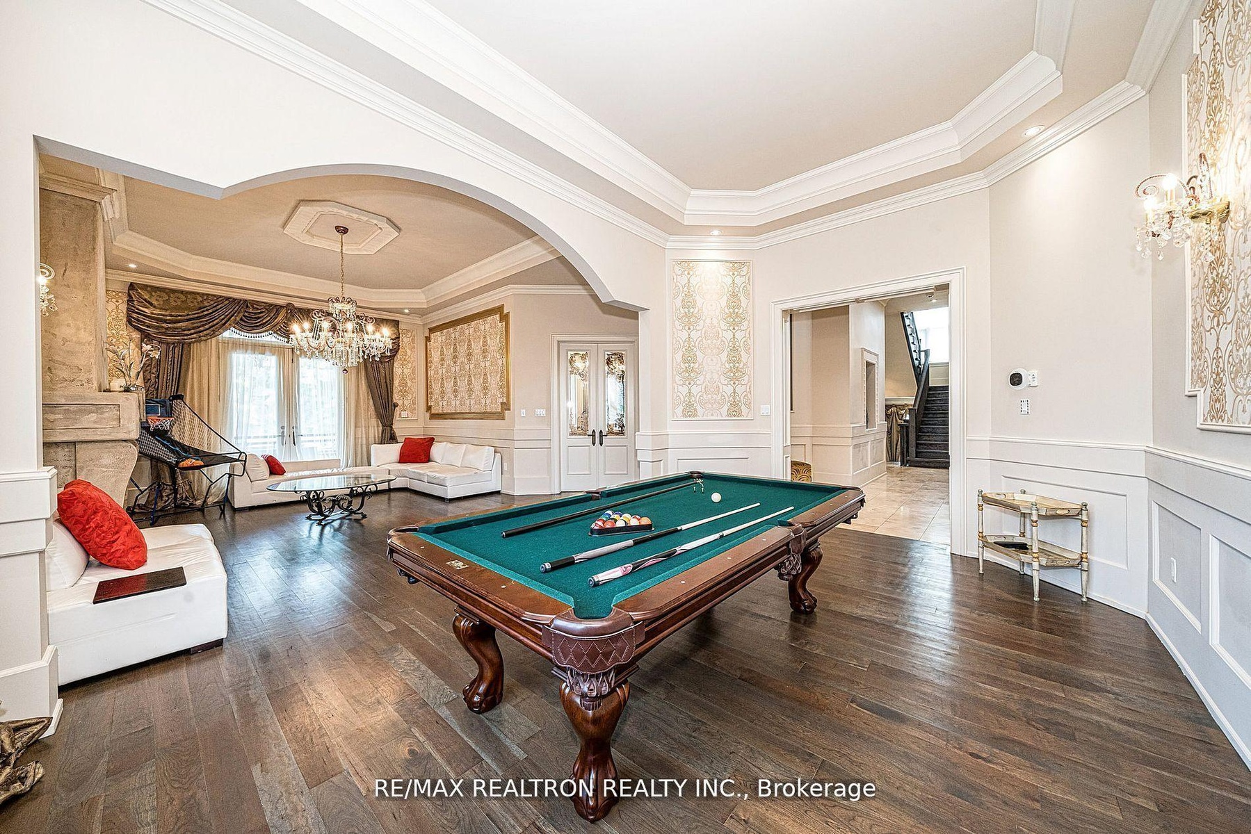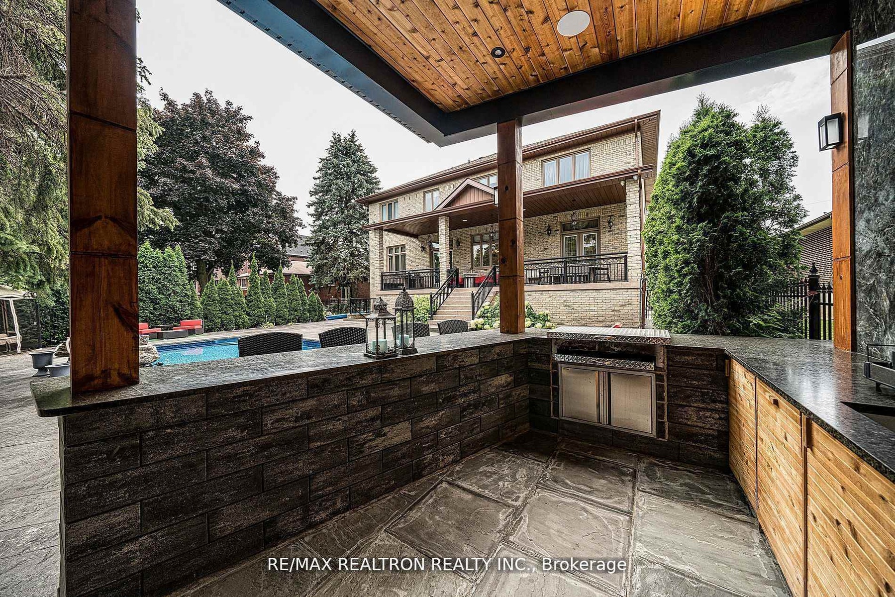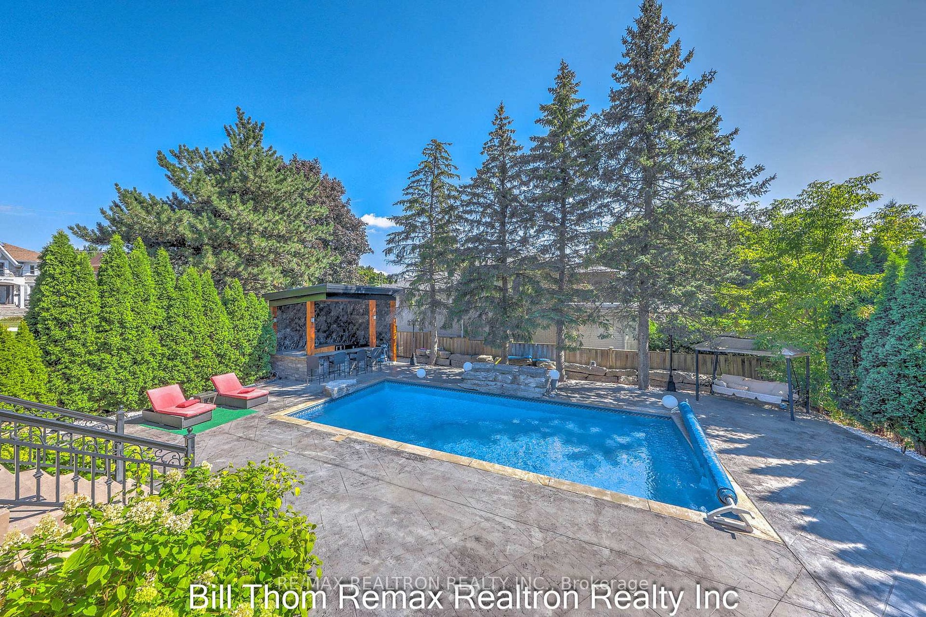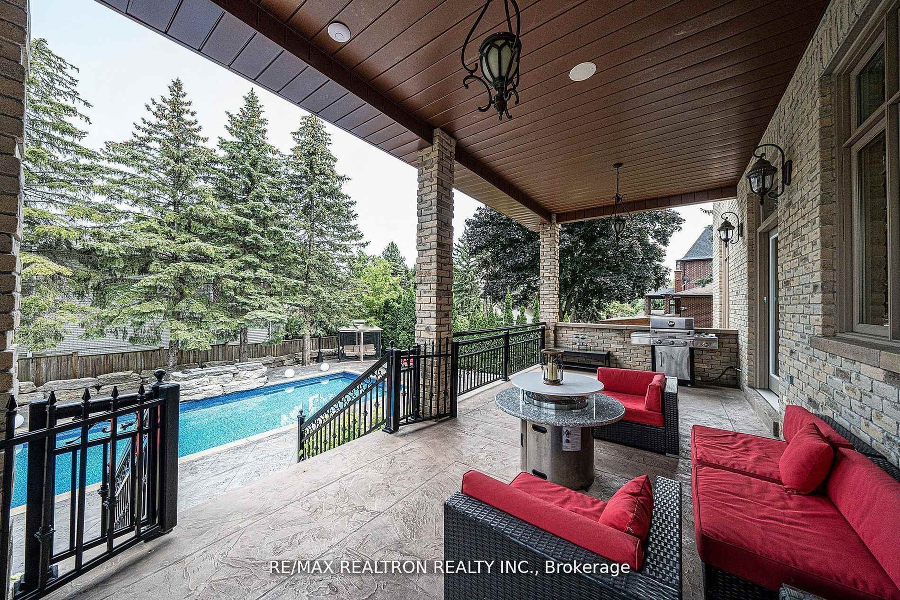 Experience luxury living in this stunning 5,500 sq. ft. custom-built residence, crafted with exceptional quality and attention to detail. The home showcases a beautifully designed kitchen featuring premium appliances. The main floor boasts soaring 12 ceilings, elegant designer lighting, custom drapery, and a combination of travertine and hardwood flooring. The spacious master suite offers a dressing area and two walk-in closets. A fully finished walk-up basement enhances the living space with a home theatre and wet bar. Charming cobblestone walkways and a driveway enhance the curb appeal, while the heated saltwater pool provides a resort-like atmosphere. Recent updates include a heated stamped concrete driveway, new vinyl and cover for the upgraded pool system, new roof shingles, and a stylish backyard cabana complete with BBQ, wet bar, wine cooler, cabinetry, and countertop. Additional highlights include an irrigation system, gated driveway, new countertops, basement bar sink, upgraded security with cameras, ceiling speakers, refinished hardwood floors, and a modernized powder room. The garage also features an electric vehicle charger, ideal for eco-conscious homeowners.