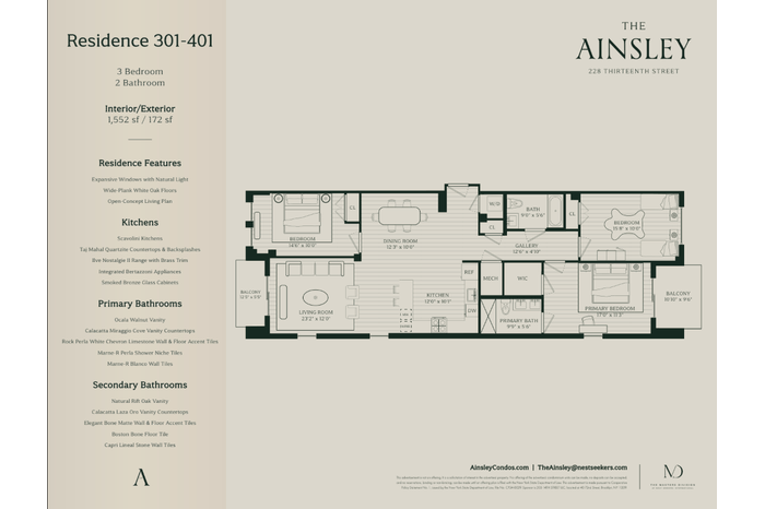 Introducing Residence 301 at The Ainsley, a sprawling 3-bedroom, 2-bathroom condo that spans over 1,552 square feet of interior living space with private outdoor terraces. This home is ideal for families or those seeking extra space to entertain while enjoying the luxurious amenities and sophisticated finishes of a boutique development in the heart of Park Slope.