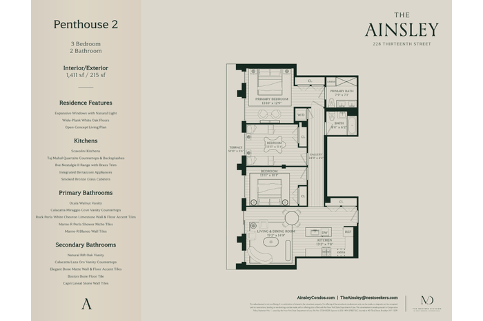 Introducing PH2, a stunning penthouse at The Ainsley that spans 1,411 square feet of interior space with expansive private terraces offering breathtaking views. This 3-bedroom, 2-bathroom home embodies the pinnacle of luxury living, with meticulously curated finishes and spacious layouts that cater to a refined lifestyle.