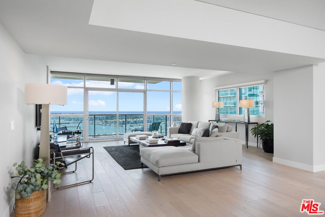 Views! Views! Views! Stately, spectacular and rare 2 bedroom/2.5 bathroom + den with massive, open living room and an epic, ultra-spacious 2,509 sf floor plan. This 16th floor stunner at this prestigious address with sweeping views of the marina and the pacific will tickle your senses and trigger your imagination. Perched in this eagle's nest above the channel, the marina's key water feature, you can reflect and aspire in the riveting, dramatic and dynamic views of North America's largest man-made marina and the soothing pacific breezes. Rare french white oak flooring. Studio Becker cabinetry with additional built-ins for storage and convenience. Expanded kitchen Calacatta stone island with waterfall and fine glass tile backsplash, super-premium Miele appliances and silhouette shades throughout with selected motorization. Oversized balcony with the ideal southern exposure running the property frontage, affording incredible winter sunset views, which is bar none, quintessential marina living. Staggering living space with ultra-wide living/dining area offering endless opportunities for reflection and entertainment. As a premier Cove residence, this gem encapsulates the very essence of inspiring, full-service, high-rise coastal living. A massive bonus in the EV charging station in the private parking spaces. Also available turnkey. Rarely ever does an exciting and unique opportunity comes to market on such a highly coveted trophy asset that combines location, floor height and size. This superlative Silicon Beach residence represents understated class, top quality materials and workmanship that can't be duplicated anywhere else. Close to restaurants, the beach, shopping, LAX, the 405 and everything worth having nearby.