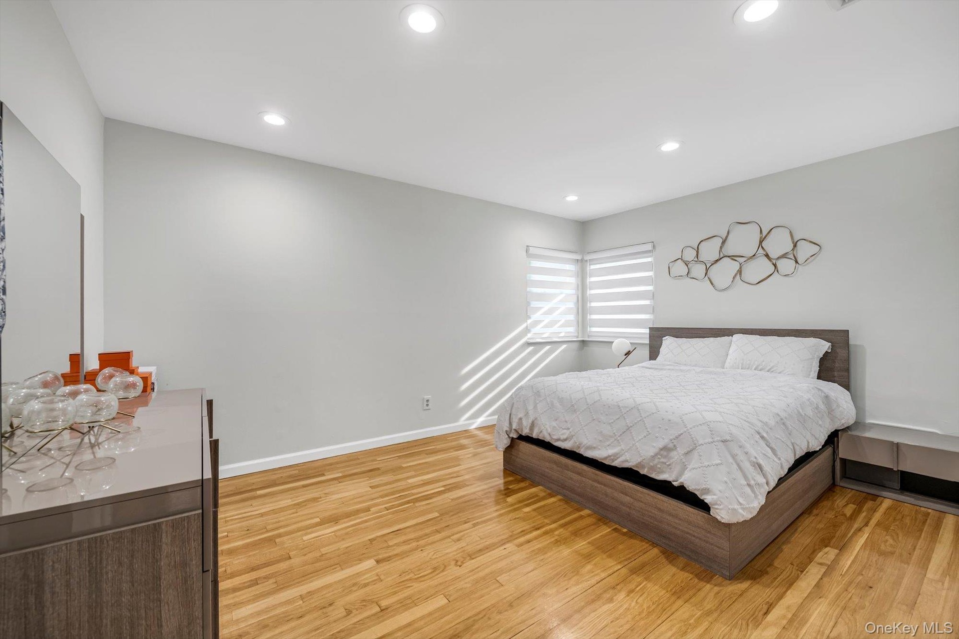 - Bedroom featuring light wood-type flooring and recessed lighting