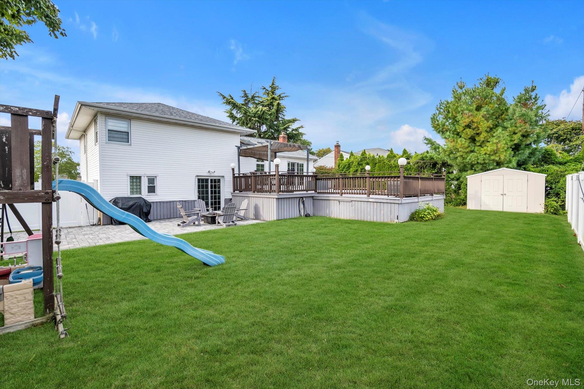 - Fenced backyard with a patio area, a playground, and area for grilling