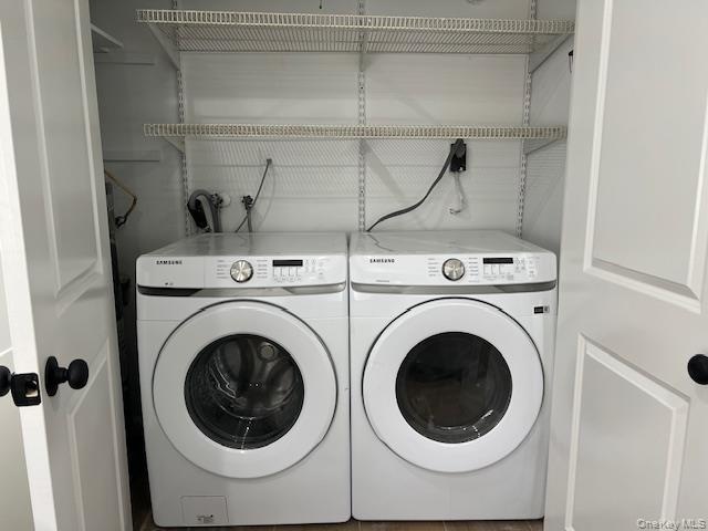 - Full bath with enclosed tub / shower combo, vanity, and tile walls