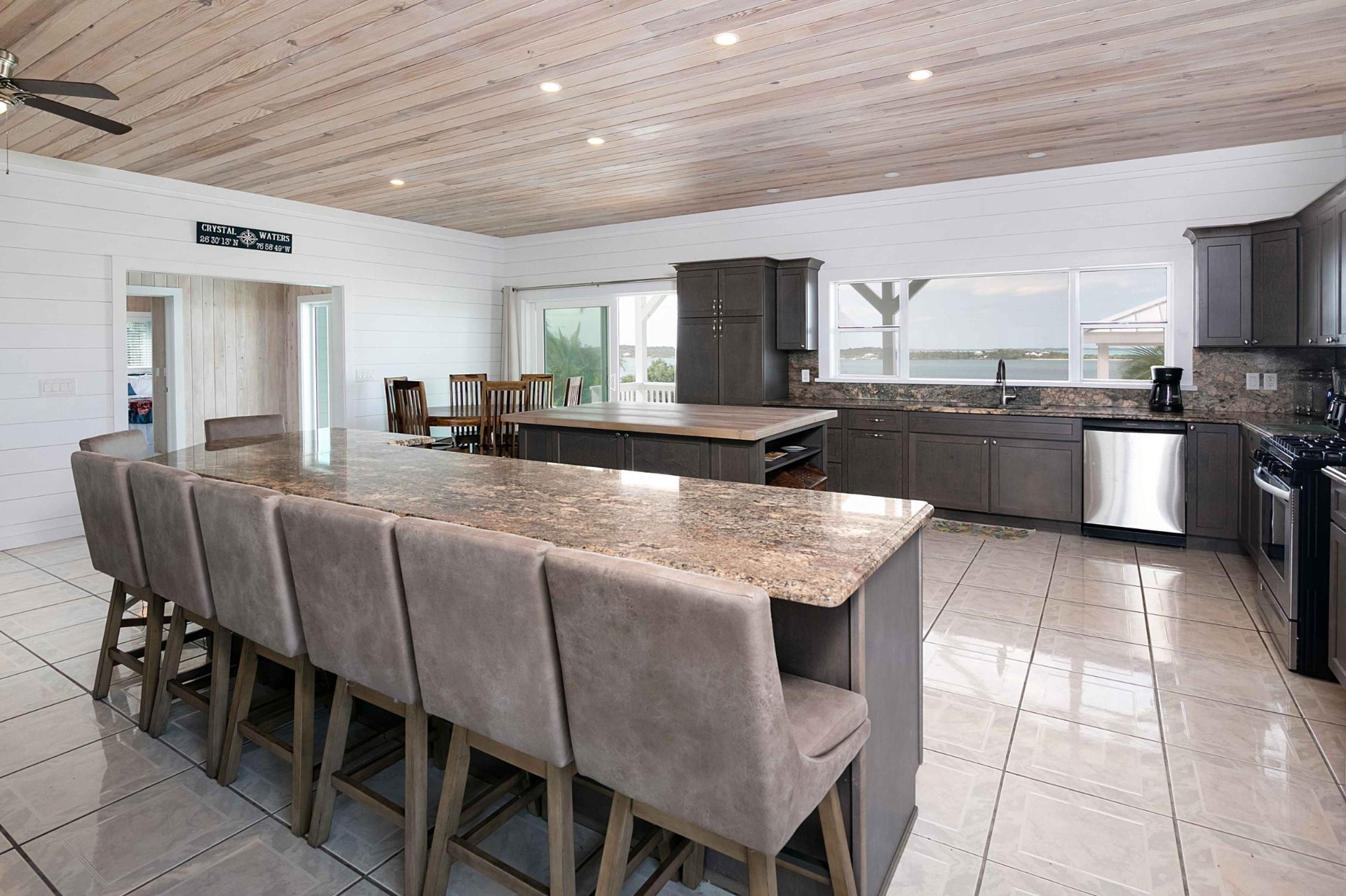 Crystal Waters and Villas is an exquisite waterfront property located on the picturesque island of Elbow Cay, the gem of the Abaco Islands. Crystal Waters and Villas is situated minutes away from Hopetown on the southern end of Elbow Cay and just north of Elbow Cays world-famous Tahiti Beach. This one-of-a-kind, charming resort property consists of 3.612 acres of prime real estate in a beautiful tropical setting, boasting first-class amenities, including a 3,233 square foot, air-conditioned main house and 6 air-conditioned villas of 900 square feet each. The spacious main house has 4 bedrooms and 3 bathrooms with all tile floors, granite countertops in the kitchen, and beautiful wood cabinets. Upstairs is exclusively limited to the master suite, with a balcony, wood deck, and large bathroom, including a stand-alone soaking tub, separate shower, and double sink vanity. The main level has 3 bedrooms and 2 bathrooms on one side and a large kitchen and living room on the other, separated by a large counter bar with granite top.