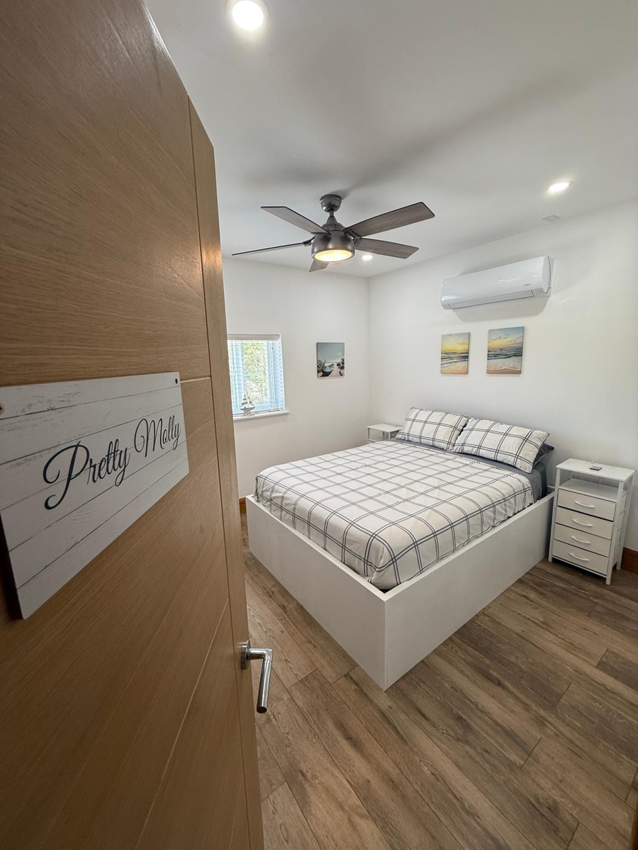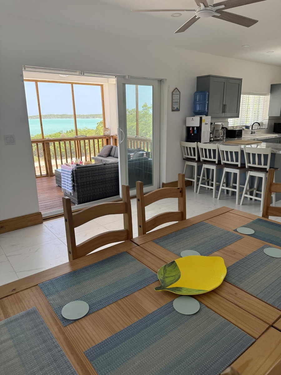 Regatta View is a newly completed modern home set on a hillside corner lot in the highly sought-after community of Flamingo Bay. Just 5 minutes from George Town and 15 minutes from the airport, the property combines convenience with privacy in one of Exuma’s most desirable locations. Spanning 2,000 square feet over 2 floors, it has been designed with families in mind. There are 3 spacious bedrooms, including a luxurious master suite with private balcony, and 2 sleek bathrooms. At its heart is a brand-new kitchen fitted with high-quality appliances: a full-sized fridge freezer with water and ice maker, large oven with built-in air fryer, fitted washer and dryer, plus generous storage. The open-concept living and dining area flows to oversized windows and sliding doors that frame breathtaking turquoise views. Expansive decking, covered balconies, and a partly screened patio maximize outdoor living, offering stunning vistas of Flamingo Bay, February Point, Moriah Harbour, and Crab Cay. Already a successful holiday let, Regatta View is both a dream family home and a smart investment.