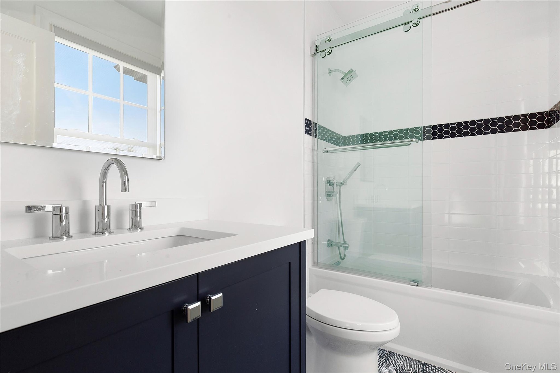 - Bathroom featuring shower / bath combination with glass door and vanity