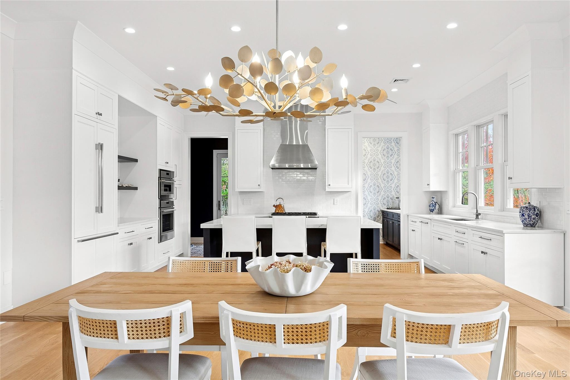 - Dining area with recessed lighting, light wood finished floors, and a chandelier