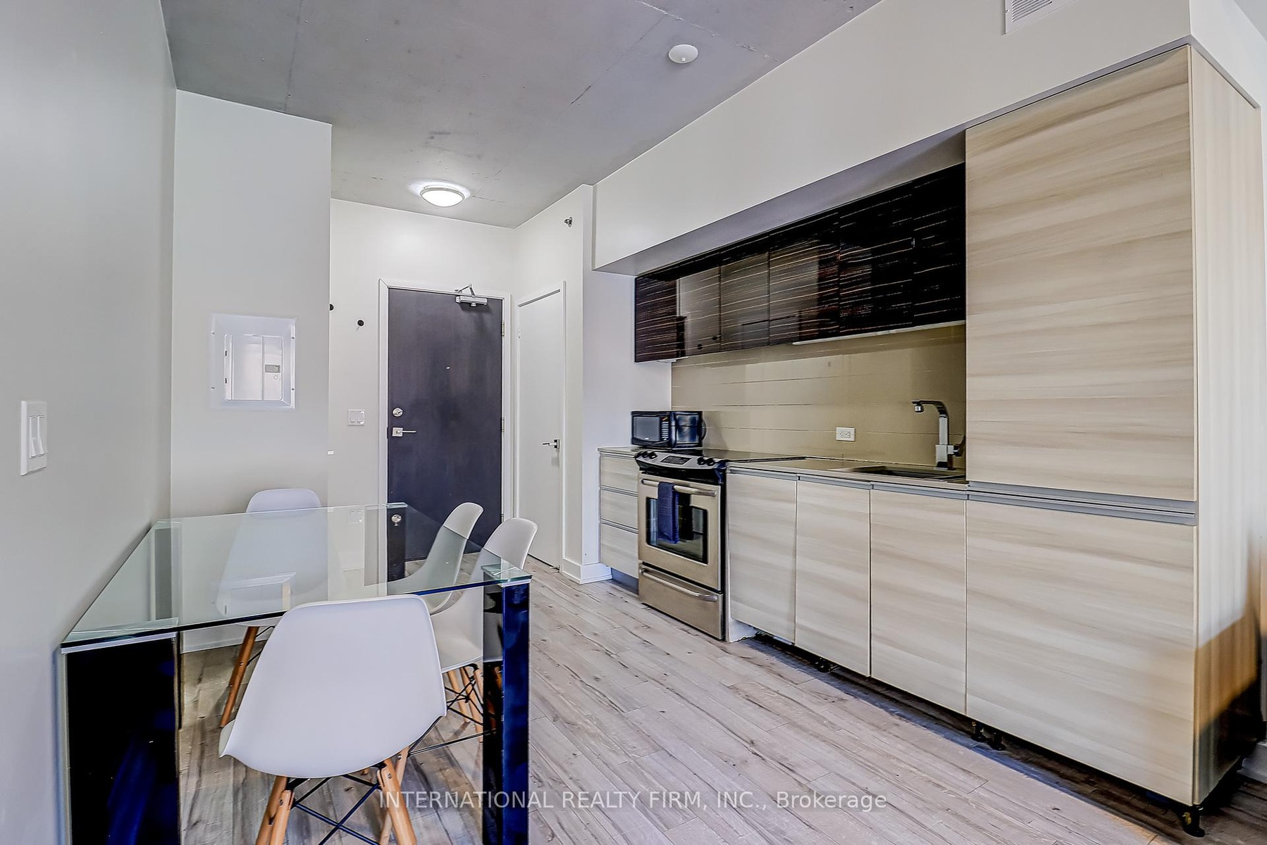 Modern 1 bedroom furnished condo at the Carnaby Lofts in Queen West featuring floor to ceiling windows, a sleek kitchen with built in appliances, in suite laundry, and a private ...
