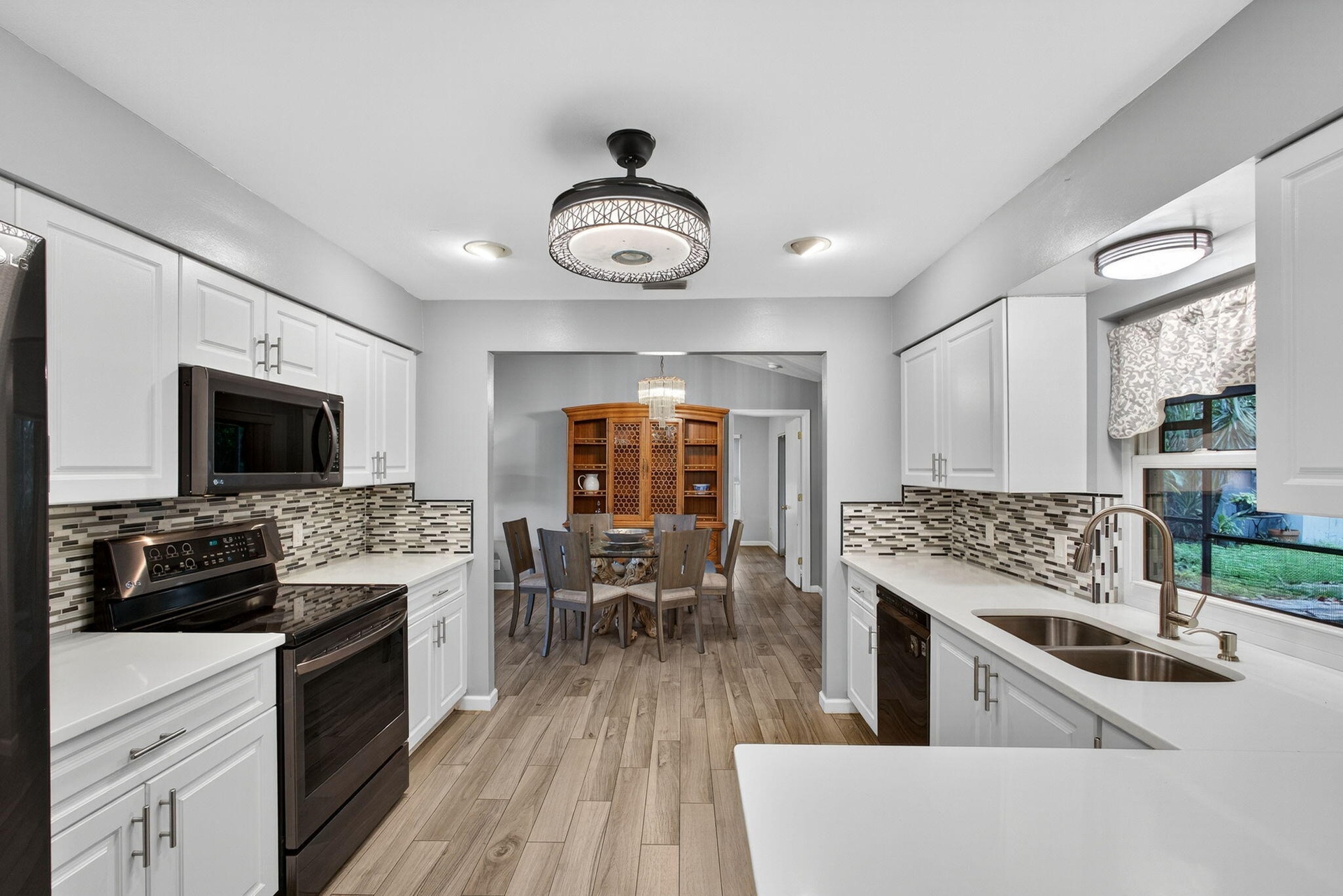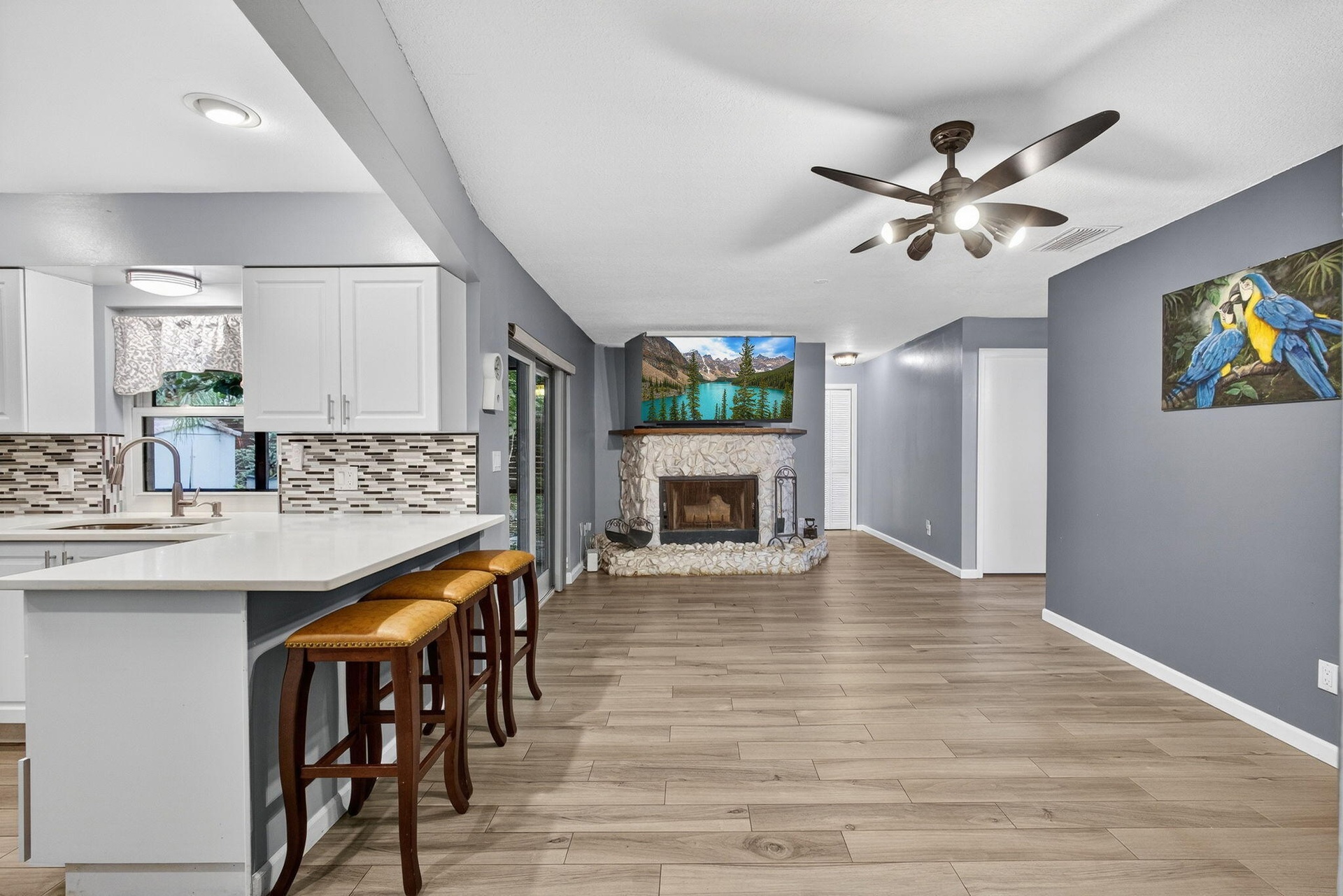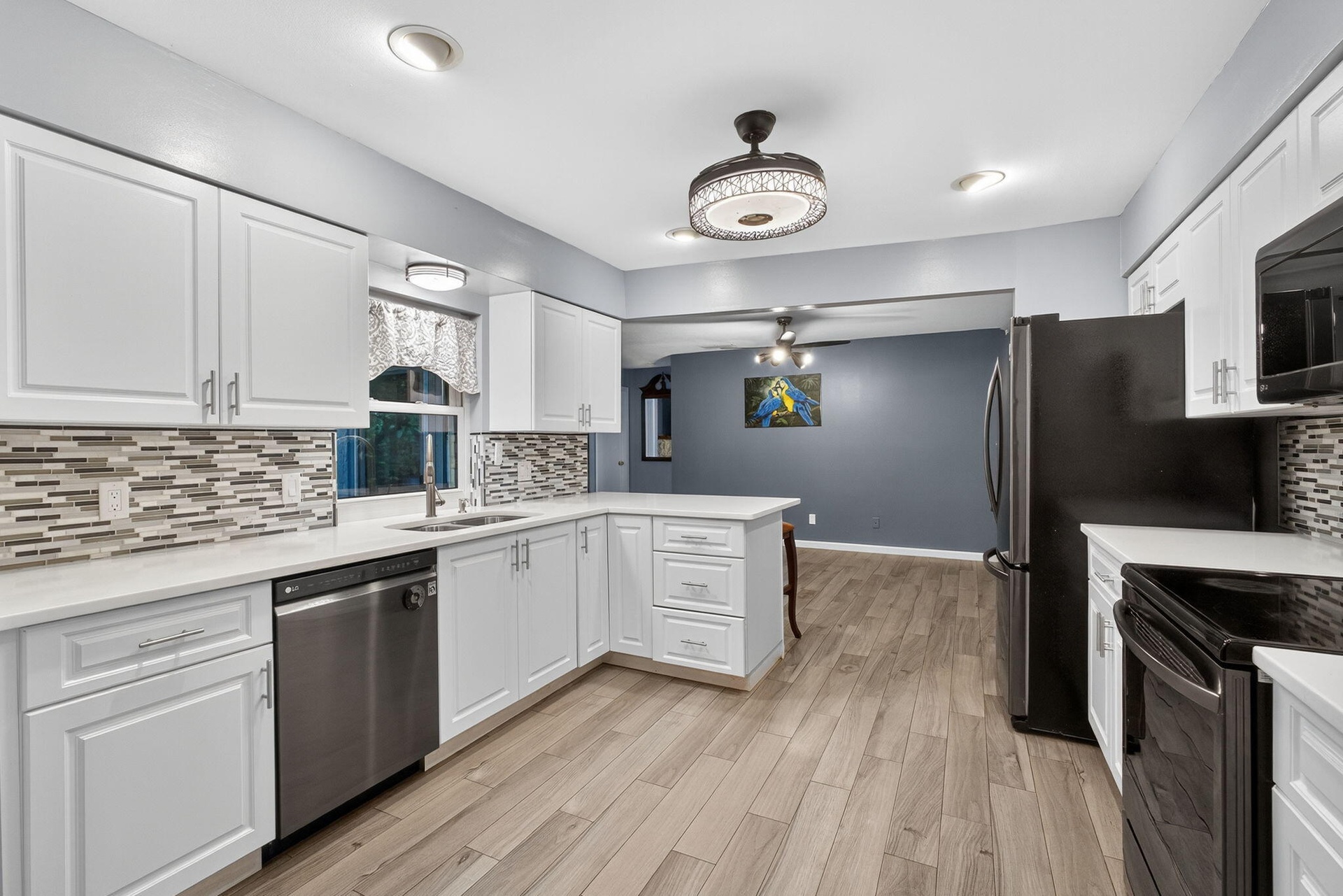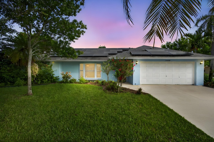 Welcome to this beautifully updated 3-bedroom, 2-bath corner-lot home in Sugar Pond Manor, offering the perfect blend of style, comfort, and functionality--all with no HOA restrictions. Step inside and be impressed by the expansive split floor plan, ideal for both entertaining and privacy. The home showcases continuous wood-look porcelain tile flooring throughout, creating a warm, modern aesthetic. The designer kitchen features quartz countertops, custom cabinetry, and recently updated stainless steel appliances--a dream for any home chef. Both bathrooms have been fully remodeled with high-end finishes, offering a spa-like feel with timeless design. Enjoy year-round comfort with a newer A/C and water heater, plus the long-term savings of fully owned solar panels.