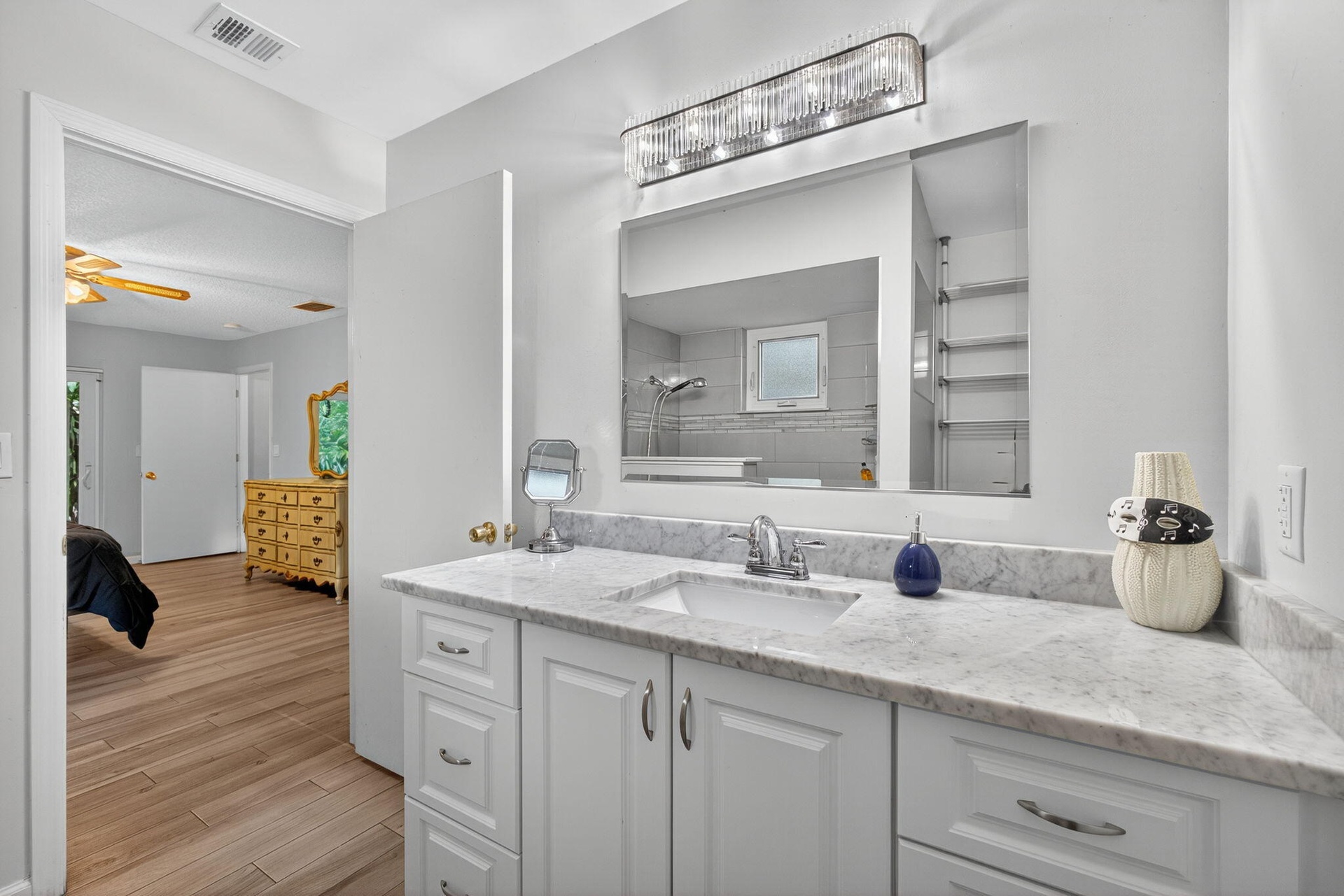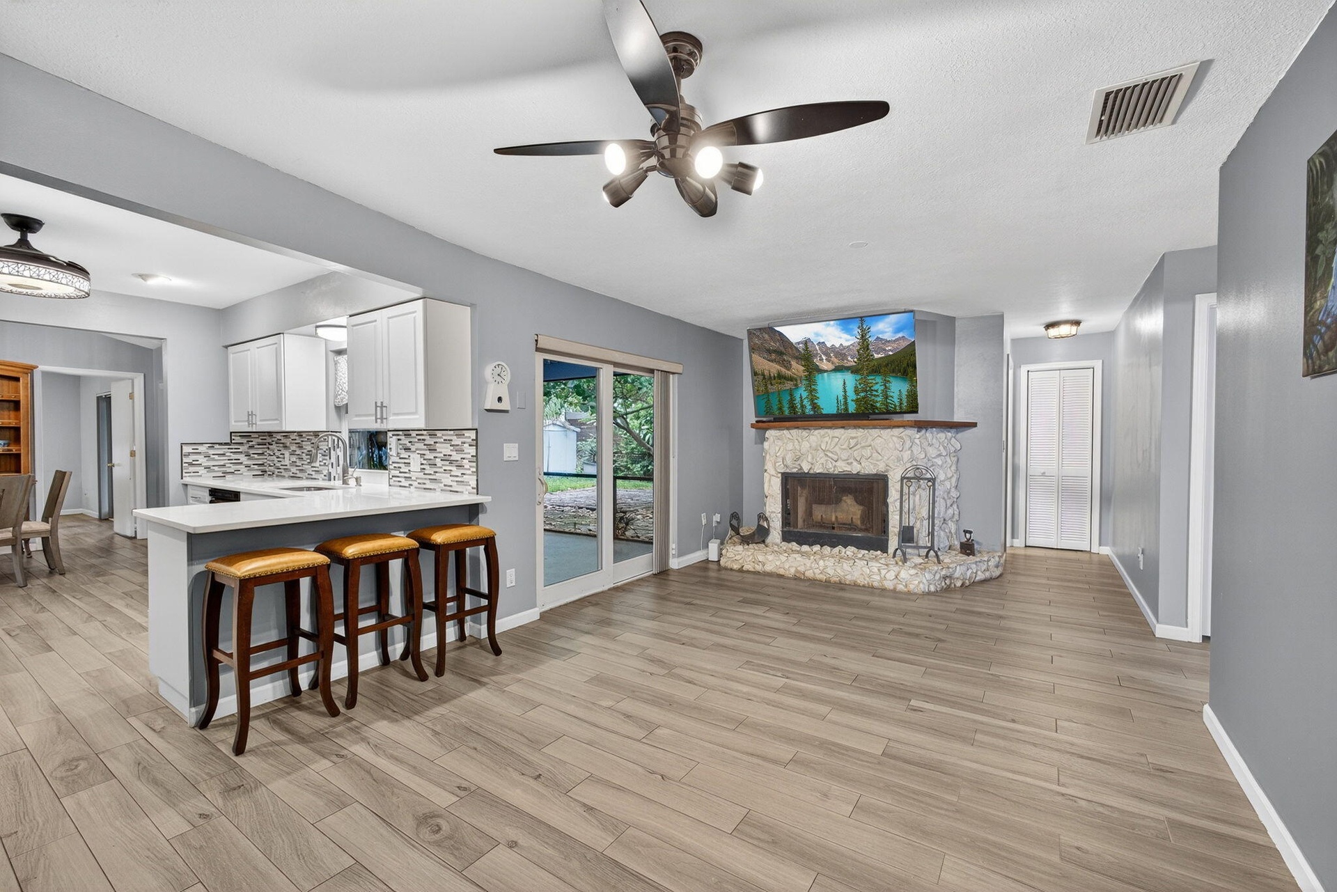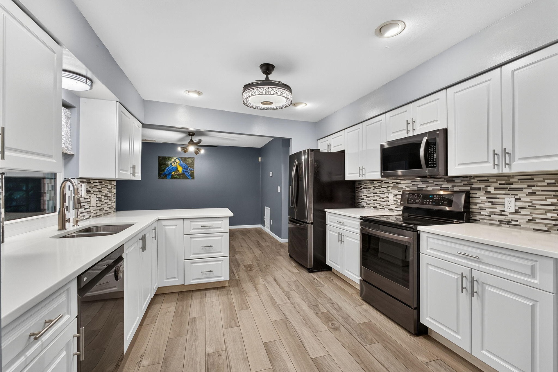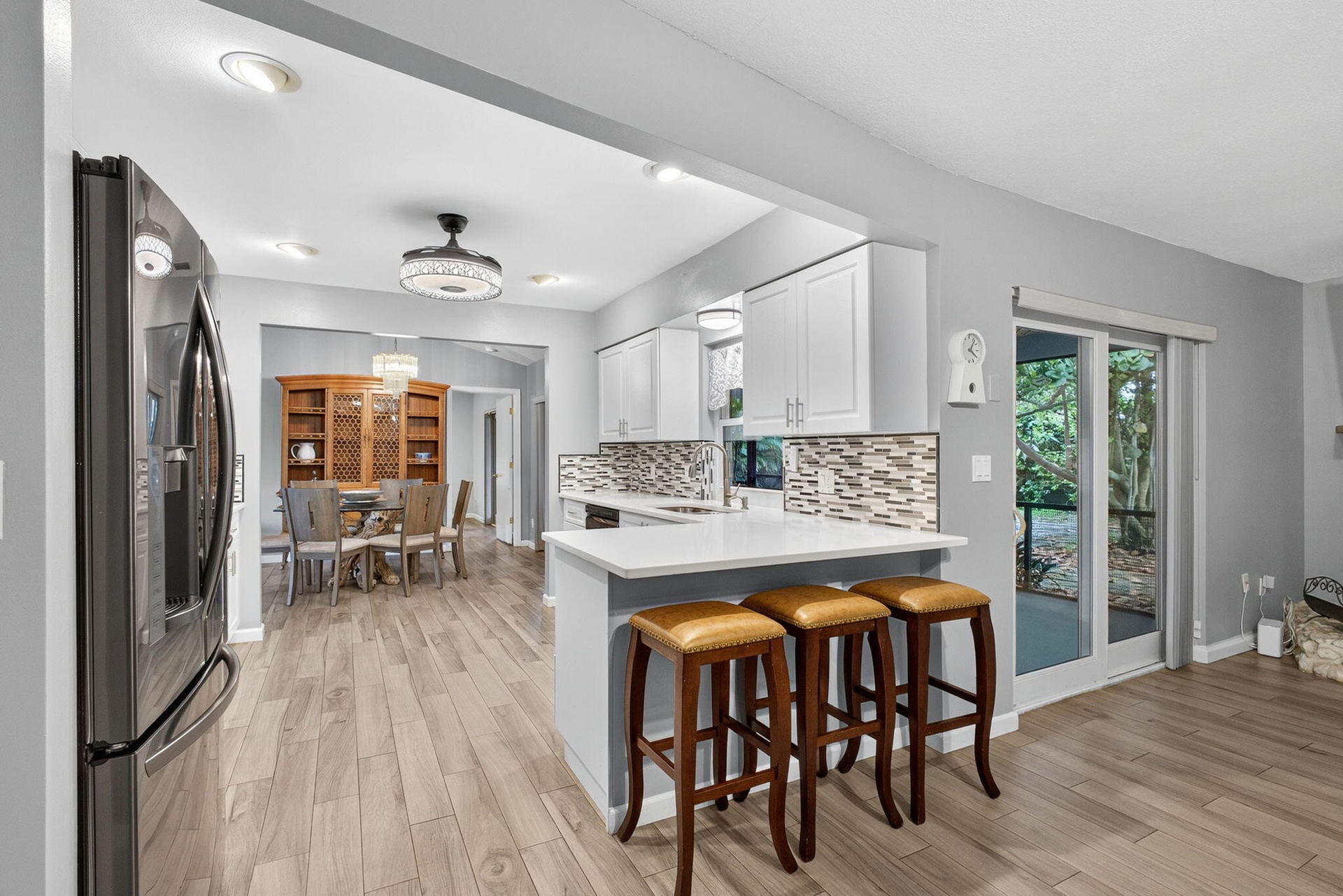 Welcome to this beautifully updated 3-bedroom, 2-bath corner-lot home in Sugar Pond Manor, offering the perfect blend of style, comfort, and functionality--all with no HOA restrictions. Step inside and be impressed by the expansive split floor plan, ideal for both entertaining and privacy. The home showcases continuous wood-look porcelain tile flooring throughout, creating a warm, modern aesthetic. The designer kitchen features quartz countertops, custom cabinetry, and recently updated stainless steel appliances--a dream for any home chef. Both bathrooms have been fully remodeled with high-end finishes, offering a spa-like feel with timeless design. Enjoy year-round comfort with a newer A/C and water heater, plus the long-term savings of fully owned solar panels.