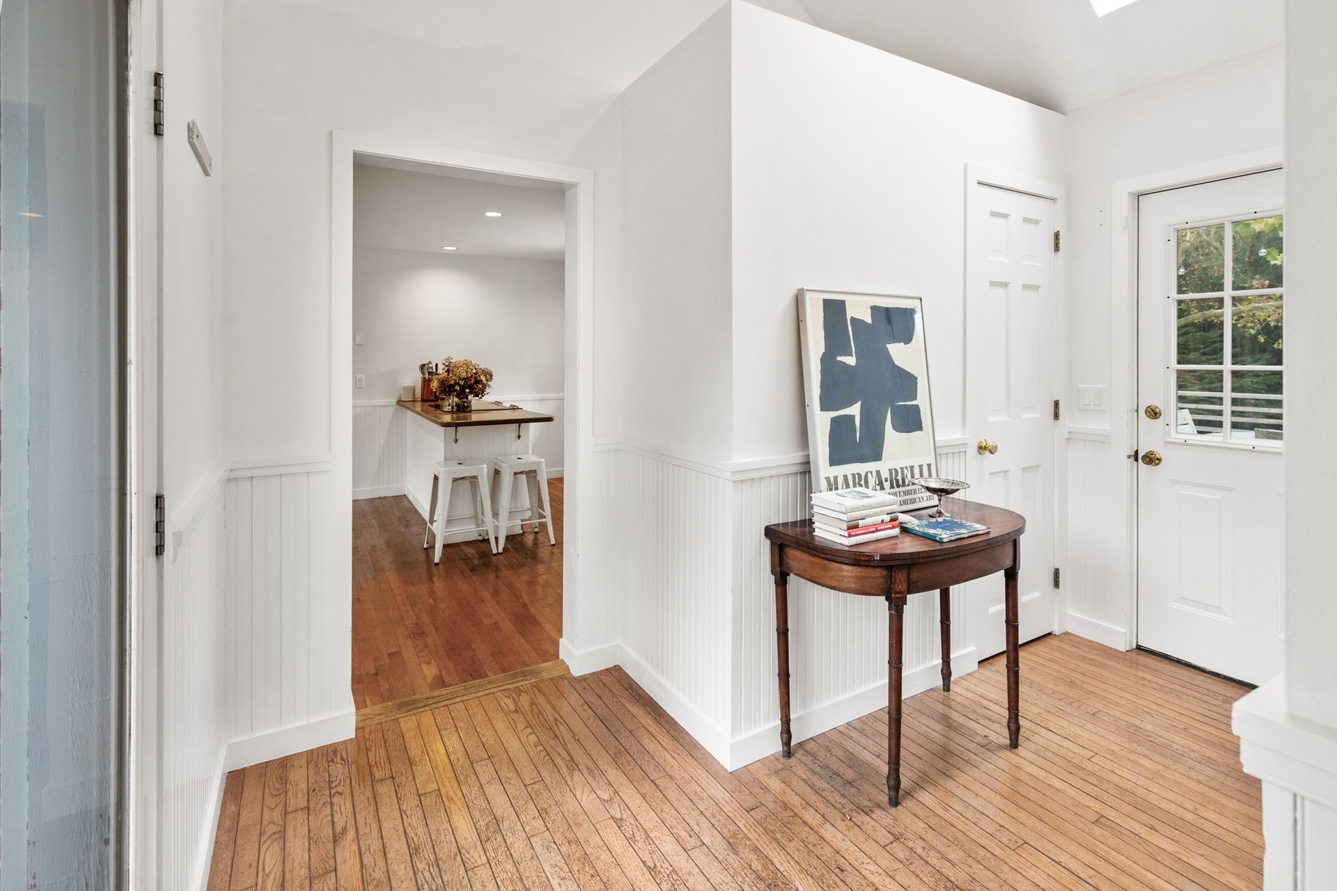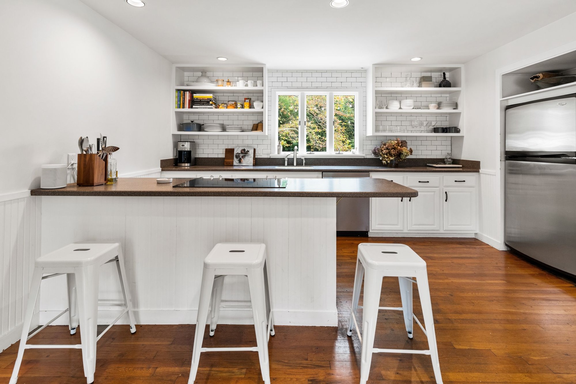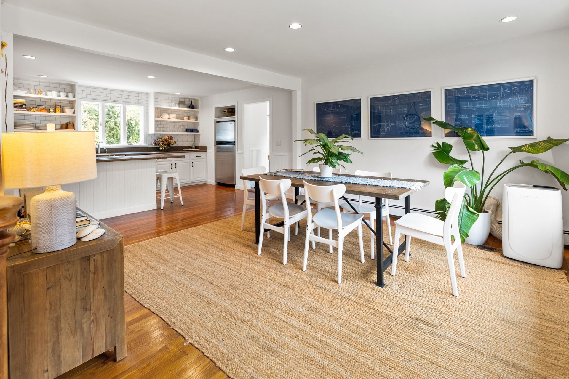 Beautifully refreshed Cape Cod in a peaceful location just off of North Main Street in Southampton's Hampton Park neighborhood. Inside, the recently updated kitchen, which features a subway-tile backsplash, open shelves, and stainless-steel appliances, opens directly into the large dining and living areas. A bedroom and full bath are located on the first floor, along with a separate side-entry hall. Upstairs there are two more bedrooms and a full bath. Additional features include a one-car garage and a full basement with new washer/dryer. Outside, a large back deck overlooks a lush back lawn and new pool with beautiful old-growth trees and specimen plantings. Spotless and orderly, this home is perfectly located close to Southampton Village, local train/bus depots, and the Atlantic Ocean beaches.