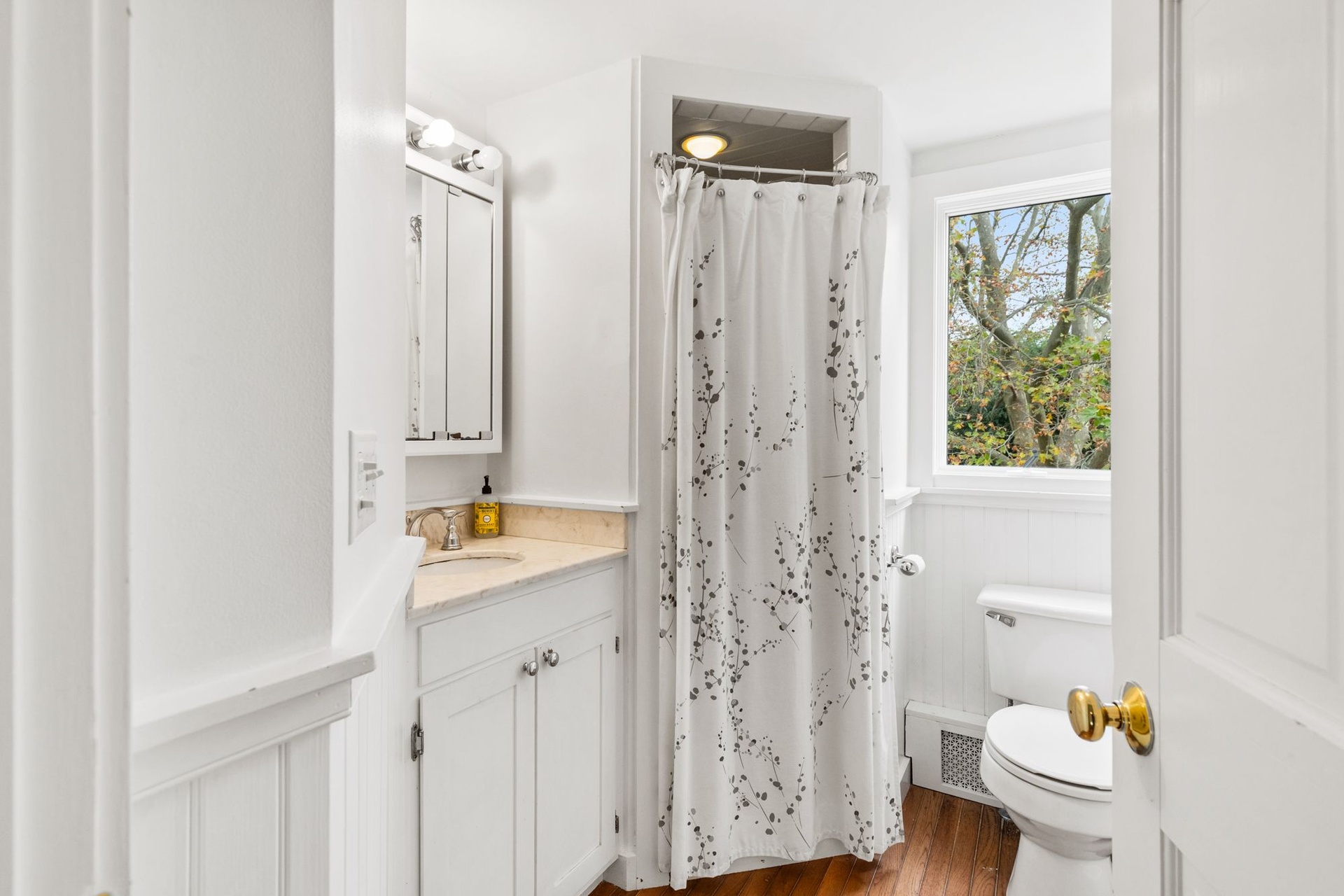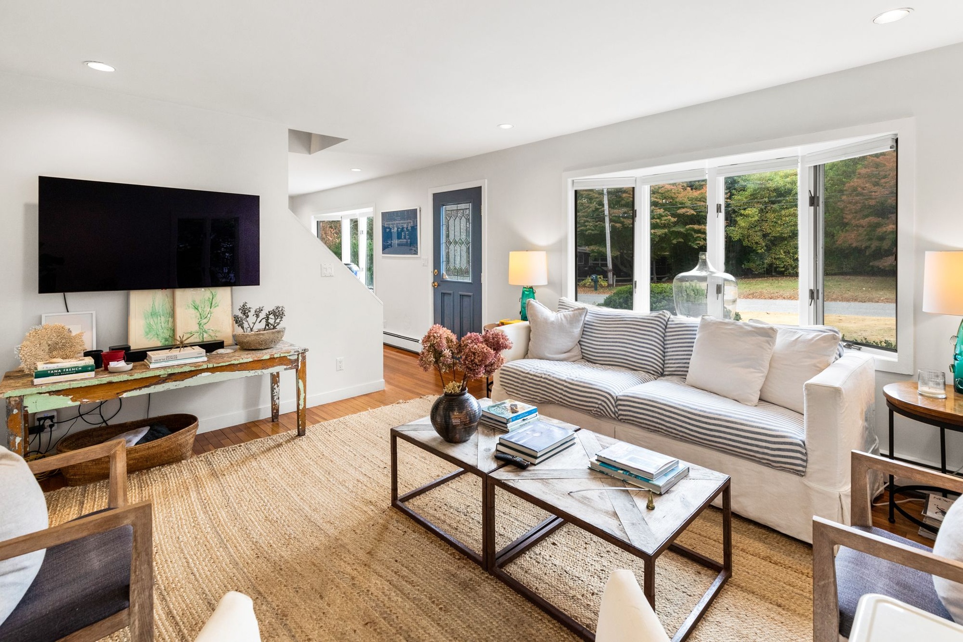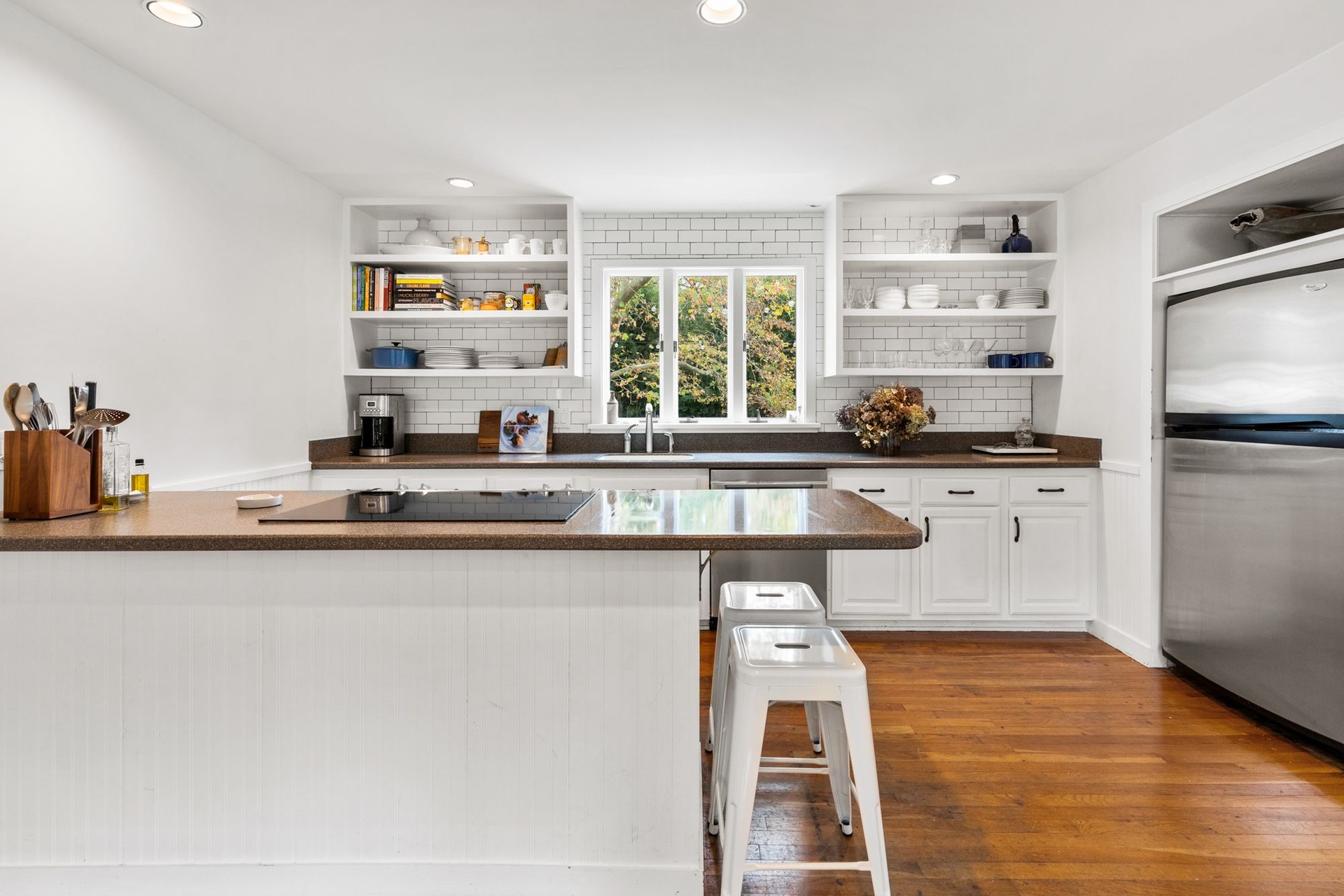 Beautifully refreshed Cape Cod in a peaceful location just off of North Main Street in Southampton's Hampton Park neighborhood. Inside, the recently updated kitchen, which features a subway-tile backsplash, open shelves, and stainless-steel appliances, opens directly into the large dining and living areas. A bedroom and full bath are located on the first floor, along with a separate side-entry hall. Upstairs there are two more bedrooms and a full bath. Additional features include a one-car garage and a full basement with new washer/dryer. Outside, a large back deck overlooks a lush back lawn and new pool with beautiful old-growth trees and specimen plantings. Spotless and orderly, this home is perfectly located close to Southampton Village, local train/bus depots, and the Atlantic Ocean beaches.