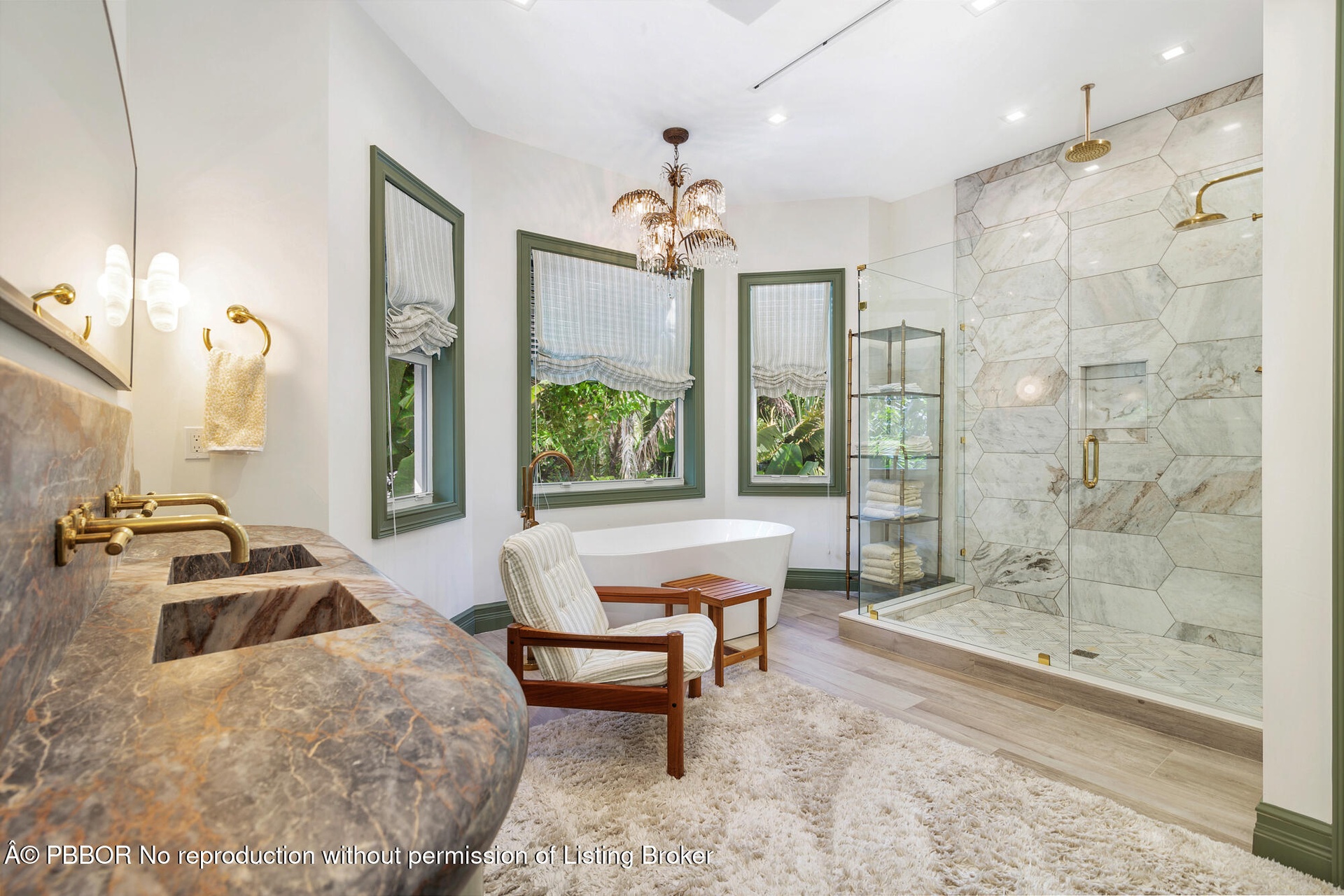 Built in 2020, this fully renovated 5 bedroom, 4.5 bathroom furnished home in SoSo offers refined style with every modern convenience. The main level features a formal living room, dining room, and family room, and opens to the gourmet kitchen offering Sub-Zero and Wolf appliances, a built-in coffee maker, wine fridge, oversized porcelain island, a conveniently located pantry, and a breakfast nook with a custom marble table. Upstairs, the primary suite offers a spa-like bathroom with a rainfall shower, Roman tub, private water closet, and a spacious walk-in closet. Custom light fixtures, designer finishes, and abundant natural light enhance the home's elevated style. Outdoors, a private backyard oasis awaits with a heated pool, built-in grill, outdoor TV, and lush landscaping. Ideally located just steps from South Flagler Drive and the Intracoastal, this exceptional residence offers the best of West Palm Beach living, just minutes from beaches, shopping, dining, and entertainment including The Park Golf Course, La Sirena, and Blue Door. House comes furnished with a few exclusions - Ask LA