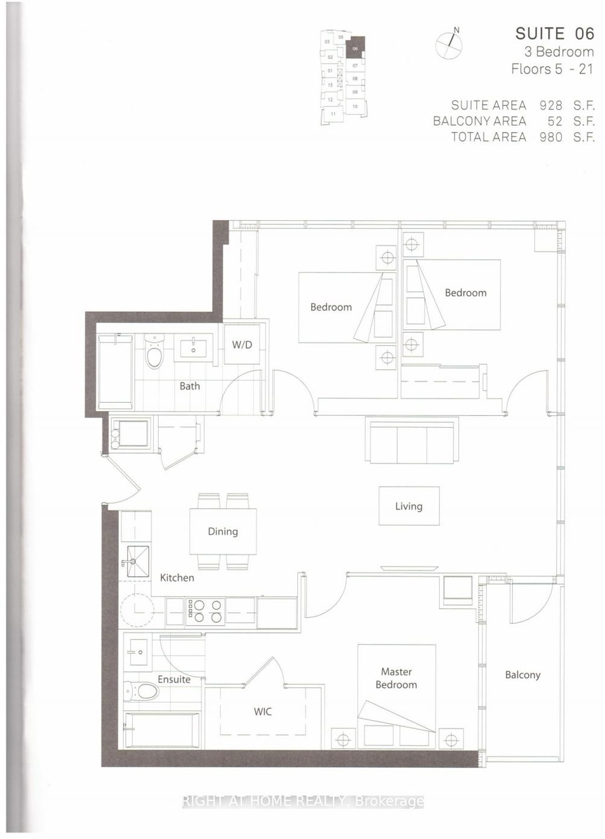 3 full bedrooms each with lots of natural light, 9 foot ceiling with floor to ceiling windows.