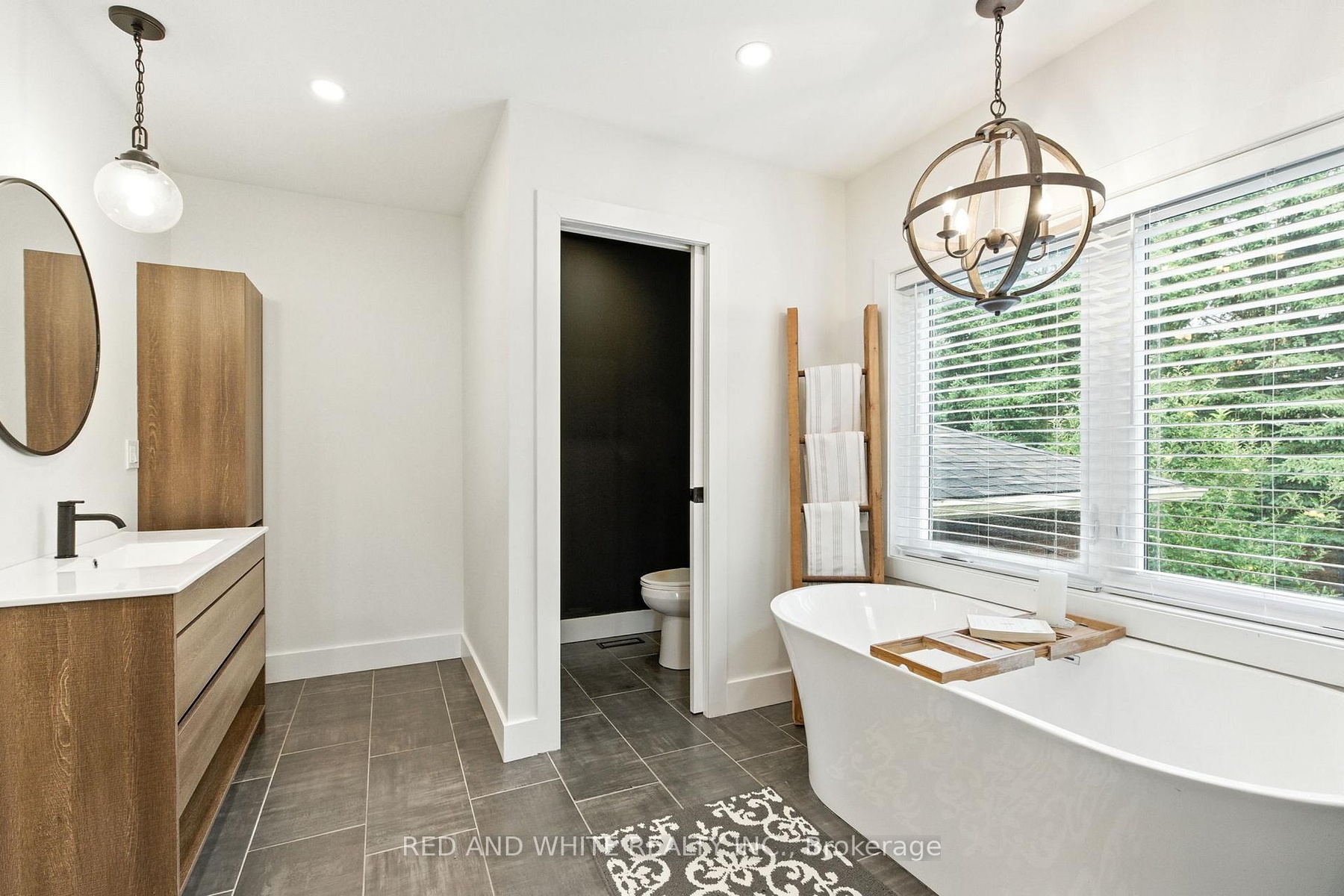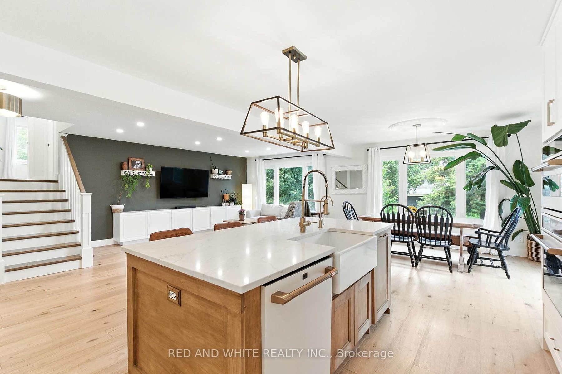 DescriptionWelcome to a home that truly has it all. Set in the desirable North Lakeshore neighbourhood of Waterloo, this fully renovated detached home combines modern comfort with timeless design. With 6 bedrooms, 4 full bathrooms, and a recently completed third-floor addition, it offers over 3,100 sq. ft. of finished living space designed for todays families. The third floor is a private retreat featuring a grand primary suite with two walk-in closets, a private office or sitting area, and a spa-inspired ensuite with a deep tub, oversized shower accented with imported Spanish tile, dual vanities, heated floors, skylight, and private toilet room. The second floor centers around a stunning kitchen with herringbone tile, gold hardware, farmhouse sink, Café GE appliances, and a handcrafted island. Open to the dining and living areas, it flows seamlessly to a cozy deck overlooking the front yardperfect for morning coffee. Flexible living options include a lower level with separate entrance and hookups for a second kitchen, ideal for an in-law suite or mortgage helper. Spacious bedrooms and full bathrooms provide comfort for family and guests alike. Outside, the backyard oasis features 8-foot privacy fencing, a wood-burning sauna, cold plunge, covered porch, and generous space for play or entertaining. A triple-wide driveway plus garage offers parking for 5 vehicles. Located minutes from St. Jacobs Farmers Market, Conestoga Mall, Highway 8, and Laurel Creek Conservation Area, this home blends convenience, natural beauty, and modern living in one of Waterloos most welcoming communities. Updates: New furnace & A/C (2022); All new Café GE appliances (2023) New LG washer & dryer (2023) 584 sq. ft. Addition (2023) Fence (2021) Furnace, AC, & Water Softener 2021Amenities- Built-In Oven
