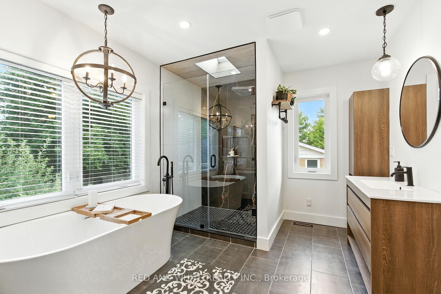 Welcome to a home that truly has it all. Set in the desirable North Lakeshore neighbourhood of Waterloo, this fully renovated detached home combines modern comfort with timeless design. With 6 bedrooms, 4 full bathrooms, and a recently completed third-floor addition, it offers over 3,100 sq. ft. of finished living space designed for todays families. The third floor is a private retreat featuring a grand primary suite with two walk-in closets, a private office or sitting area, and a spa-inspired ensuite with a deep tub, oversized shower accented with imported Spanish tile, dual vanities, heated floors, skylight, and private toilet room. The second floor centers around a stunning kitchen with herringbone tile, gold hardware, farmhouse sink, Café GE appliances, and a handcrafted island. Open to the dining and living areas, it flows seamlessly to a cozy deck overlooking the front yardperfect for morning coffee. Flexible living options include a lower level with separate entrance and hookups for a second kitchen, ideal for an in-law suite or mortgage helper. Spacious bedrooms and full bathrooms provide comfort for family and guests alike. Outside, the backyard oasis features 8-foot privacy fencing, a wood-burning sauna, cold plunge, covered porch, and generous space for play or entertaining. A triple-wide driveway plus garage offers parking for 5 vehicles. Located minutes from St. Jacobs Farmers Market, Conestoga Mall, Highway 8, and Laurel Creek Conservation Area, this home blends convenience, natural beauty, and modern living in one of Waterloos most welcoming communities. Updates: New furnace & A/C (2022); All new Café GE appliances (2023) New LG washer & dryer (2023) 584 sq. ft. Addition (2023) Fence (2021) Furnace, AC, & Water Softener 2021