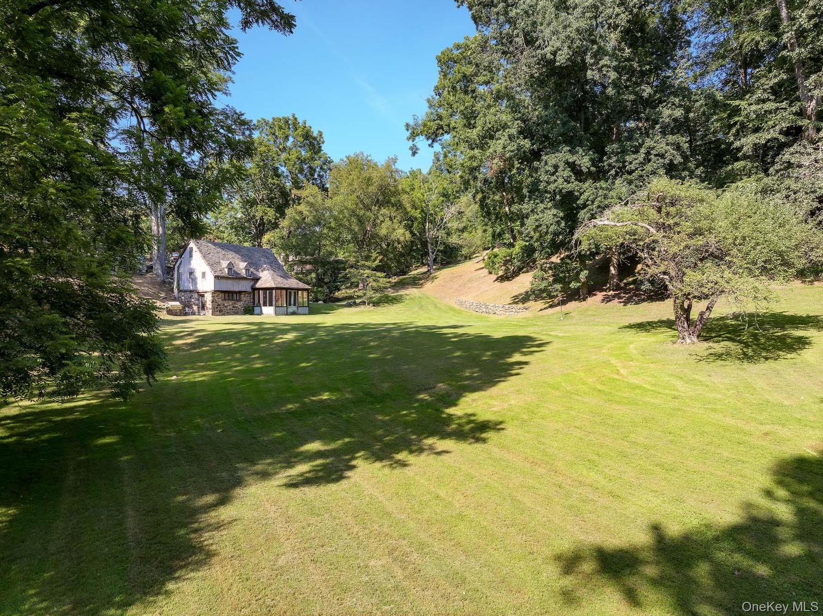 Rolling Stone Farm. A truly rare, extraordinary 106+ acre sprawling estate, overlooking the Hudson River, just 37 miles from Manhattan. Marvelous grounds with sweeping lawns, formal English gardens, specimen trees, rolling pastures, enchanting cottages, and equestrian facilities, to boot. You will be enthralled. European style stone and wood shingle home, originally built in the 1930’s for the Sears and Roebuck family, offers exceptional details and room scale throughout. Leaded glass windows, bull nose plaster walls, and gleaming wide-plank hardwood floors. Two story slate entrance foyer. Phenomenal eat-in kitchen with butlers pantry, slate mudroom with potting area, formal dining room with doors out to patio, gorgeous wood-paneled living room with french doors and fireplace. Incredible den with mesmerizing field stone Inglenook fireplace. Upstairs, there is a glorious Primary bedroom suite with vaulted ceilings, walk in closet, fireplace and beautiful marble bath. Down the hall, there are two en-suite guest rooms, large office, and TV room. There is also a four car garage with attached 2 bedroom guest annex and full bath. Stepping outside, there is a profound peacefulness. You will find several relaxing spots and stone terraces, a lavish 65 ft Gunite swimming pool, stone spa, fully equipped pool house, and tennis court - all surrounded by lush, professionally designed greenery, stonework, orchards, and perennial plantings. There is a remarkable octagonal stone library with kitchenette and full bathroom, as well as a storybook 2 bedroom, 2 bathroom guest cottage with kitchen, two story living room, reclaimed brick floors, and outdoor patio. Once home to over 20 horses, the farm features an 1800’s bank barn with tack room, feed room, wash stall, hayloft, workshop, two bedroom grooms’ apartment, an irrigated outdoor riding arena with Lawton Adams footing, an 8 horse hot walker, and several paddocks with run-in sheds, water, and electricity. The property also features riding trails with direct access to the Croton Aqueduct hiking path. Fully fenced and gated, this exceptional estate offers unparalleled privacy with phenomenal accessibility to NYC, nearby parks and all of the amenities the Hudson Valley has to offer. A remarkable offering.