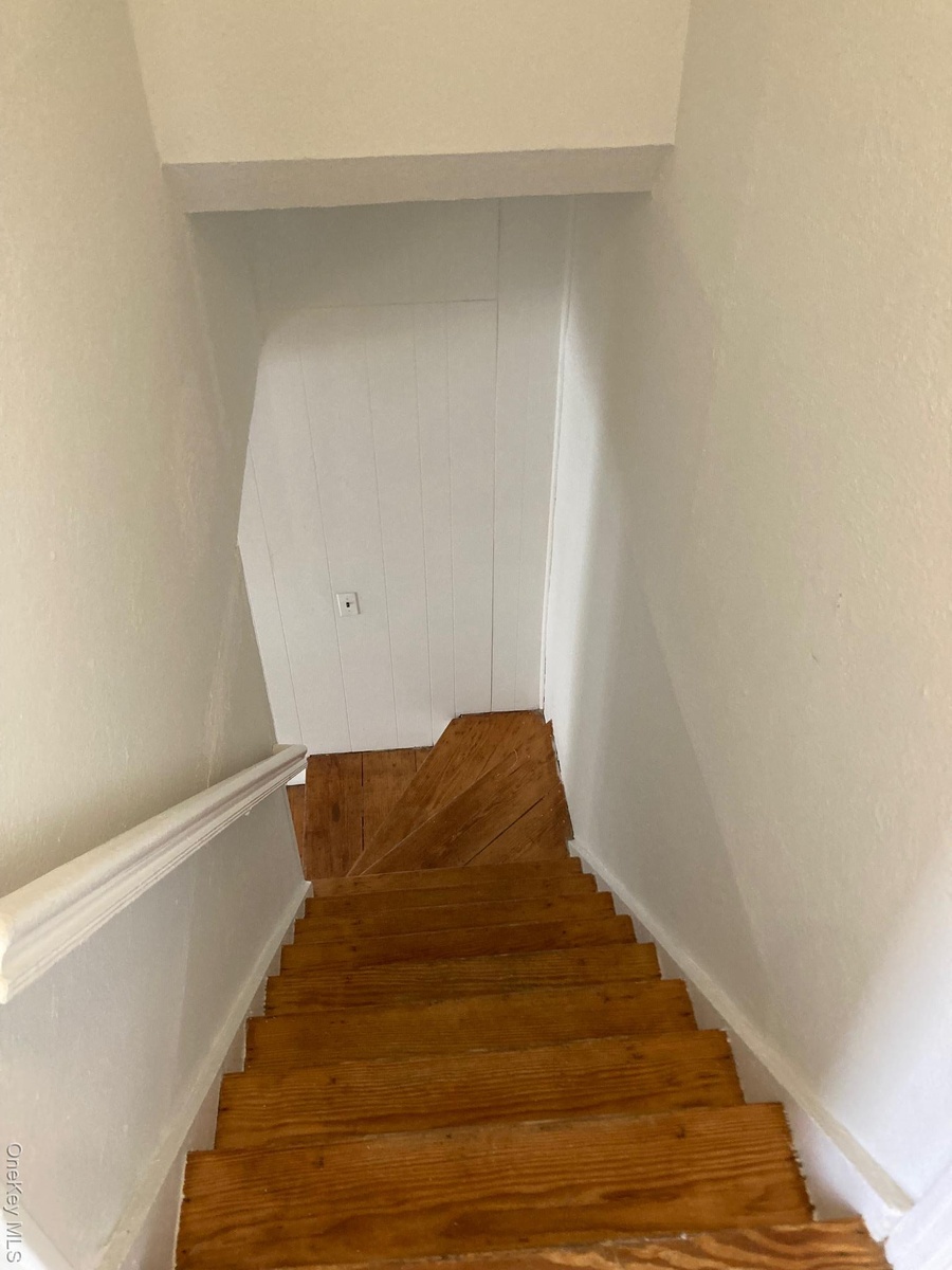 - Unfurnished living room with a fireplace, wood finished floors, and stairs