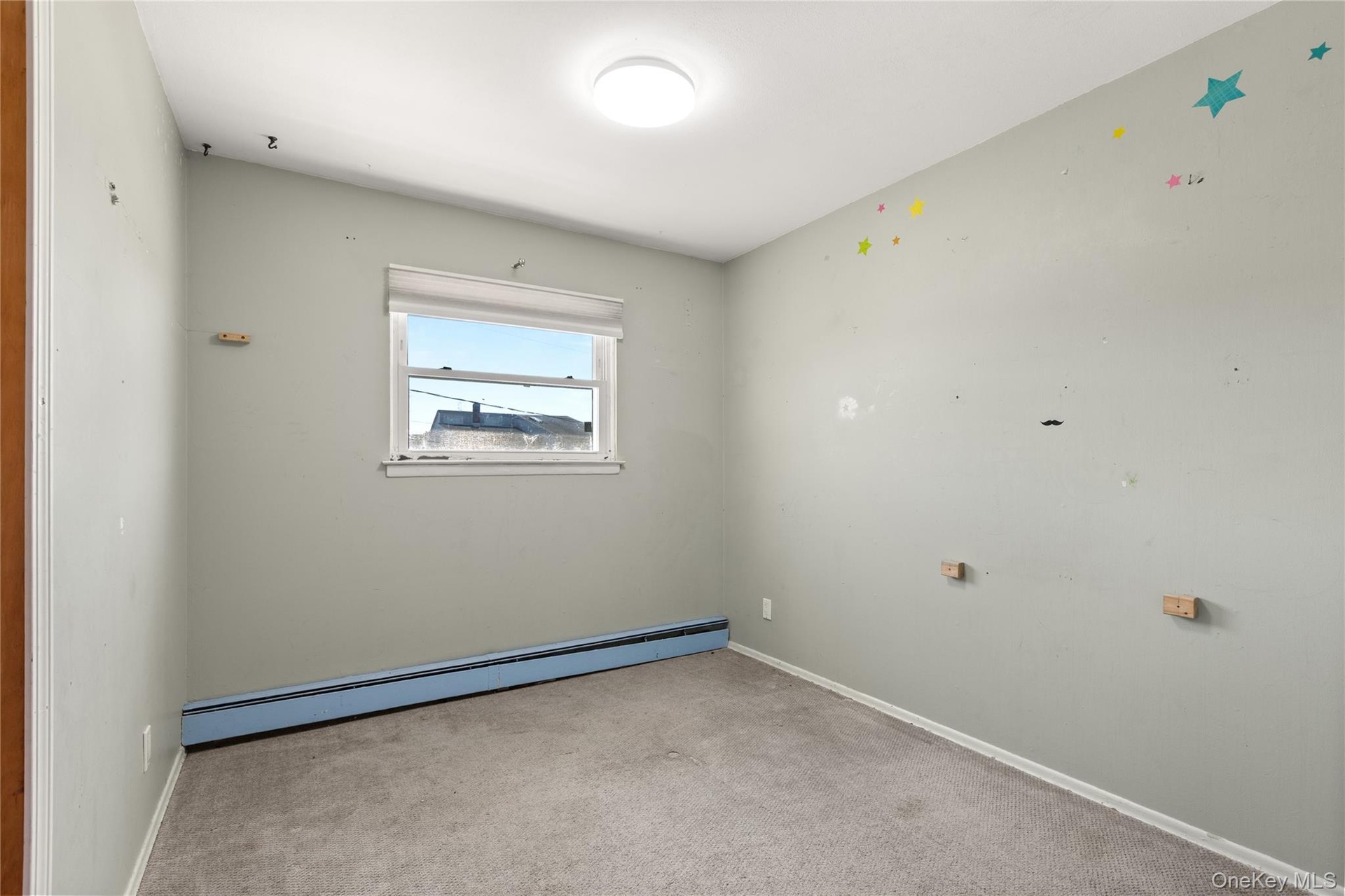- Spare room featuring a baseboard heating unit and light wood-style flooring