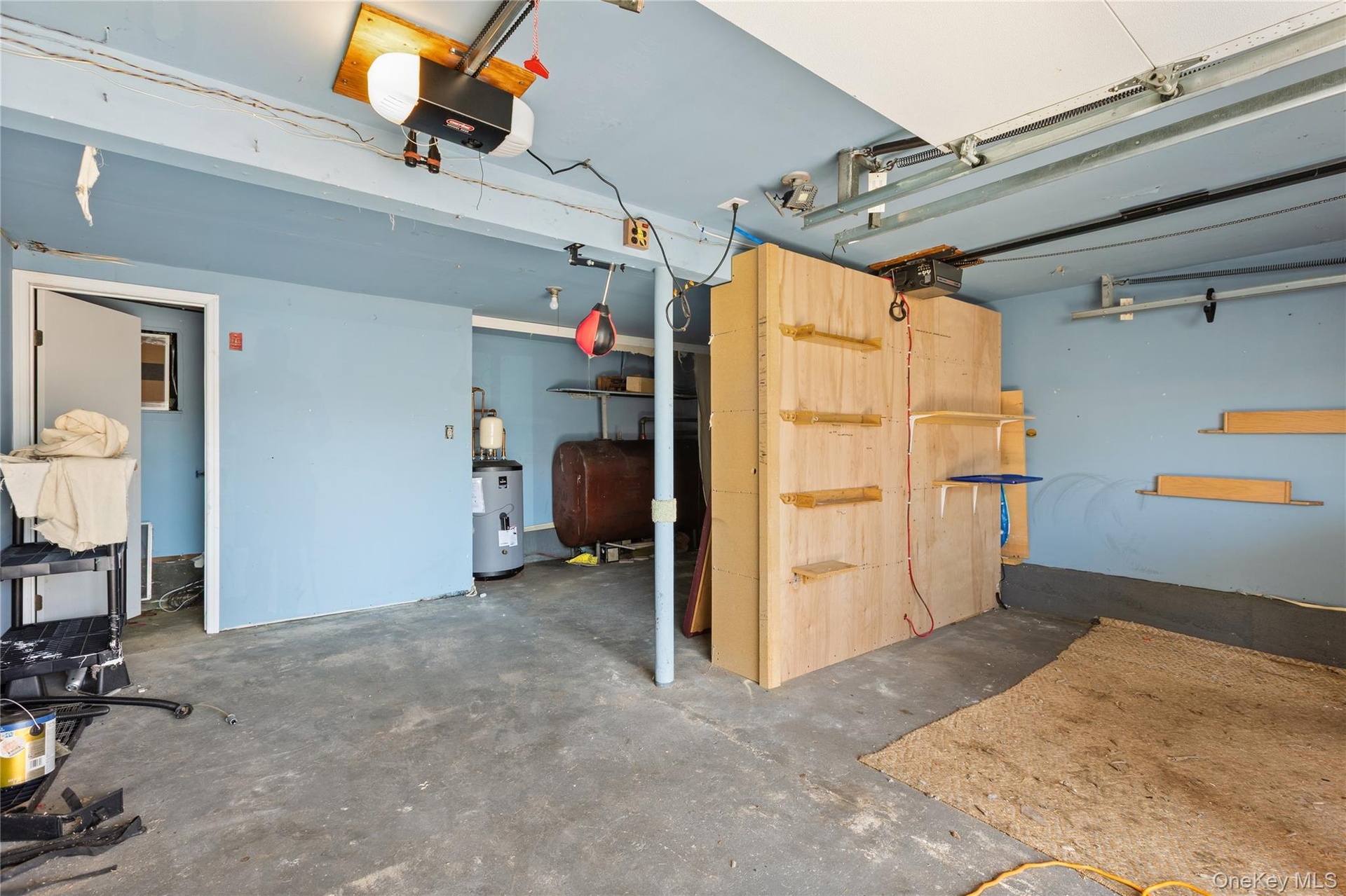 - Garage featuring heating fuel, a garage door opener, and water heater
