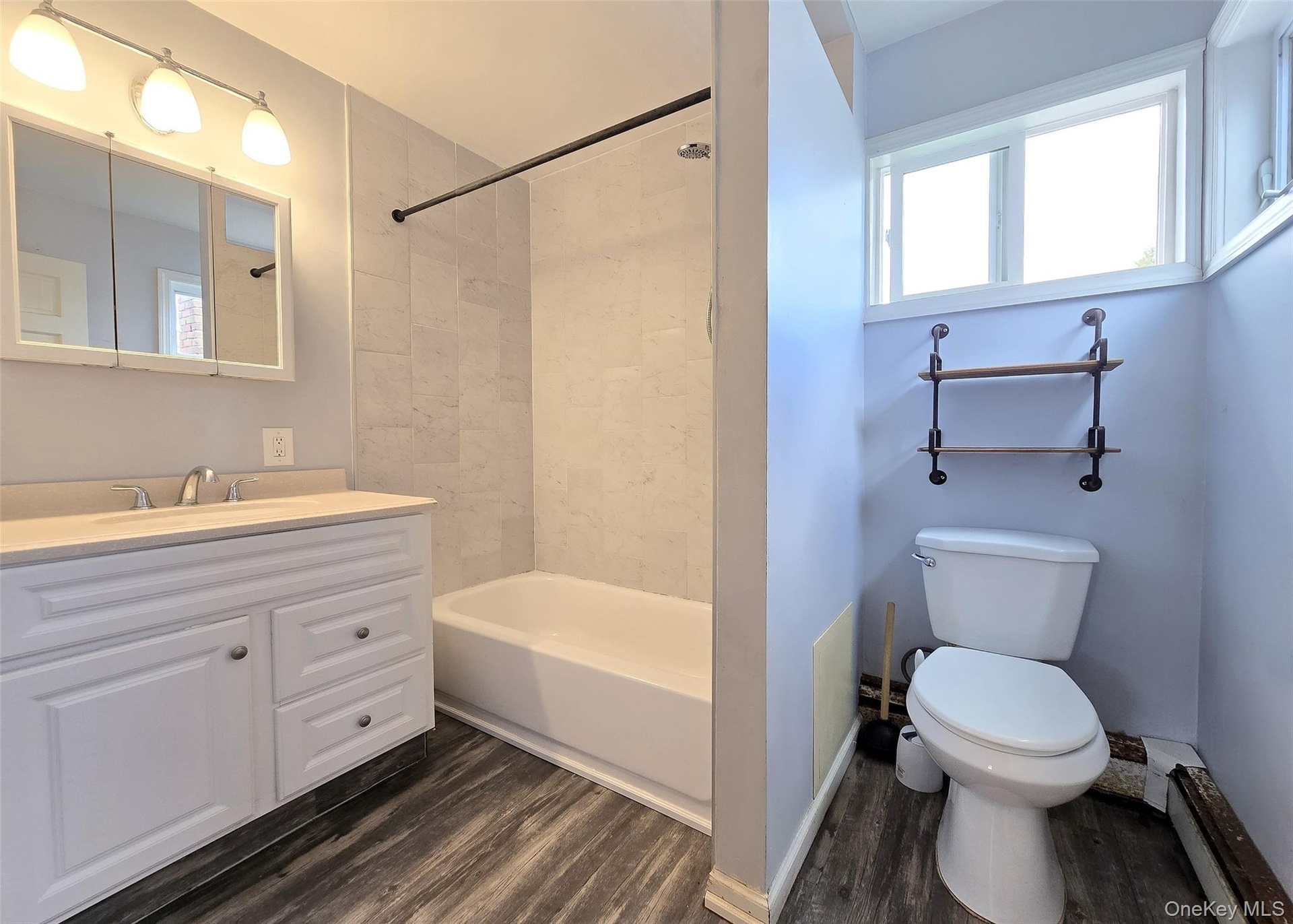 - Bathroom featuring vanity, floors, and bathtub / shower combination