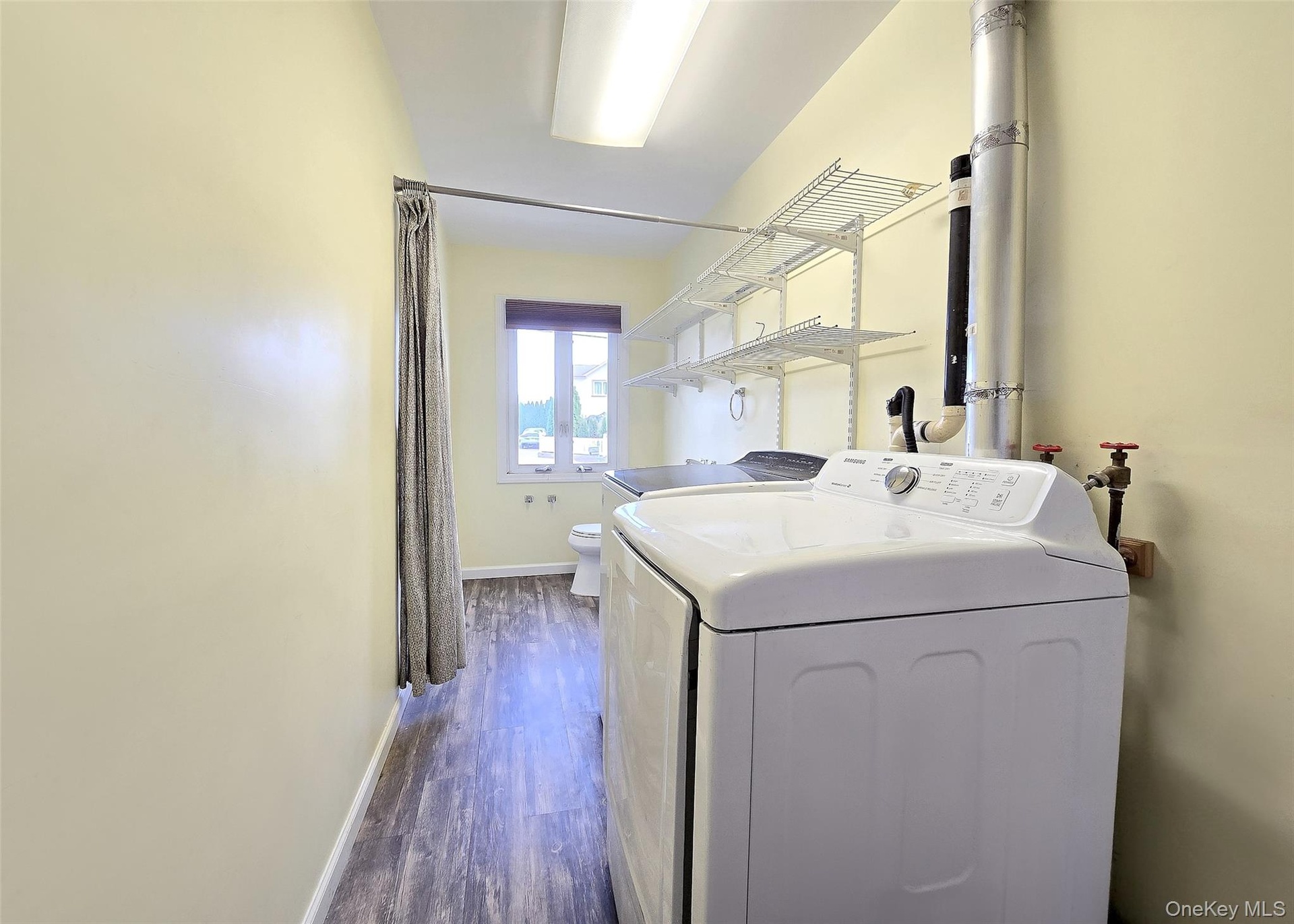 - Laundry area with washer / clothes dryer and dark wood-style floors