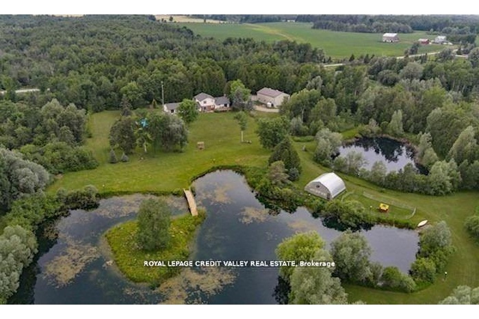Cottage Style House plus a second bungalow 1 bedroom complete house is Located just 1 Hour from Toronto With Exclusive Serene 19.95 Acres of privacy. Presents Forest with trails with pole lights , River Stream Goes Through The Property (Headwaters Of The Boyne River) on the south side PLUS 3 Large Ponds With A Bridge And Small Island And Fish In It,1 spring fed, second river stream supply and third one connected for all kinds of nature involved. Do you want to stage large parties ?? This is it OR Need large space with 2 shops? Large 49 Feet X 37 Feet Shop For 4 More Cars with your own tool/shop area and large mezzanine and self electrical panel and furnace ,concrete is thick for heavy vehicles and some gravel drainage Third structure for Extra Shop/Storage For Landscaping Equipment attached to large shop with newer front gate/door and metal sheeting as well. After work relax Rectangular Inground Swimming Pool, Large Deck Walk Out From Main House Overlooking Your Peace Of Paradise. What Else, Security Cameras All Over Even Inside The Shop. Lots Of Walking Trails Through The Forest And Ponds With some more Light Posts To Walk At Night with kids or alone w/glass of wine. You Will Not See Your Neighbors At All As The Whole Front and all surroundings Of The Property Is Protected With Forest and Nature. Remember The Second Living Quarters, presents 1Bedroom House Full With eat-in Kitchen, Living-room overlooking and walkout to land, Dining-room with large window and large coat closet, Large Bedroom and walk-in closet plus 4 Pcs Bathroom and storage room with another electrical panel (this section is above ground) Walk Out To Your Own deck with endless views of the gardens. Stunning Sunrise scenery. Just an amazing property for large families, work from home or have it all for your-self JUST WOW. Only 2 Minutes to all stores in Shelburne, mechanics, gas stations, Highways, less than an hour to Wasaga Beach, centrally located nearby all but really private from everyone.WOW.