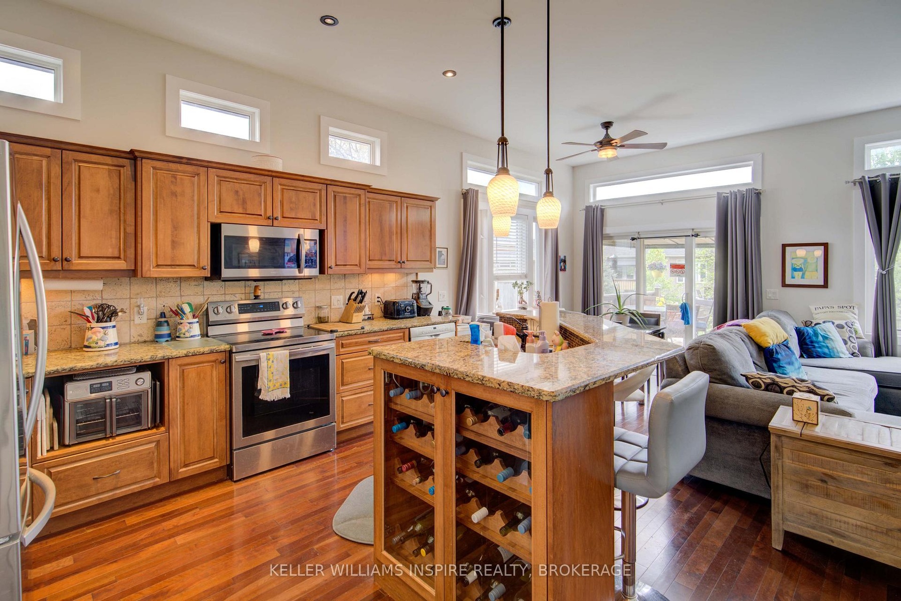 This stunning 2,800 sq. ft. luxury bungalow offers incredible flexibility, perfect as a spacious single-family home, an in-law suite, or a legal duplex. The design provides options for upsizing, multi-generational living, or generating additional income. Inside, the main floor showcases beautiful hardwood floors, transom windows, and a welcoming living room with a cozy gas fireplace. The dining area flows seamlessly to the backyard through sliding glass doors, while the expansive kitchen features granite countertops, an abundance of cabinetry, a walk-in pantry, and sleek stainless-steel appliances. A versatile bedroom, currently used as an office, adds functionality to the layout. The primary suite serves as a serene retreat with a walk-in closet and spa-like 5-piece ensuite. Additional highlights include a double-wide garage with built-in cabinetry, interior access to main-floor laundry, and parking for three to five vehicles. Outdoors, the fully fenced yard offers a private escape complete with a large deck and gazebo, ideal for entertaining or quiet relaxation. The 1350 sq. ft. basement unit features a spacious kitchen, bright living room, bedroom with bonus room (perfect as a closet or office), in-unit laundry, and plenty of space for comfortable living; as well as a separate entrance. Whether your are looking for a single-family home, an in-law suite, or an income-generating property, this home adapts to your lifestyle. Steps from the marina, parks, and schools, it combines convenience with endless opportunity.-