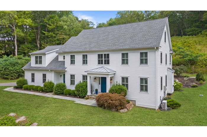 This modern transitional Colonial at 225 Good Hill Road, Weston, CT 06883 offers 5 bedrooms, 4 full and 1 half baths, and an open concept floor plan designed for natural ...