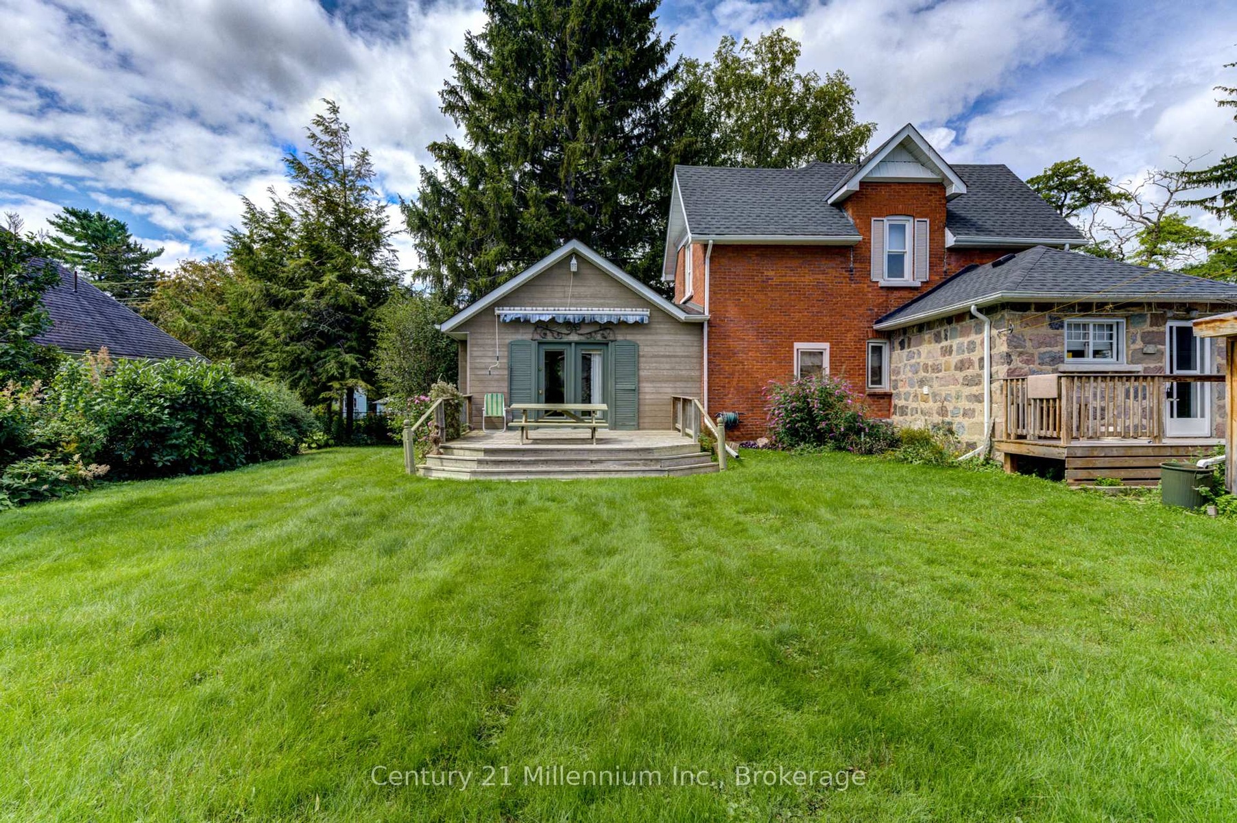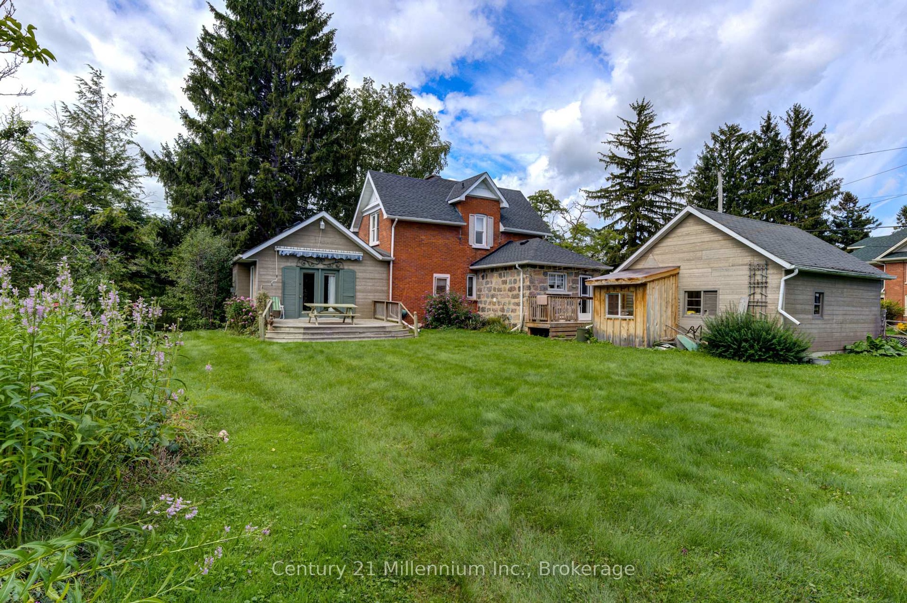 ONE OF A KIND! Century type brick home on a corner lot within walking distance of Meaford hospital. Features include modern addition, bedrooms and main bath on second level, unique powder room on the main level, economical gas heat/ac, gad fireplace, stately original front porch and two decks, private parking, big fenced yard with room for your very own gardens.. You can move in the way it is or renovate to your heart content.