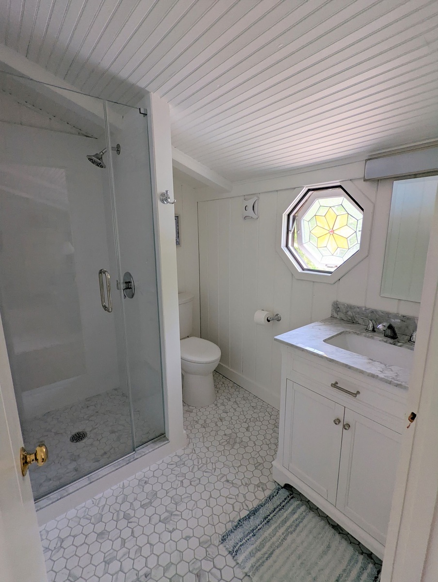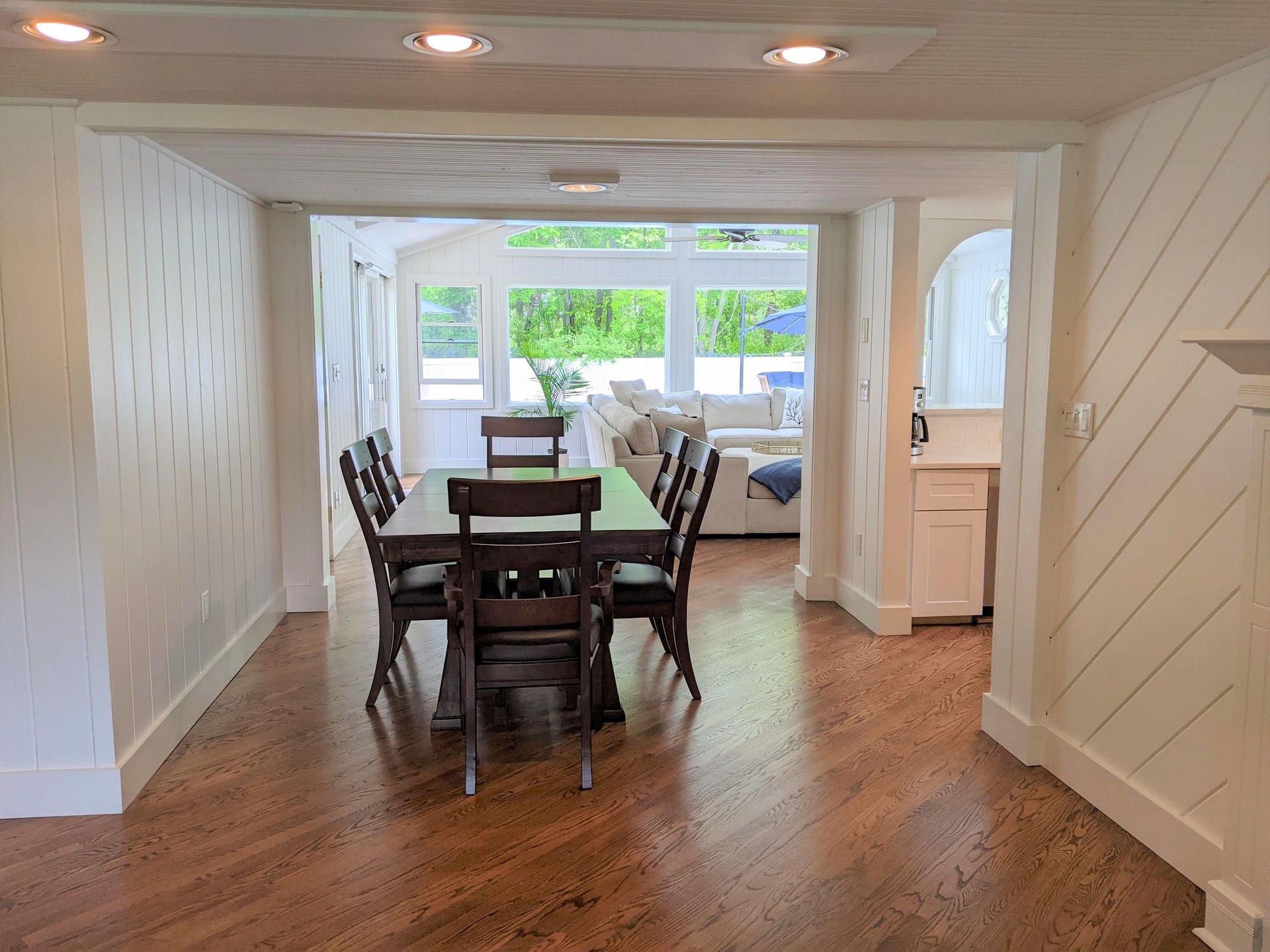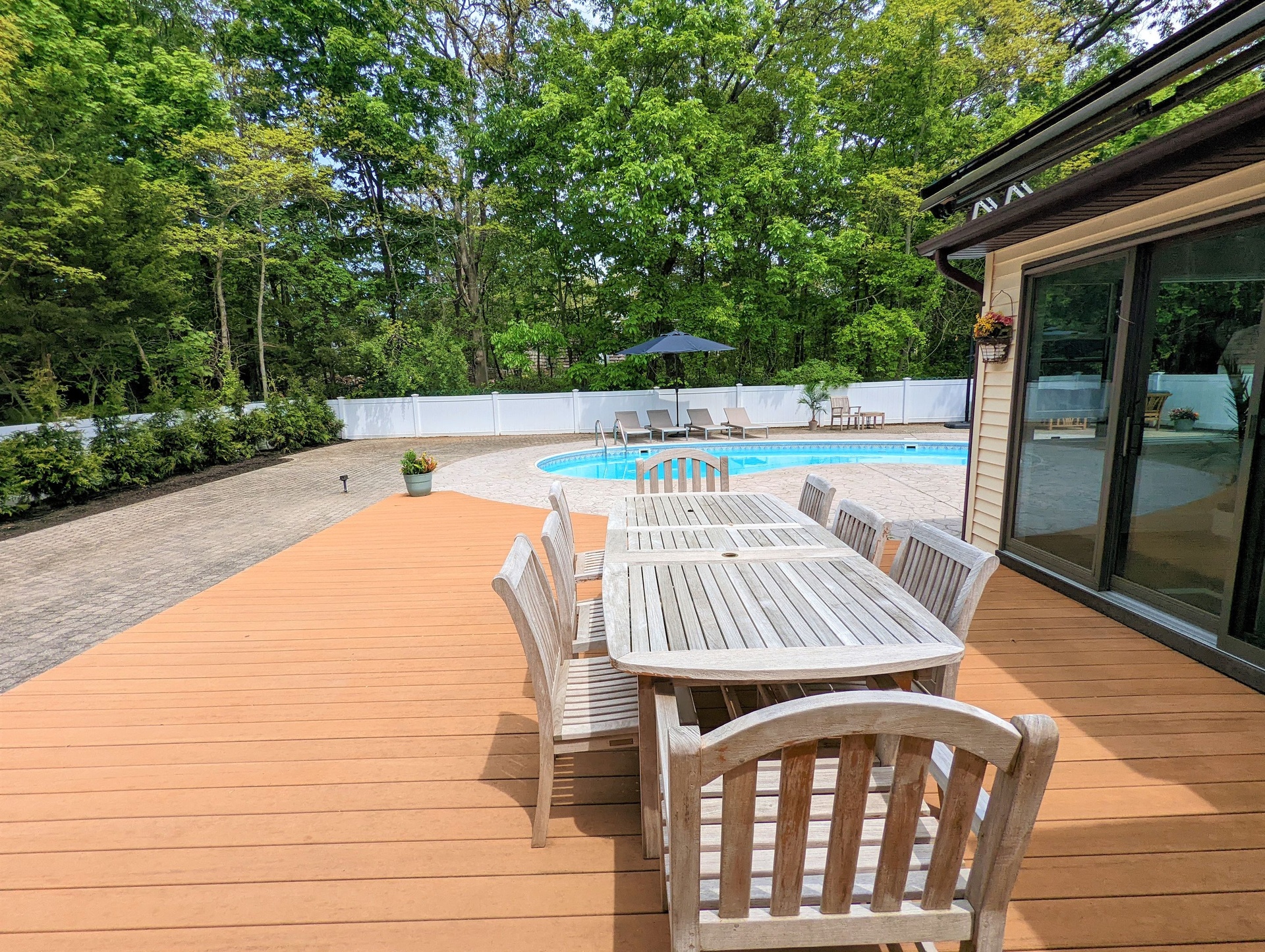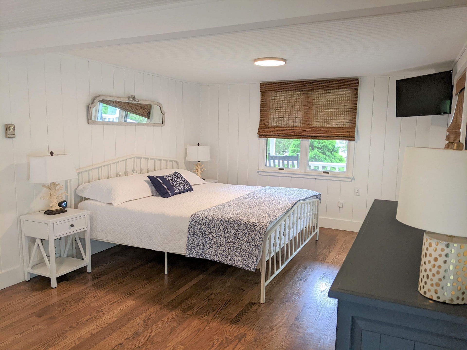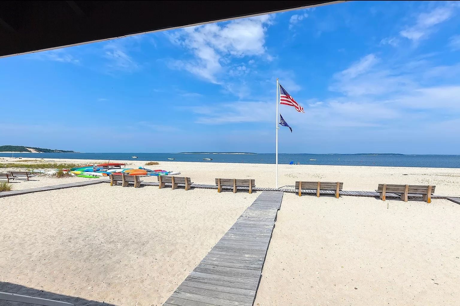 Recently renovated and furnished 3 bedroom, 2 full bathroom beach house in Southampton with upgraded amenities like high-speed internet, heated pool, and easy 3-minute beach access. Spacious living room overlooking the pool with a large sectional couch and a 75-inch television. The covered front porch has rocking chairs and a table for relaxation. The upstairs lounge area has a pull-out couch and TV for extra hangout space. Home office station available upon request, as well as the crib. Fully-stocked kitchen with brand-new stainless steel appliances and quartz countertops. All bedrooms have TVs, linens, and towels. Recently updated laundry room. The outdoor patio area has an 8-person teak table, lounge chairs, an outdoor sofa, Tommy Bahama beach chairs, and umbrellas. Private access to community tennis courts, basketball court, and marina.
