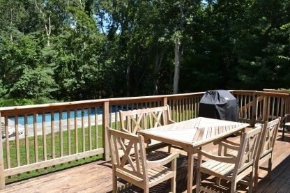 Rental Registration #23-906. Located on a cozy, quiet street near the beach and very close to the village. Country style home has 3 bedrooms plus 2 baths. With central air, deck, and a heated pool. Brand new Kitchen and luxury baths. Just redecorated with a fantastic Mid-Century vibe. Enjoy your privacy. This is the one!
