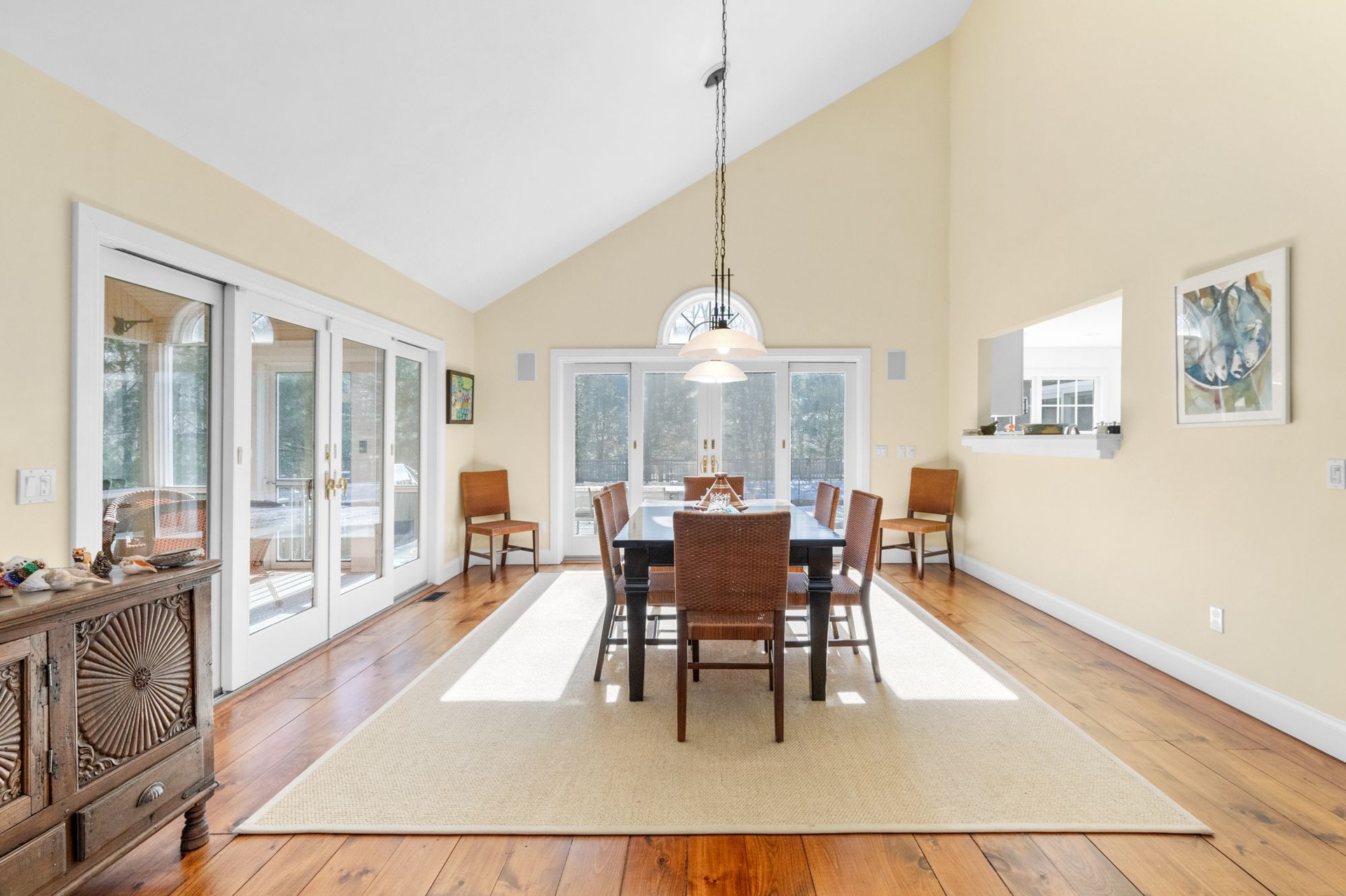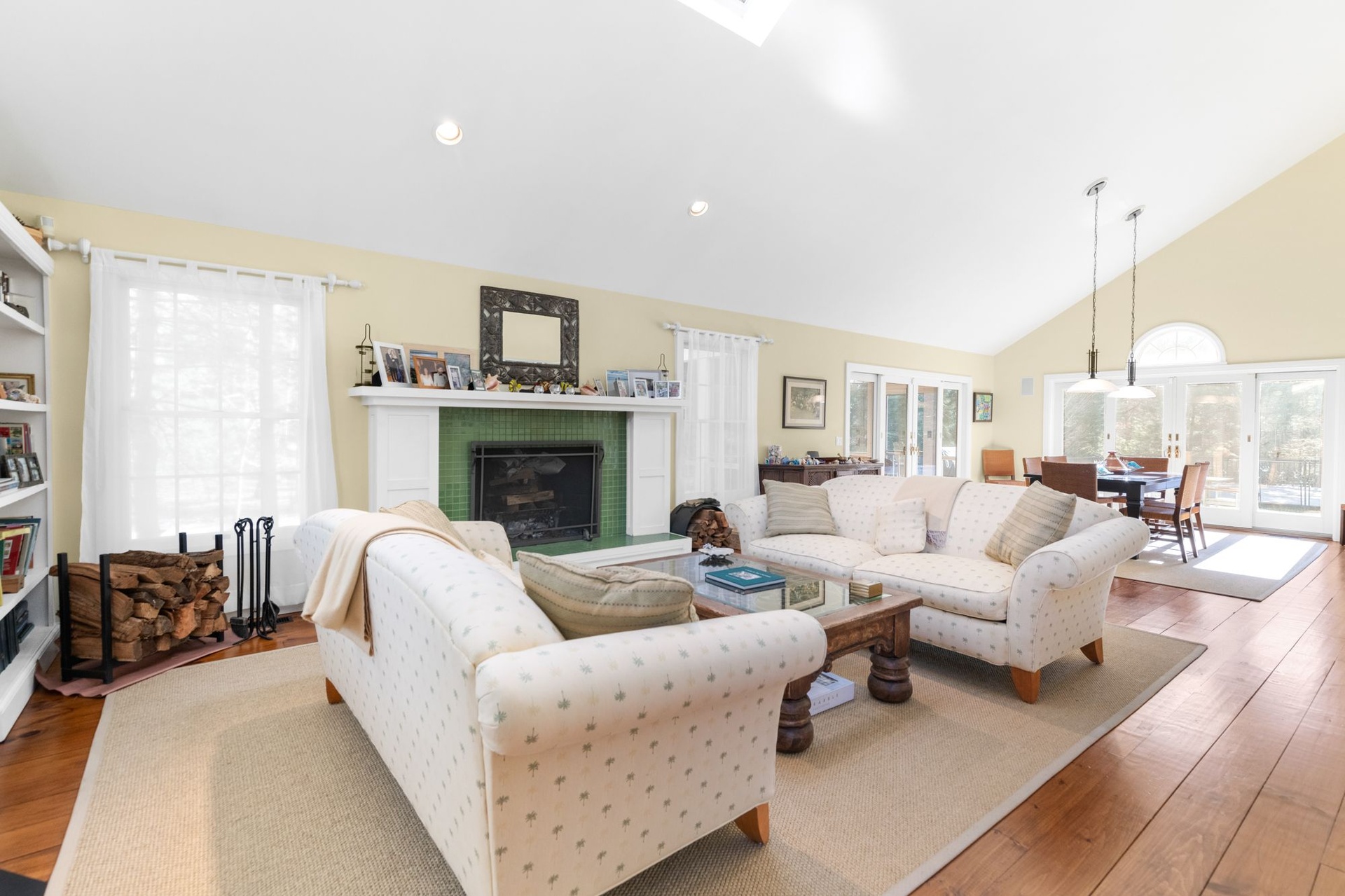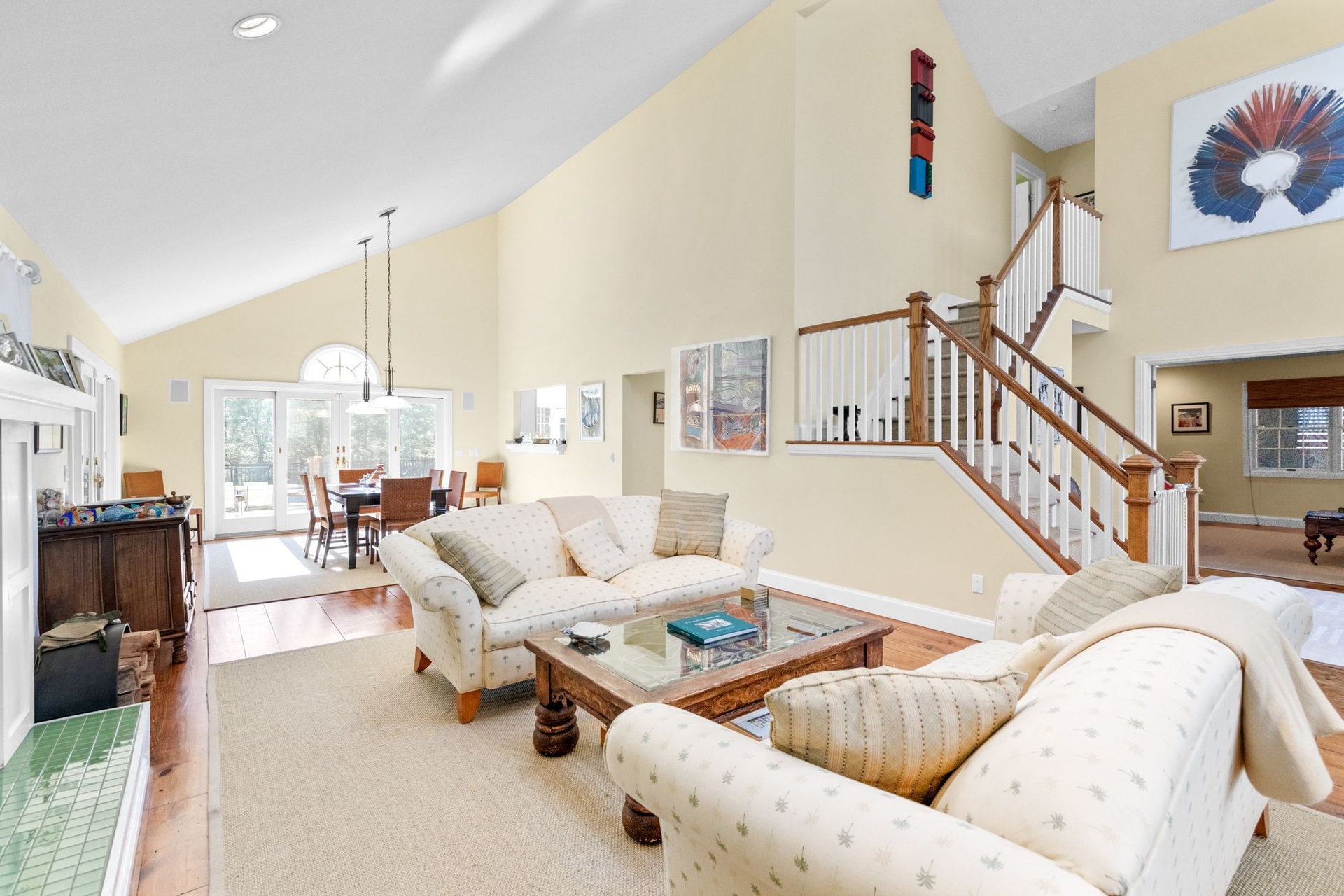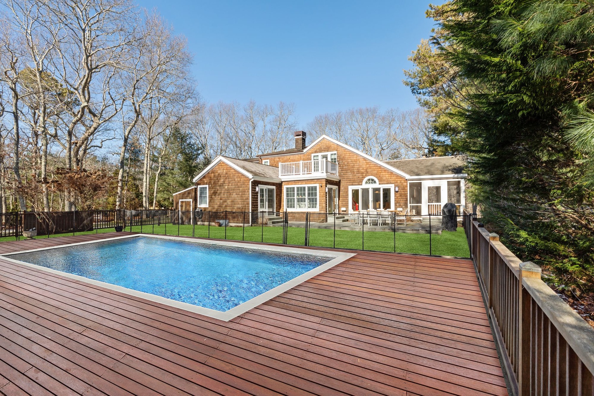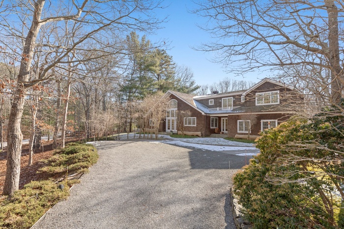 East Hampton post modern home is newly renovated features 4 bedrooms, 3.5 baths, spacious living room with fireplace, den, screened in porch, There are two master suites plus 2 guest bedrooms. Heated pool and newly landscaped property.