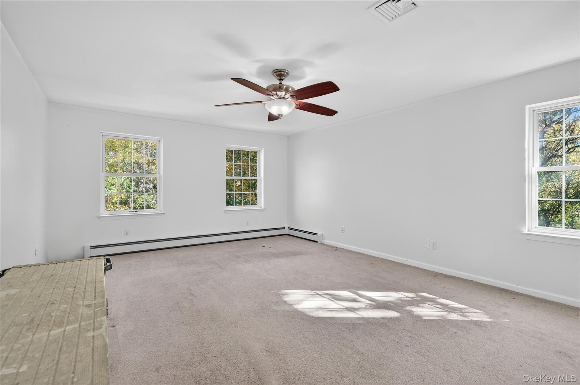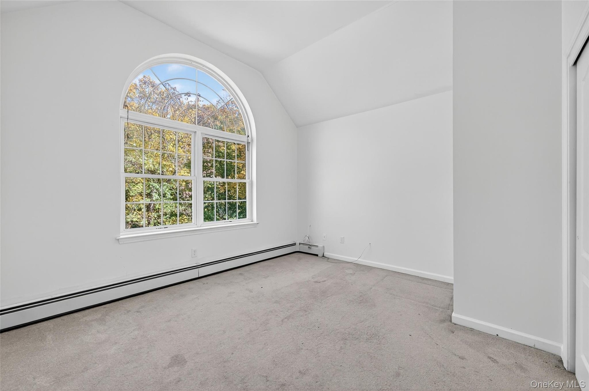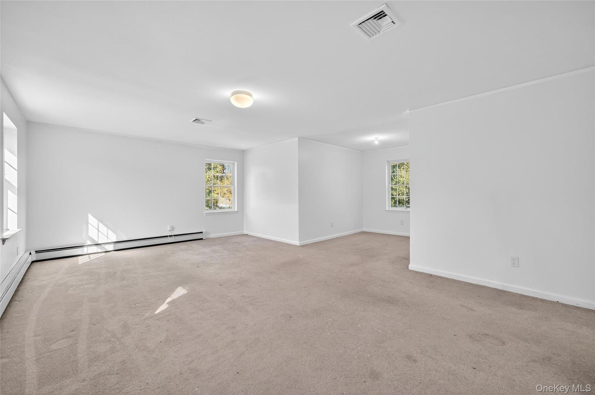 - Spare room featuring baseboard heating, healthy amount of natural light, and light carpet