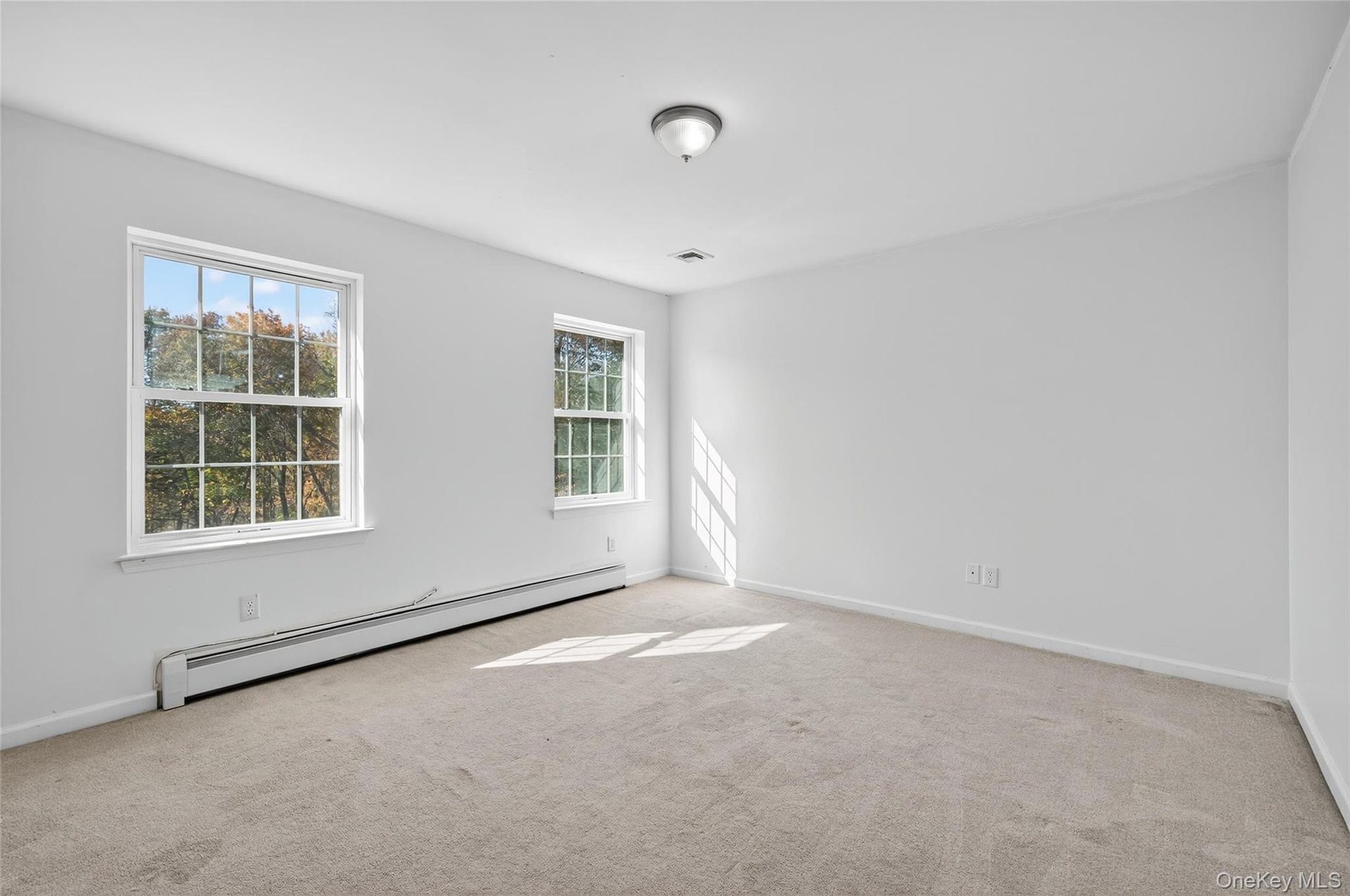 - Spare room with healthy amount of natural light, light colored carpet, and baseboard heating
